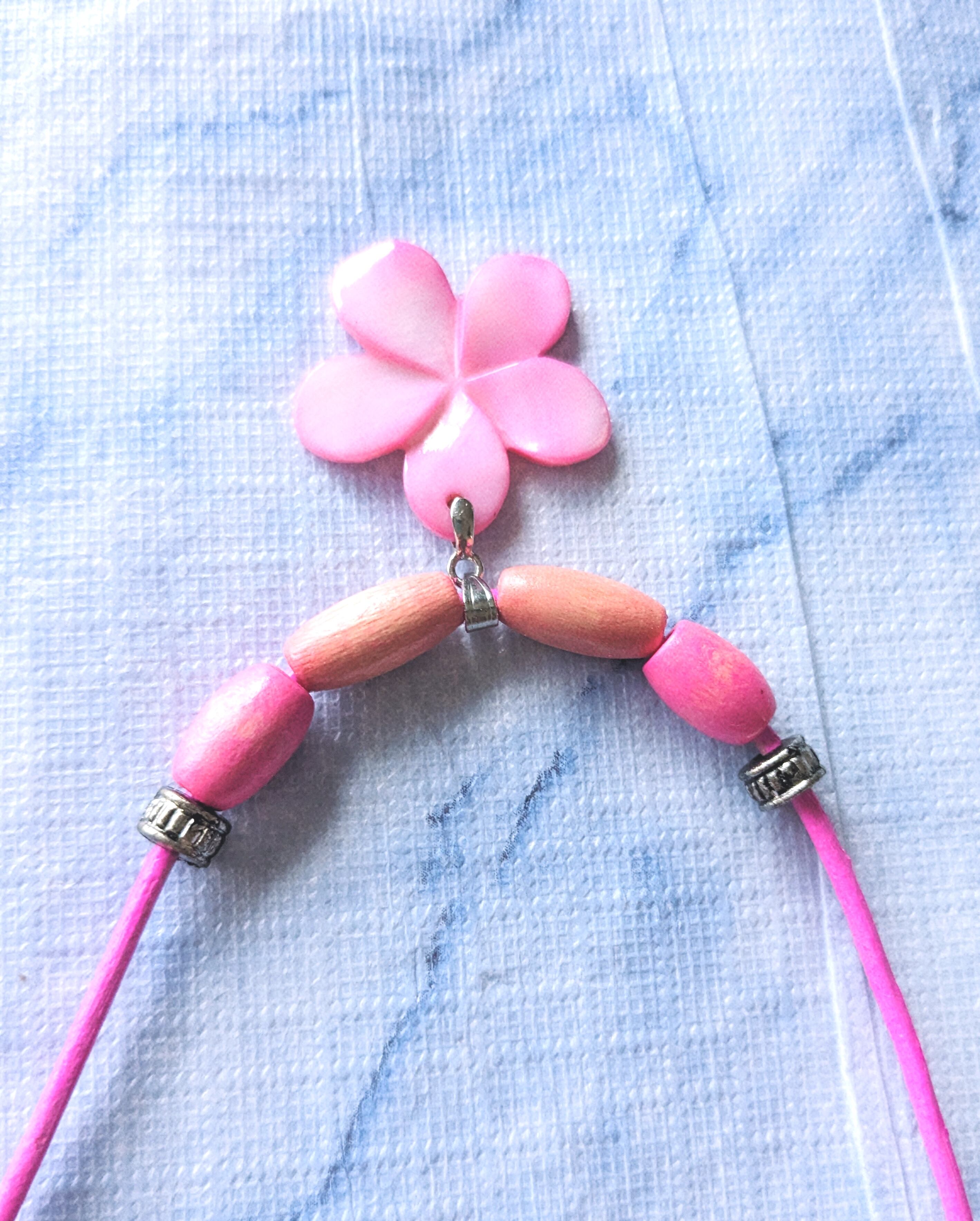 ハワイアンネックレス 天然シェル ピンクプルメリア &ピンク本革紐 P-715