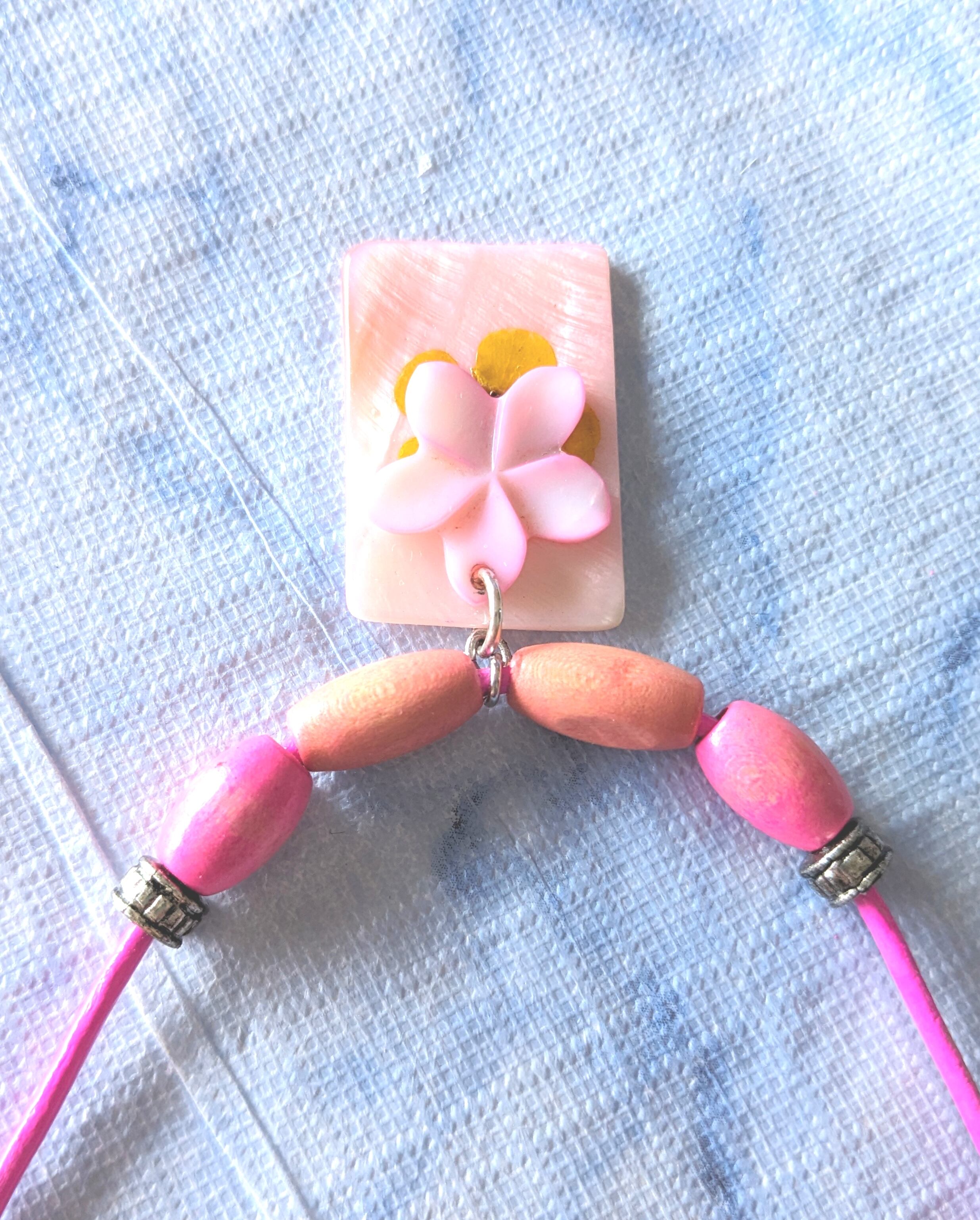 ハワイアンネックレス 2連天然シェル ピンクプルメリア &ピンク本革紐 P-717
