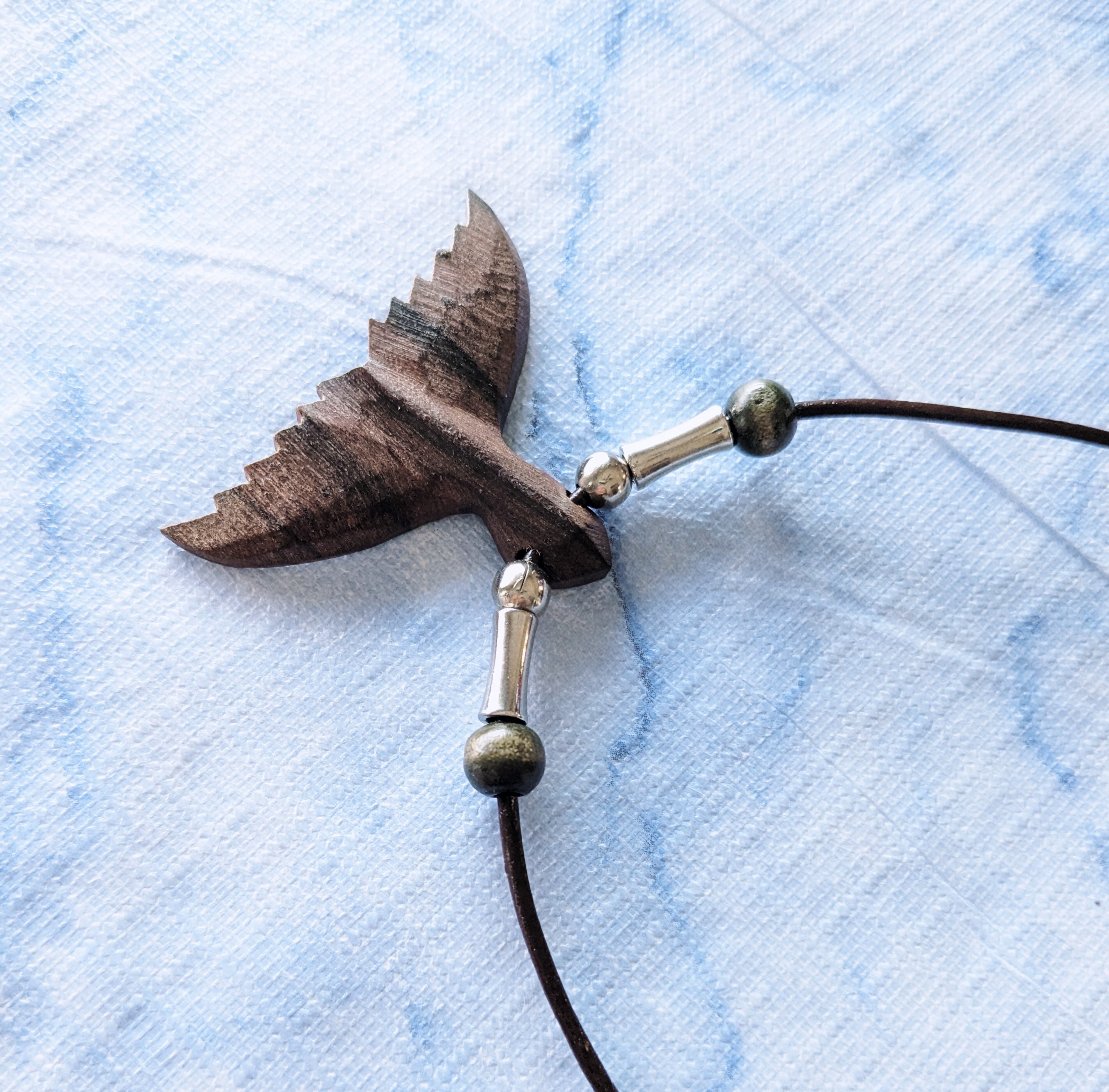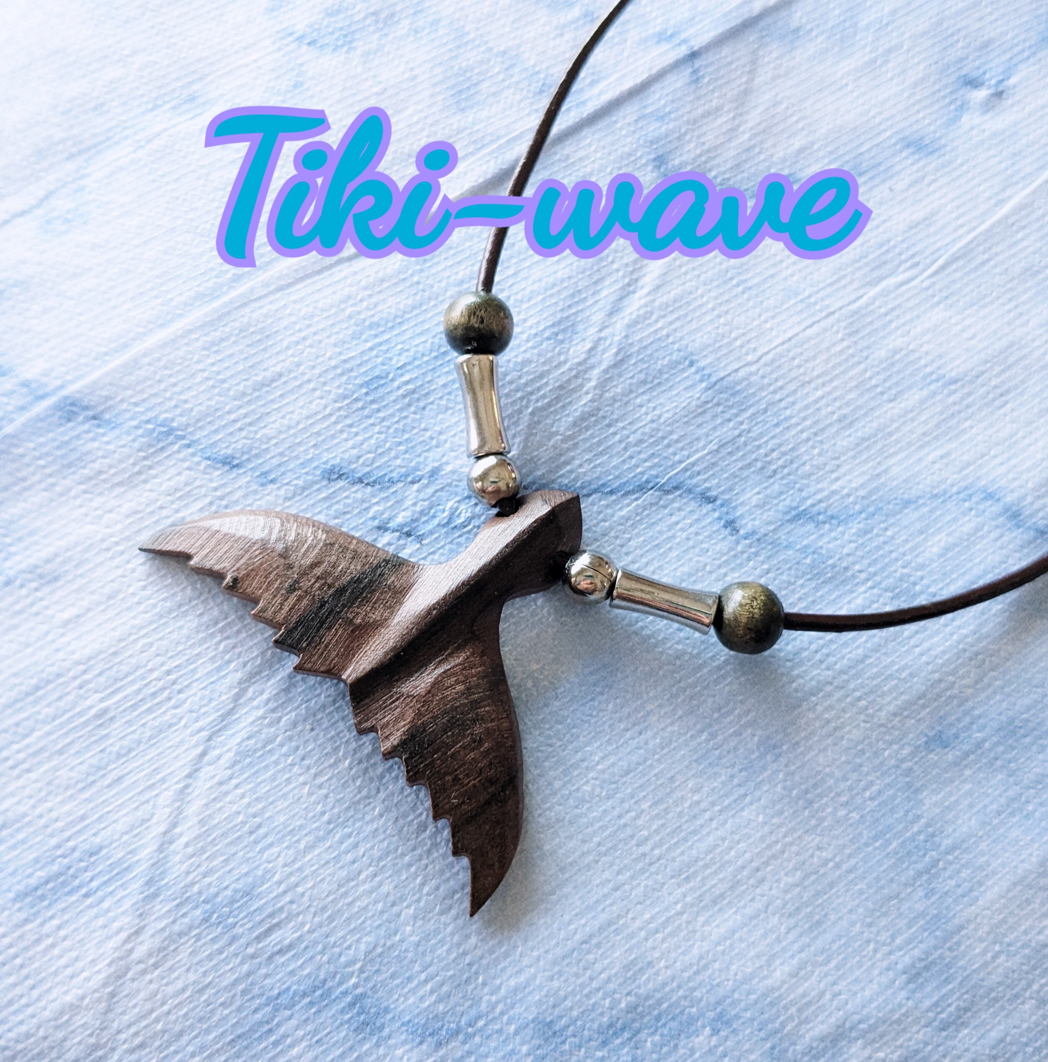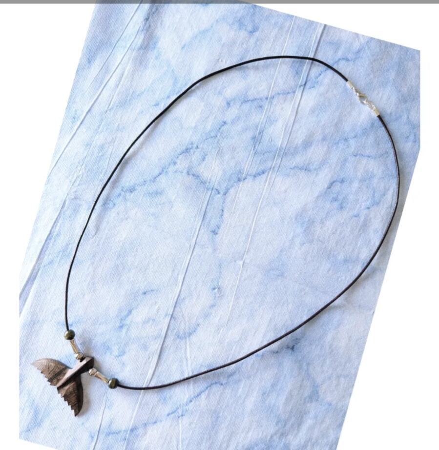 ハワイアンネックレス ハワイウッドホエールテール& ダークブラウン本革紐 D-212