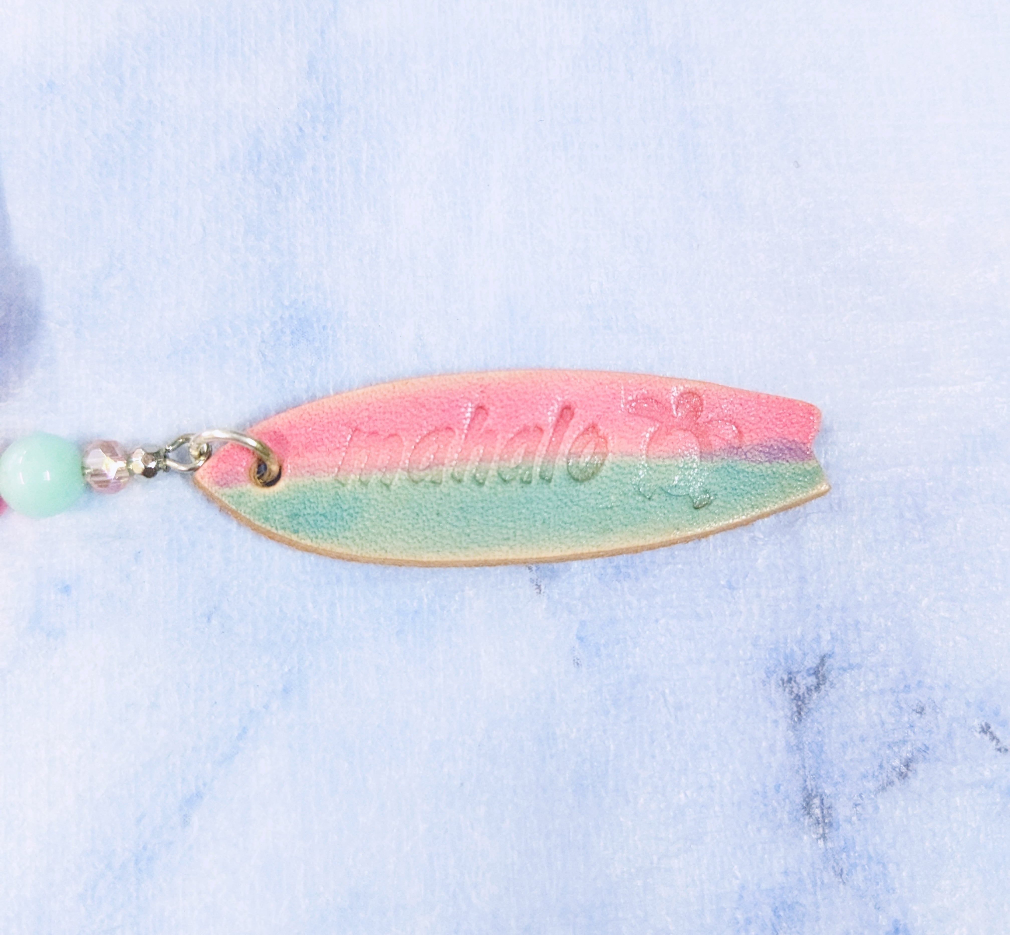 ハワイアンネックレス 本革サーフボード mahalo & アクアストーン B-355