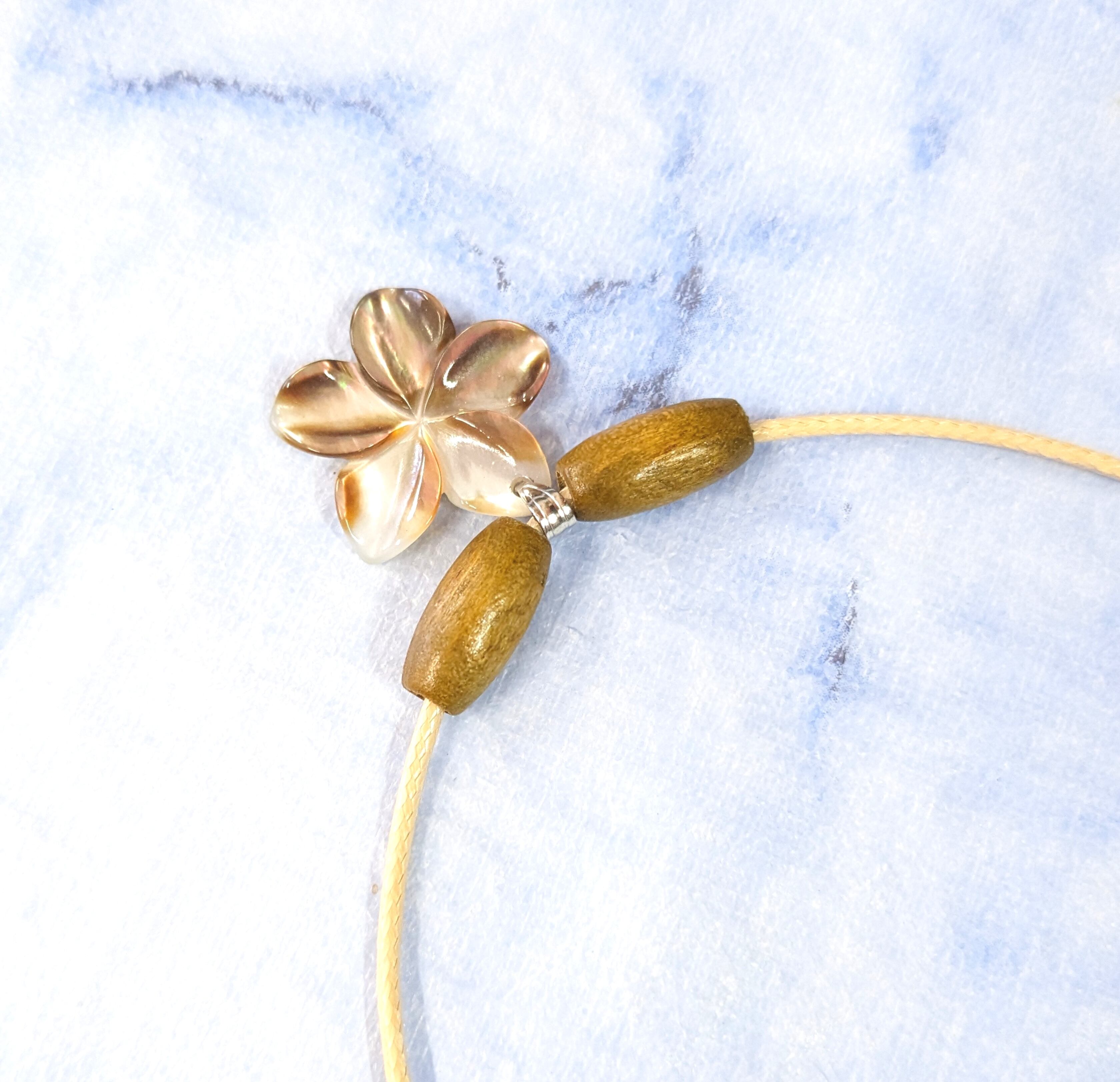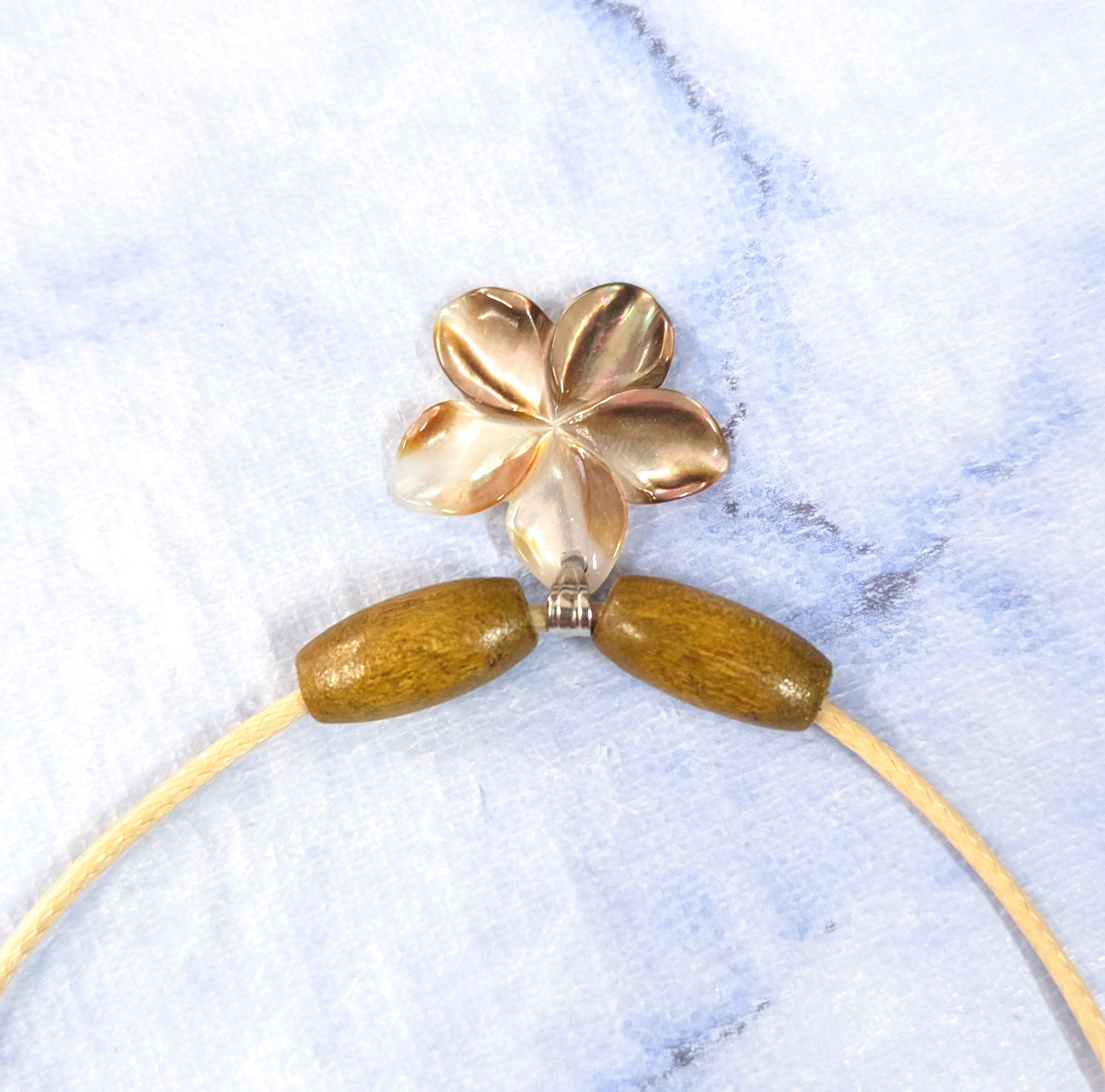 ハワイアンネックレス 天然シェル ベージュブラウンカラー プルメリア P-720