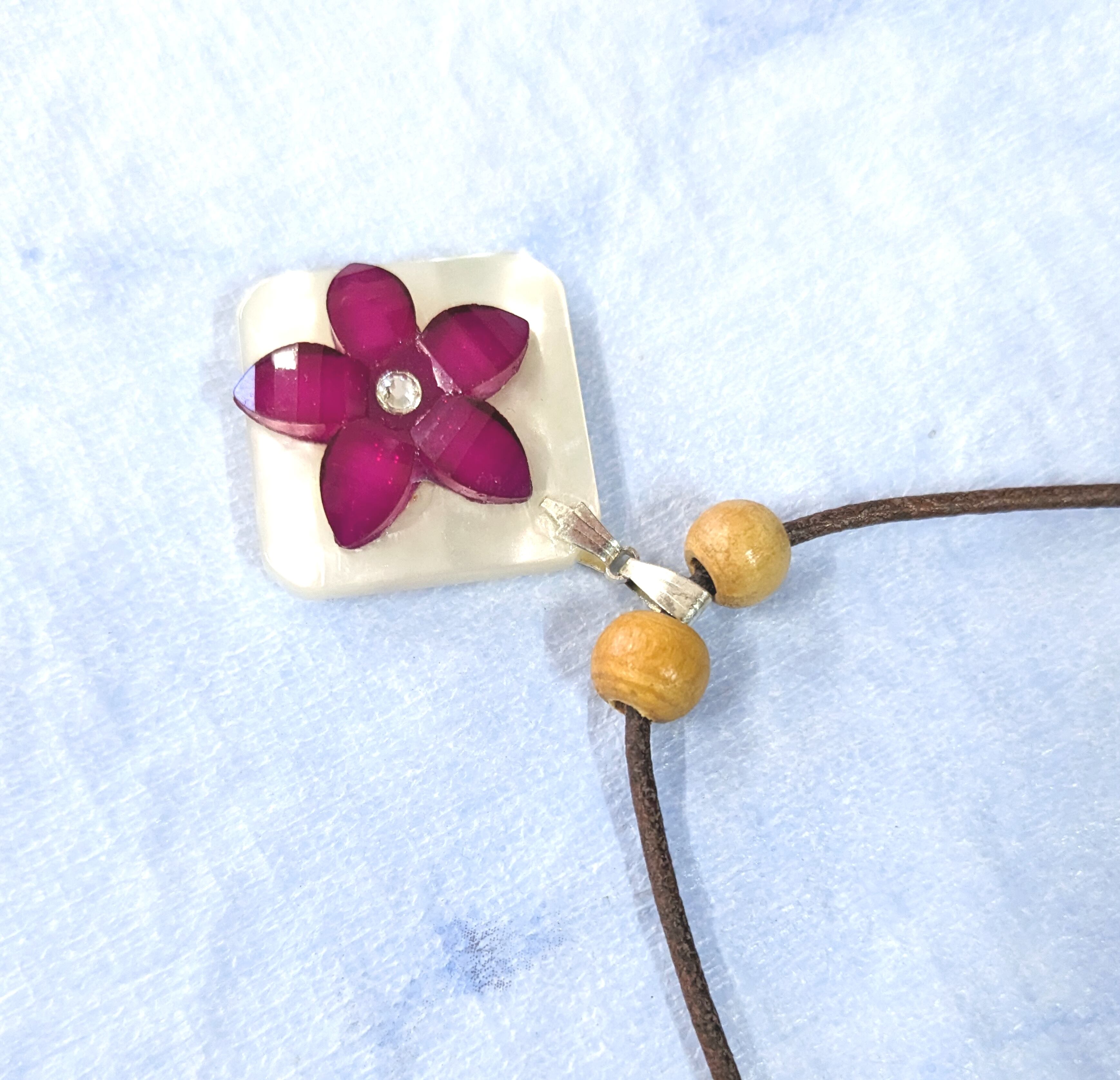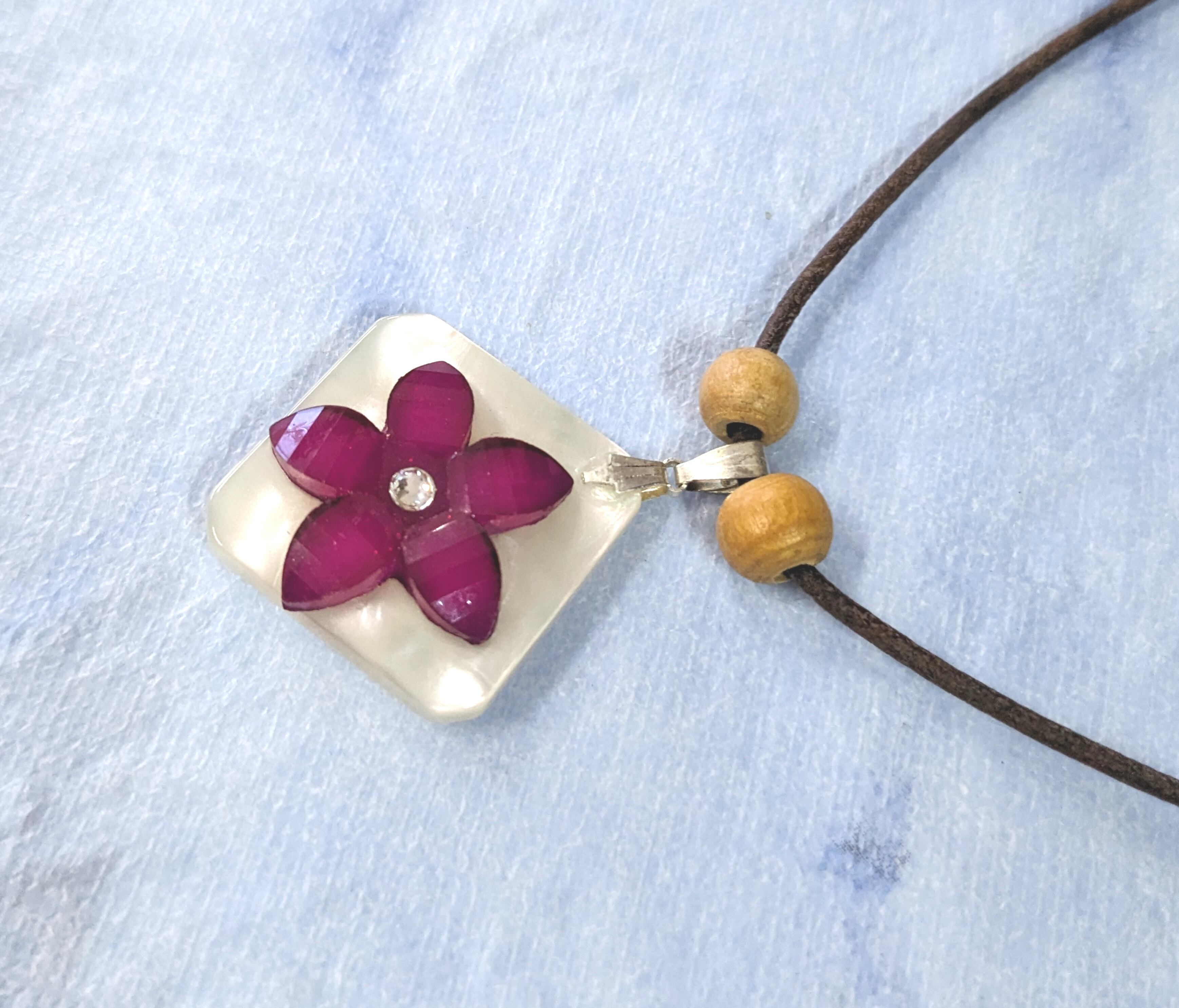 ハワイアンネックレス ライトパープルカラープルメリア& パールプレート P-722