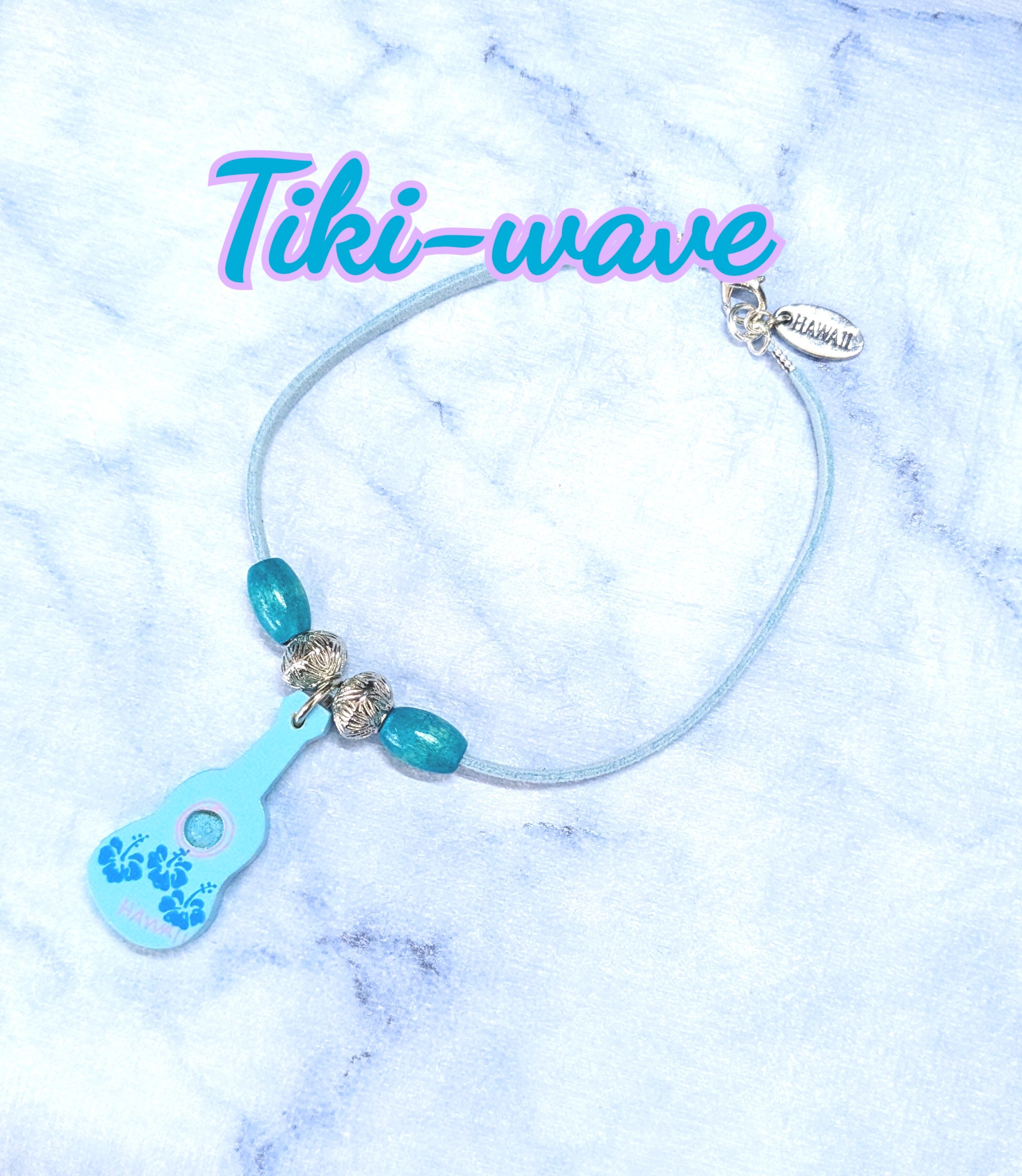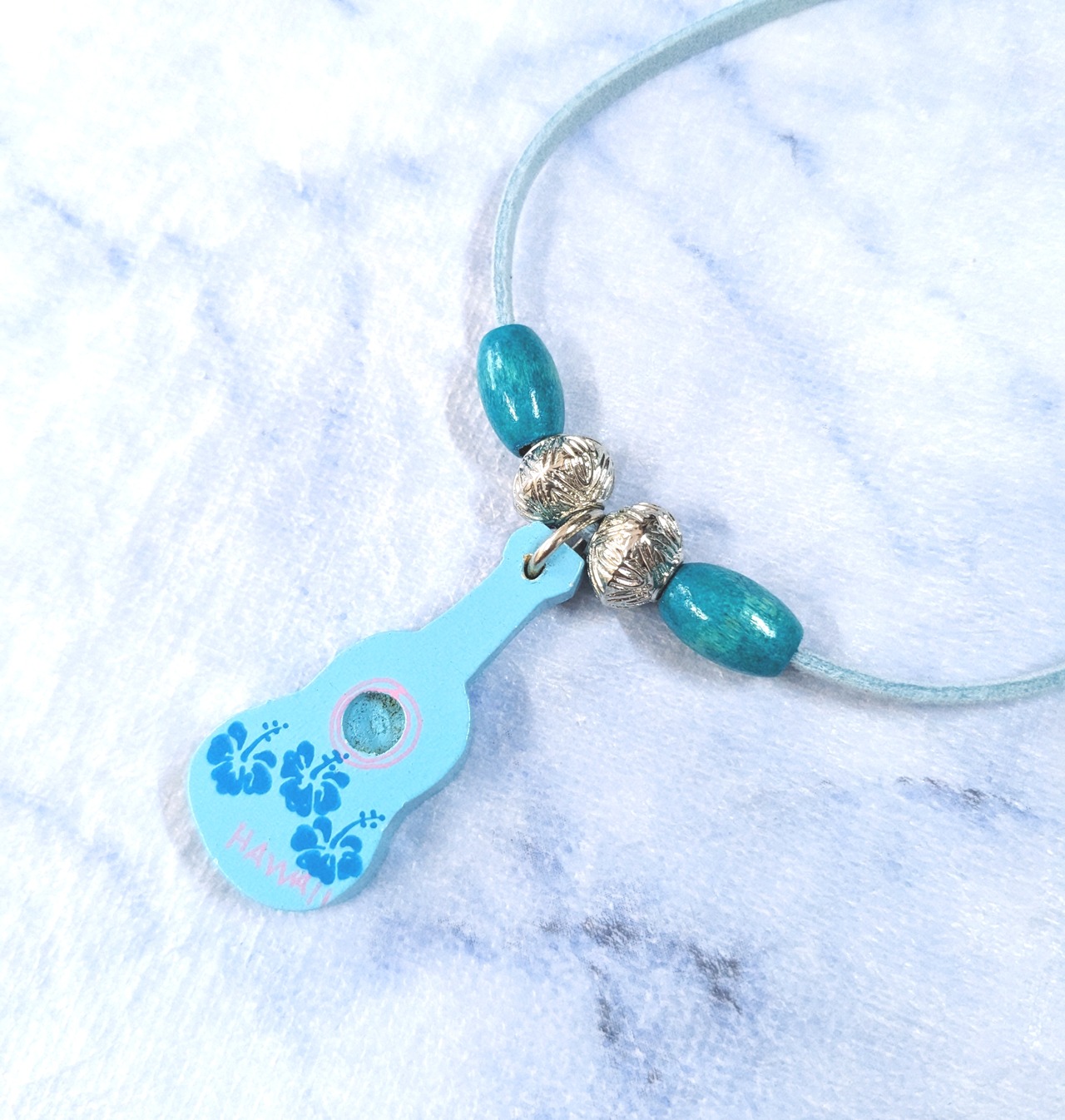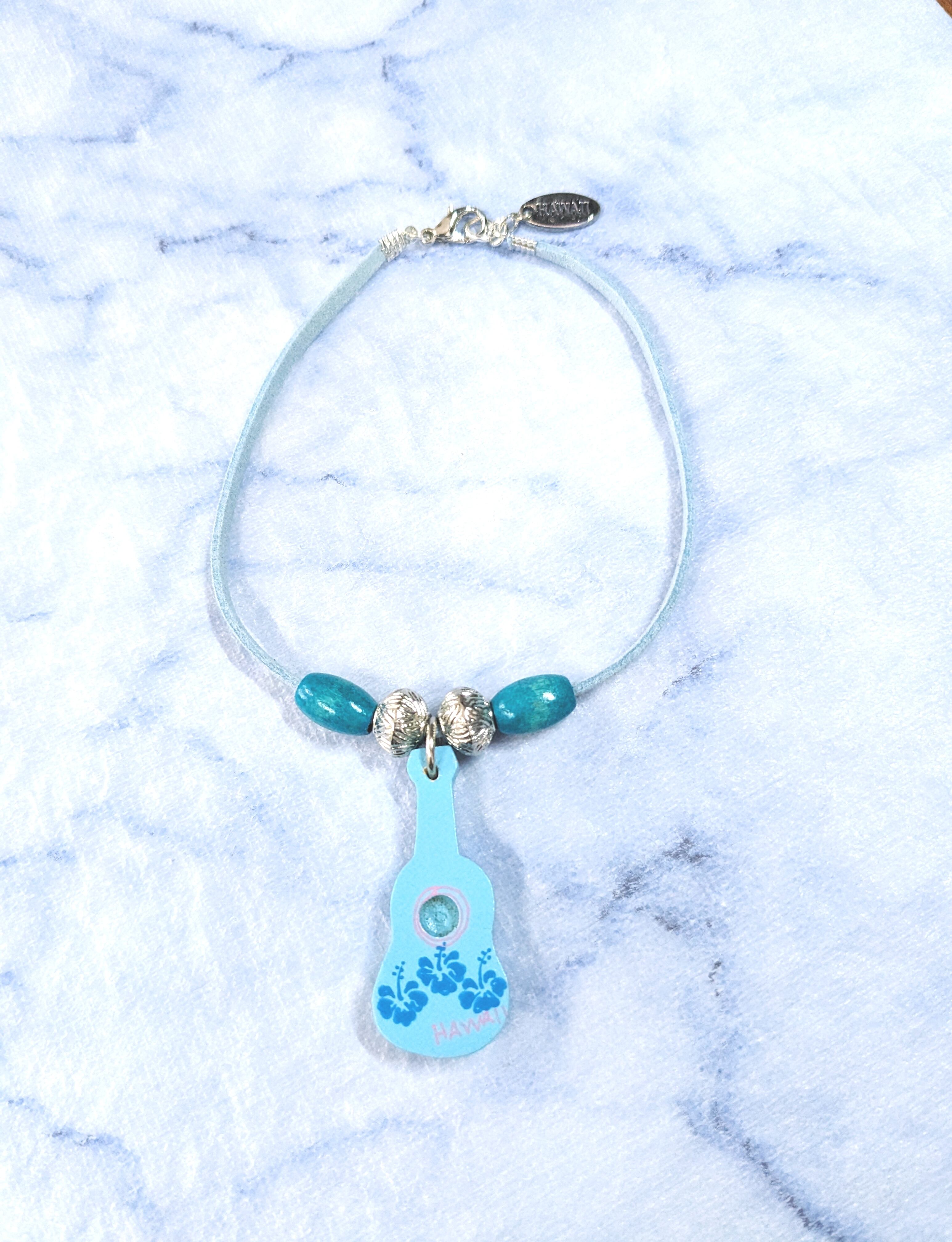ハワイアン 天然ウッド ライトブルーカラー ウクレレ スエード紐 S-226