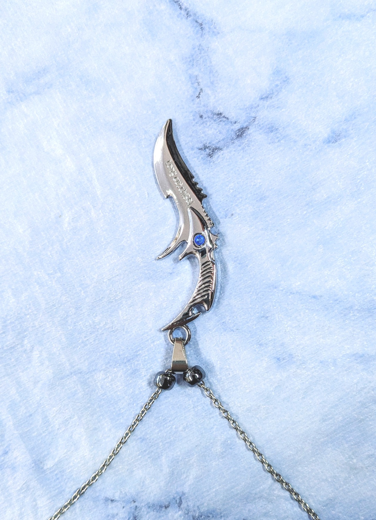 メンズネックレス シルバーカラーブレード& チェーン ブルーCZ Y-717