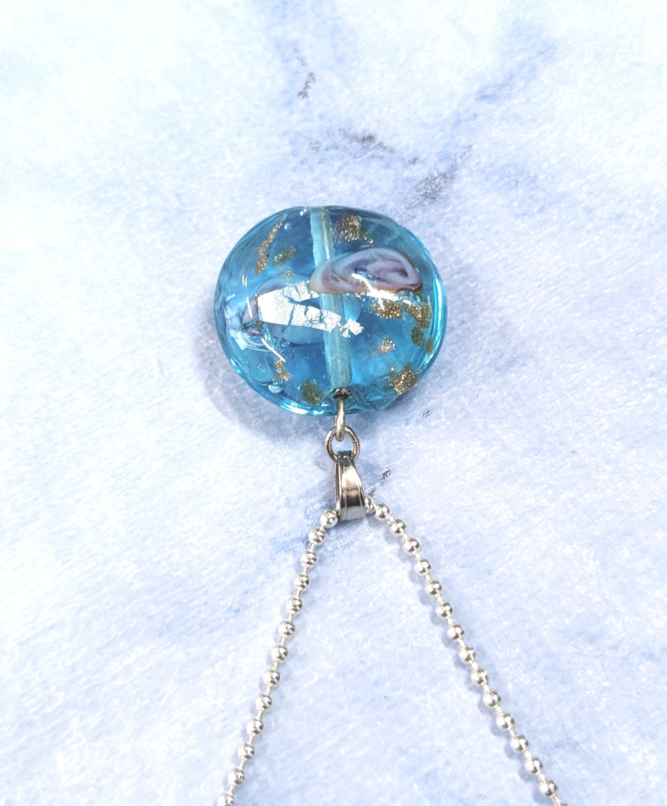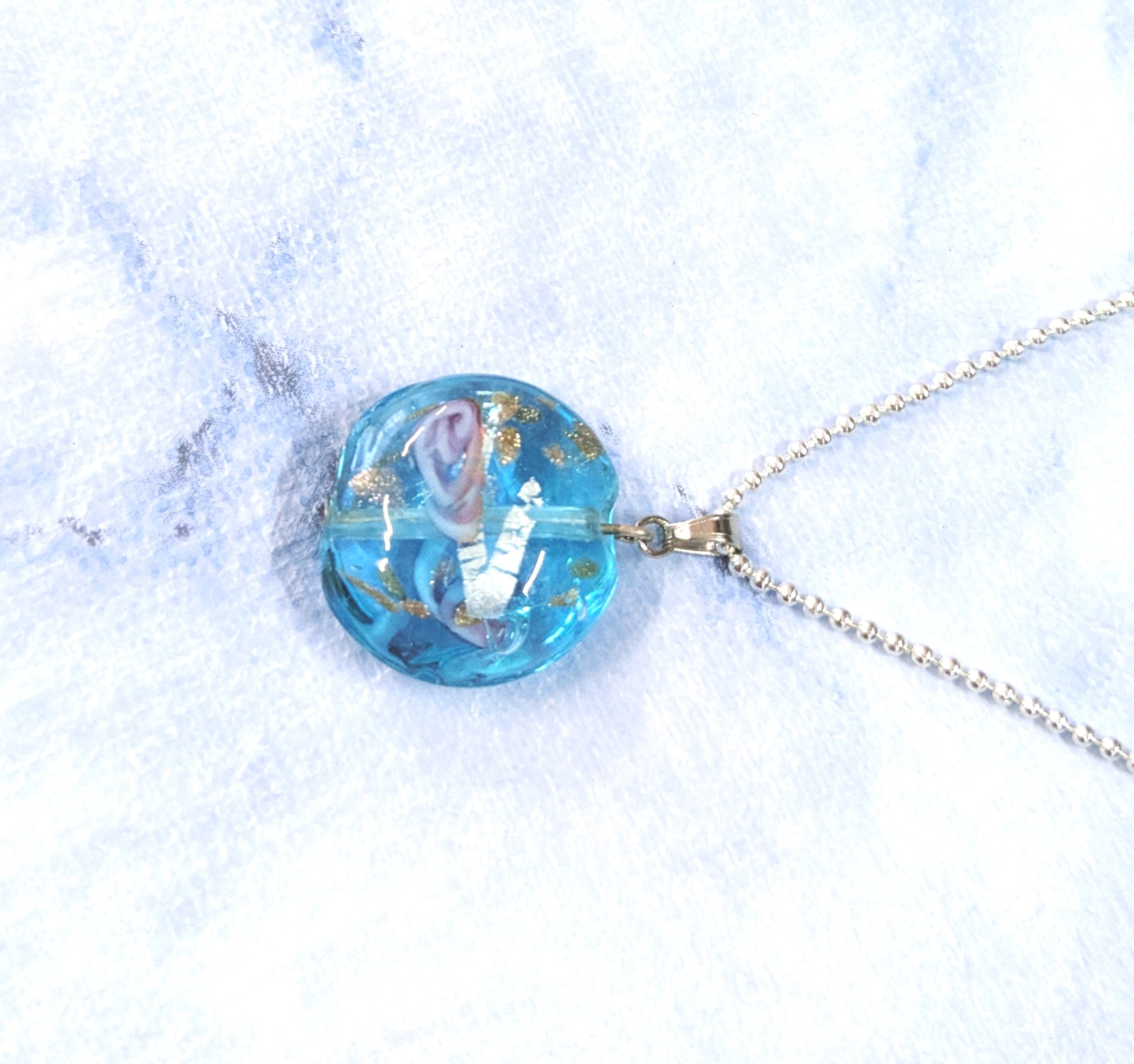 レディースネックレス アクアブルーカラー ガラス サークルデザイン L-852