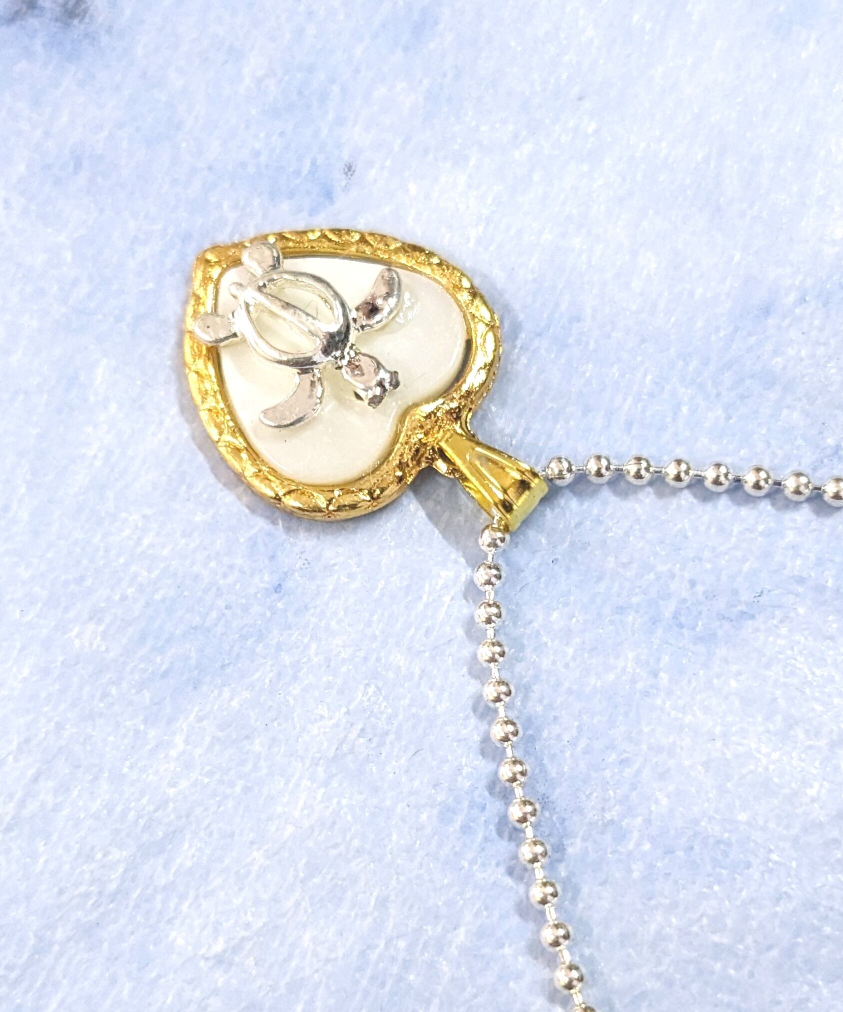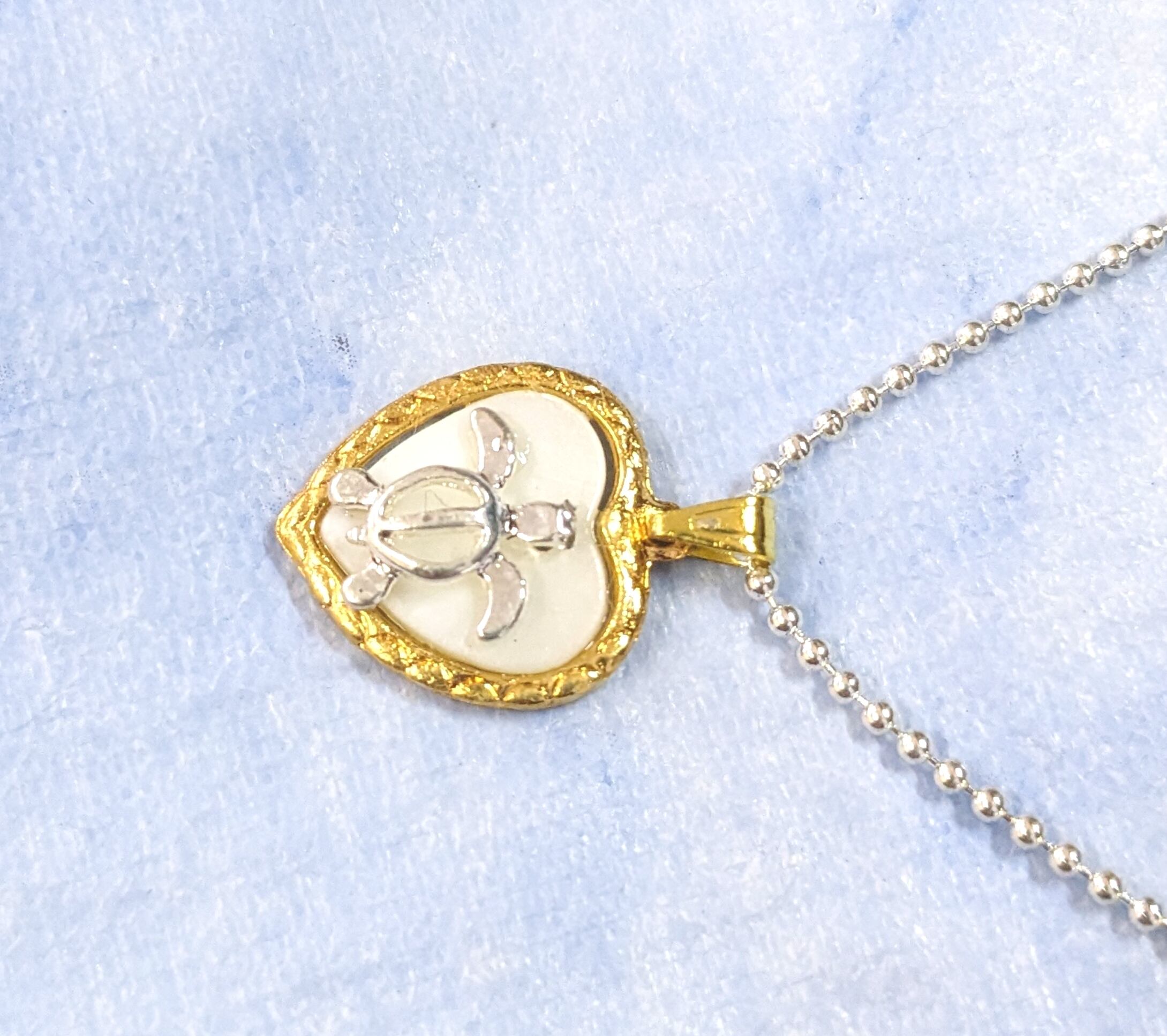 ハワイアンネックレス ホワイトハートシェル& シルバーホヌ H-182