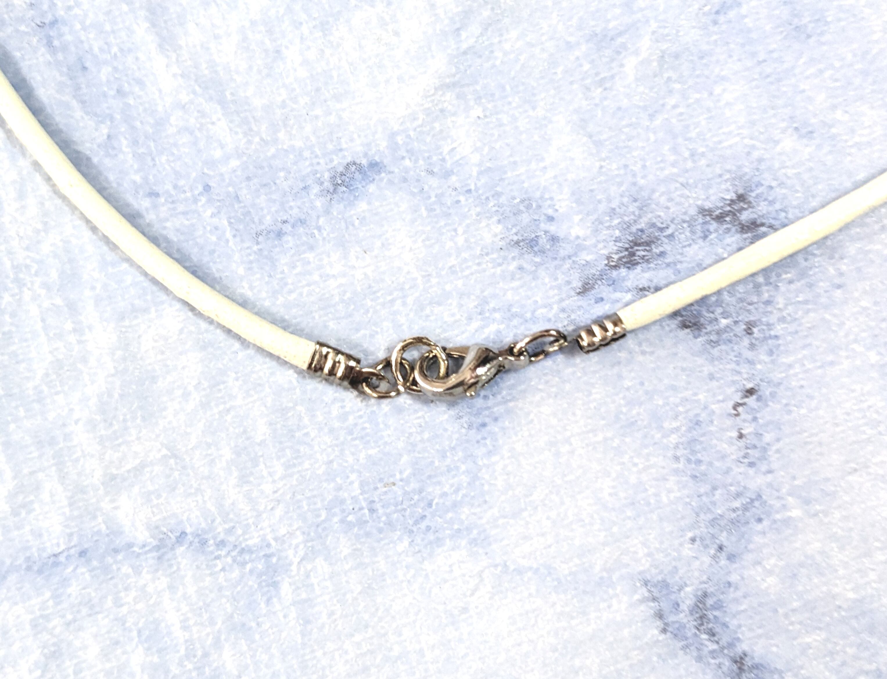 ハワイアンネックレス シルバー925ホエールテール &ホワイト本革紐 D-243