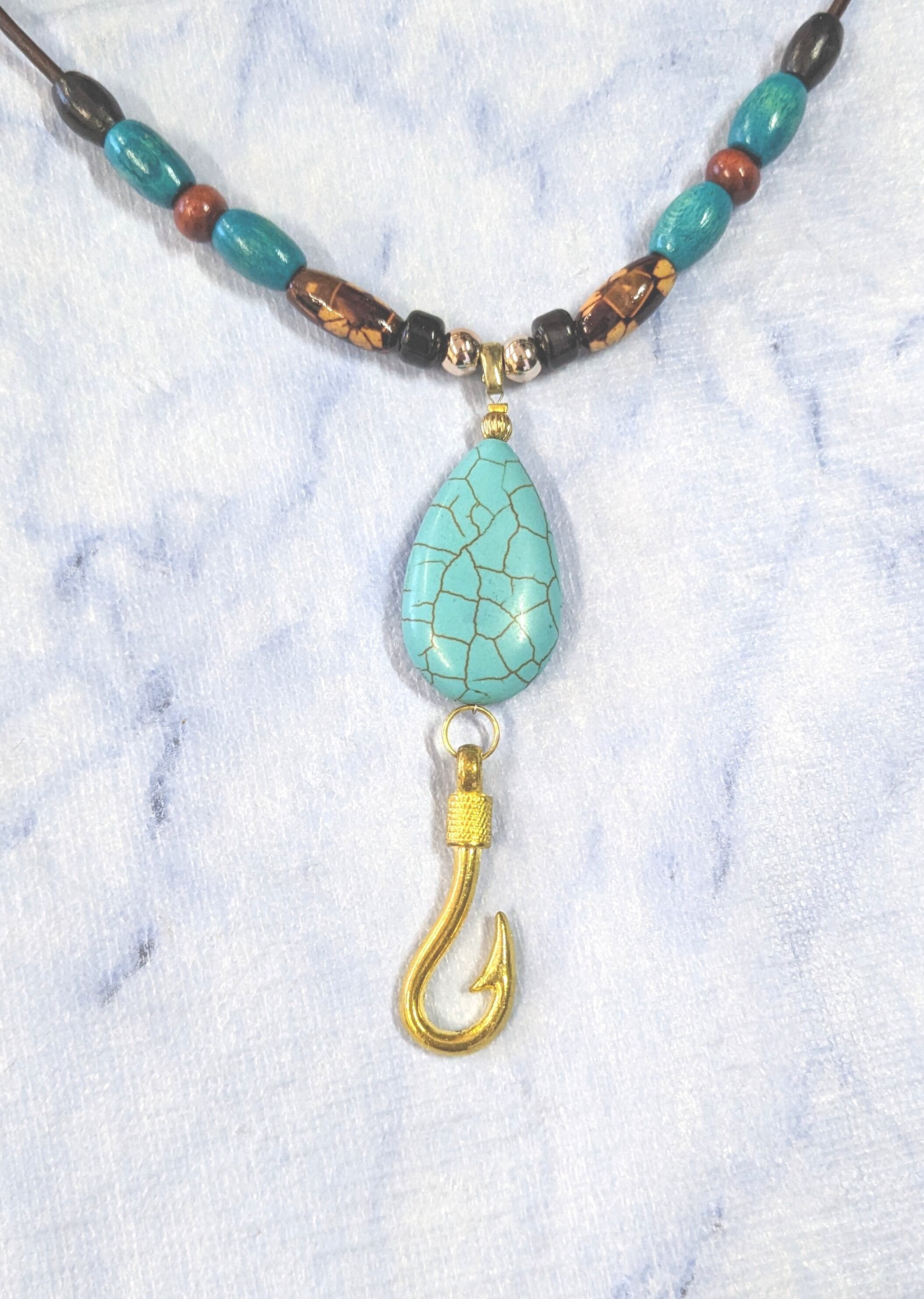 ハワイアンネックレス ゴールドフィッシュフック& ターコイズ F-115