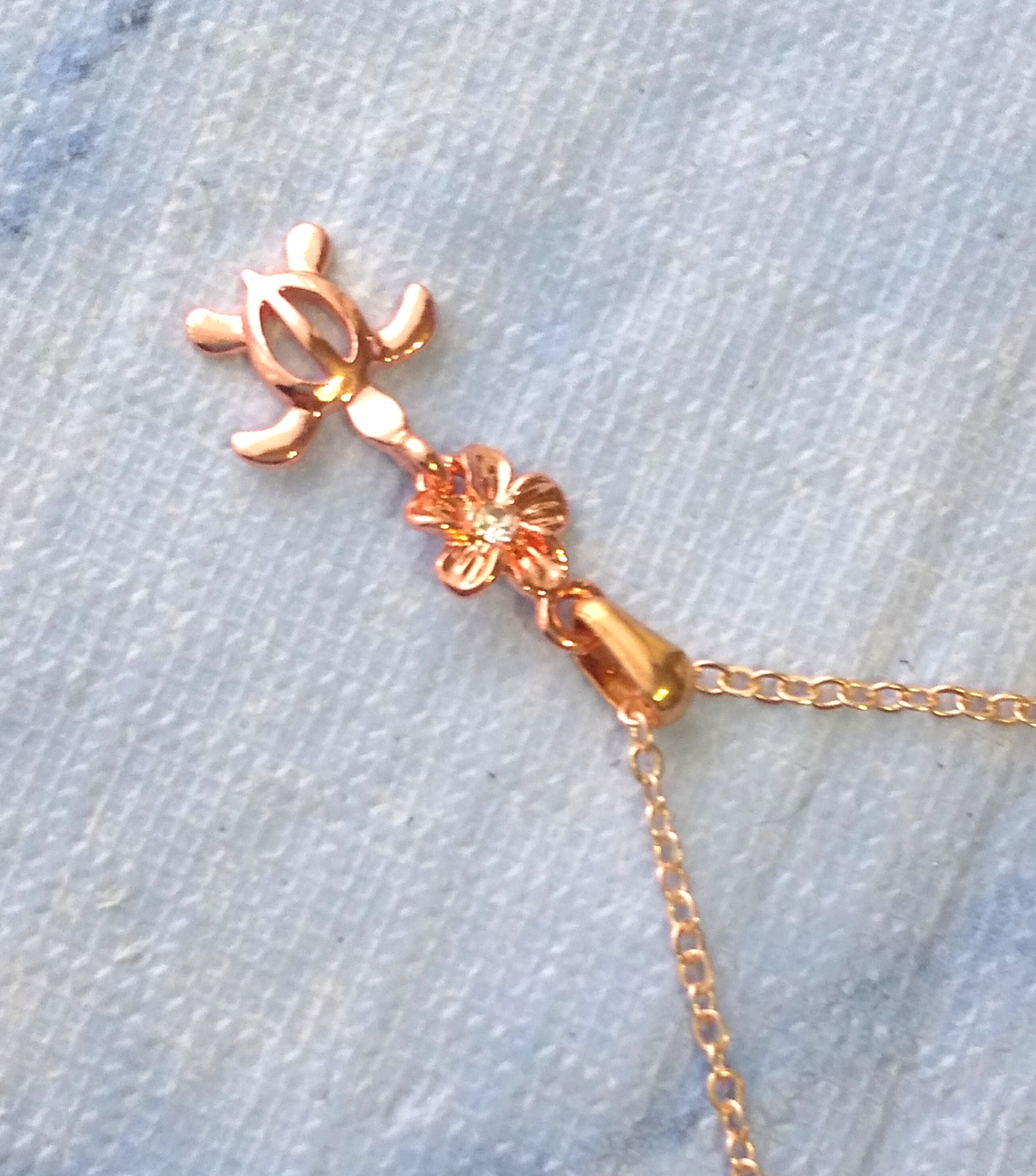 ハワイアンネックレス ピンクゴールドカラー ホヌ&プルメリア クリアCZ H-184