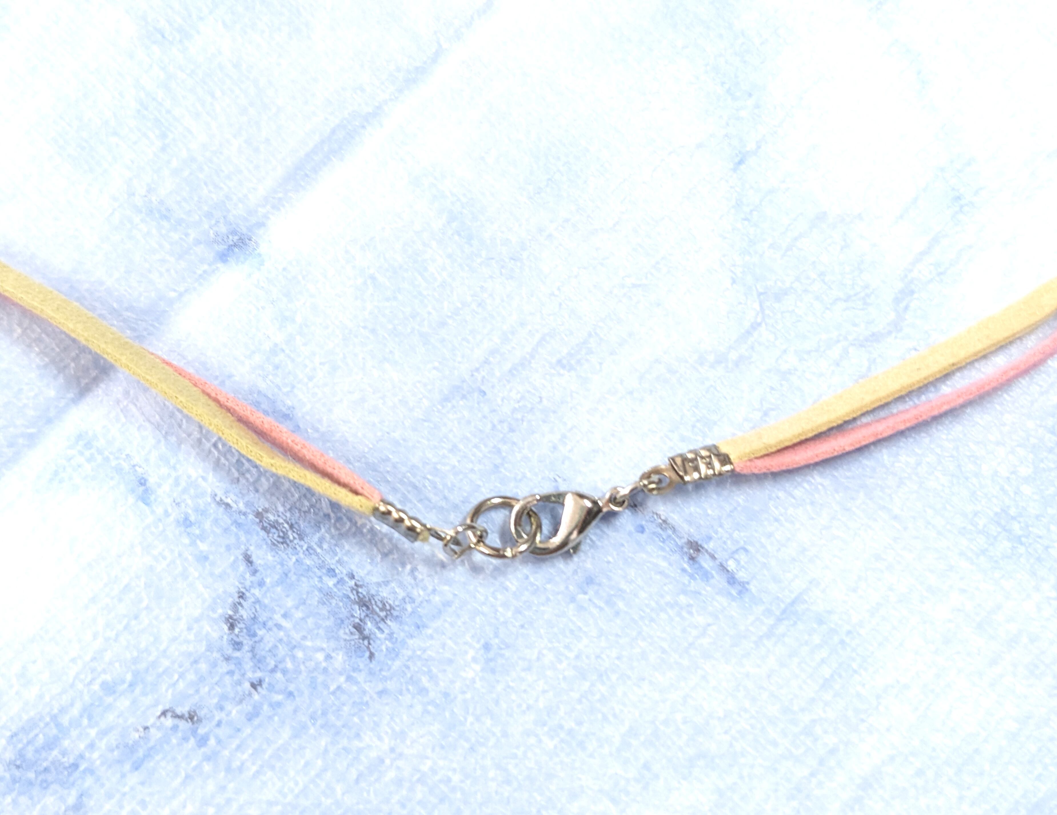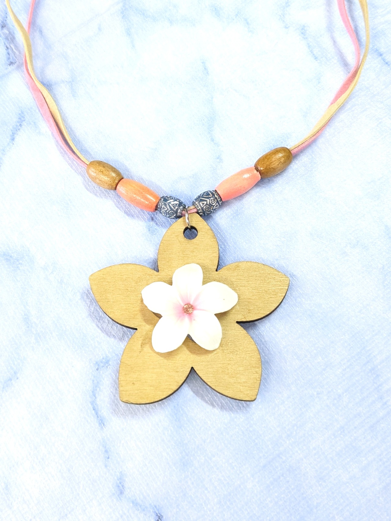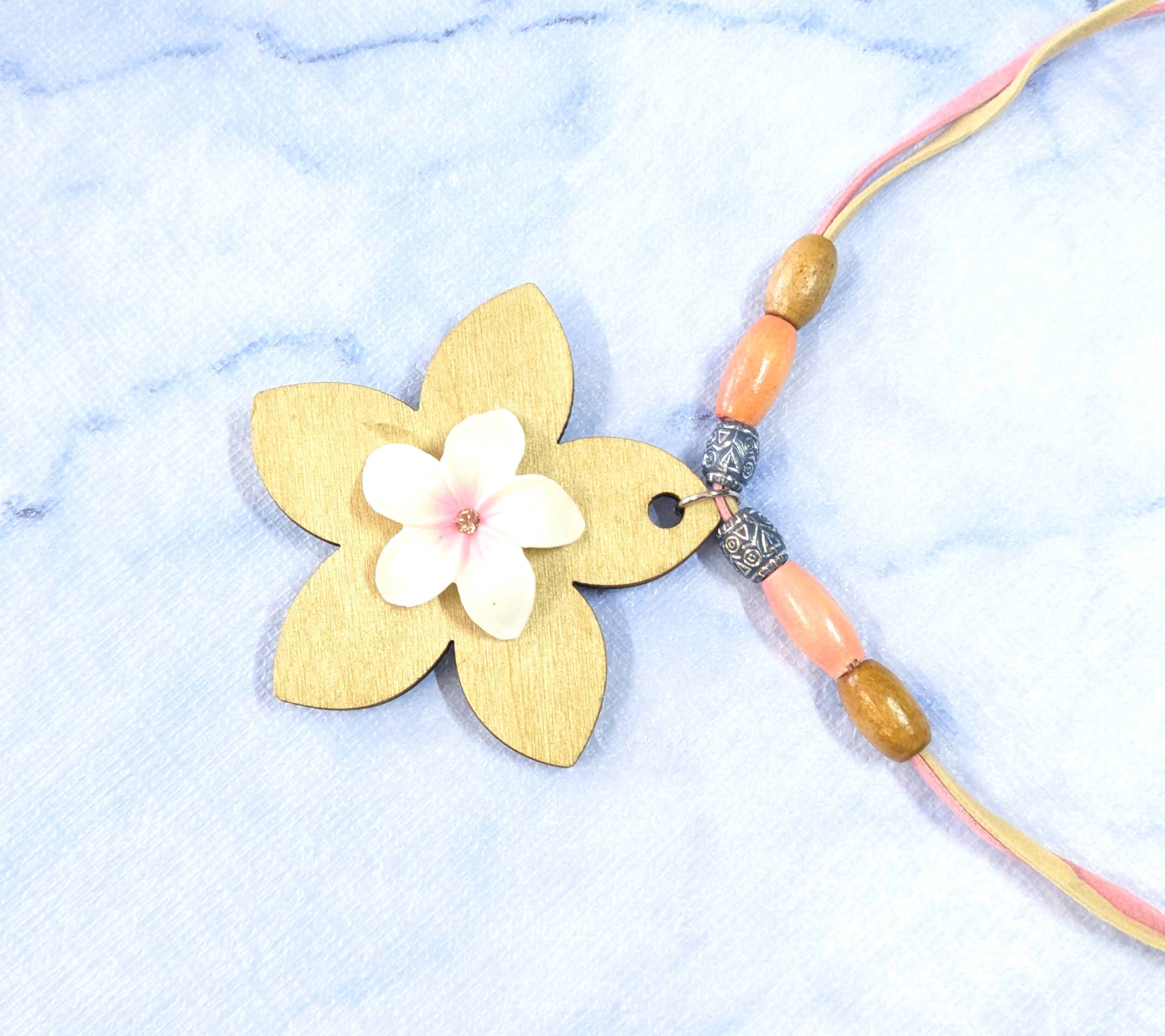 ハワイアンネックレス ピンク&ウッドプルメリア スエード P-731