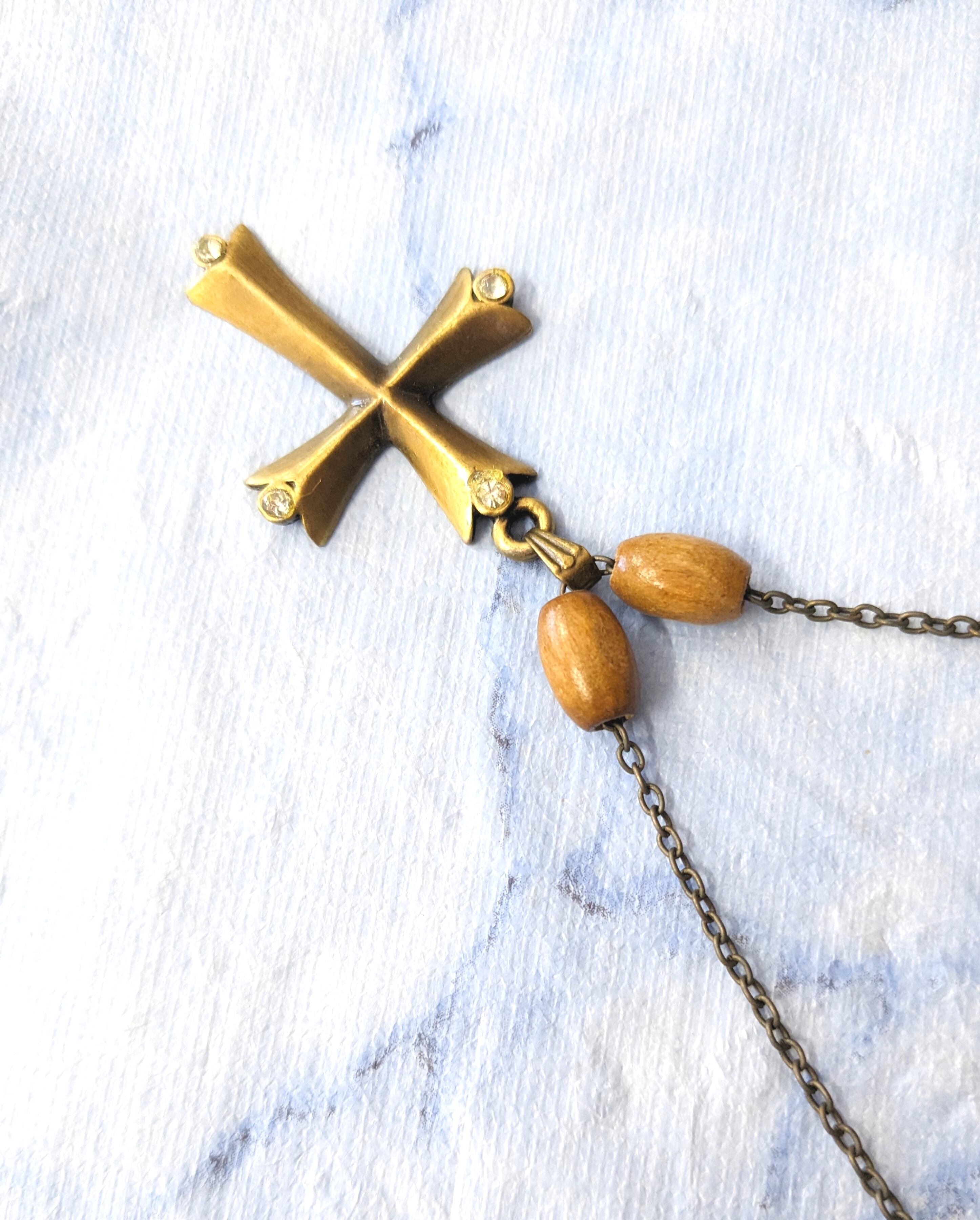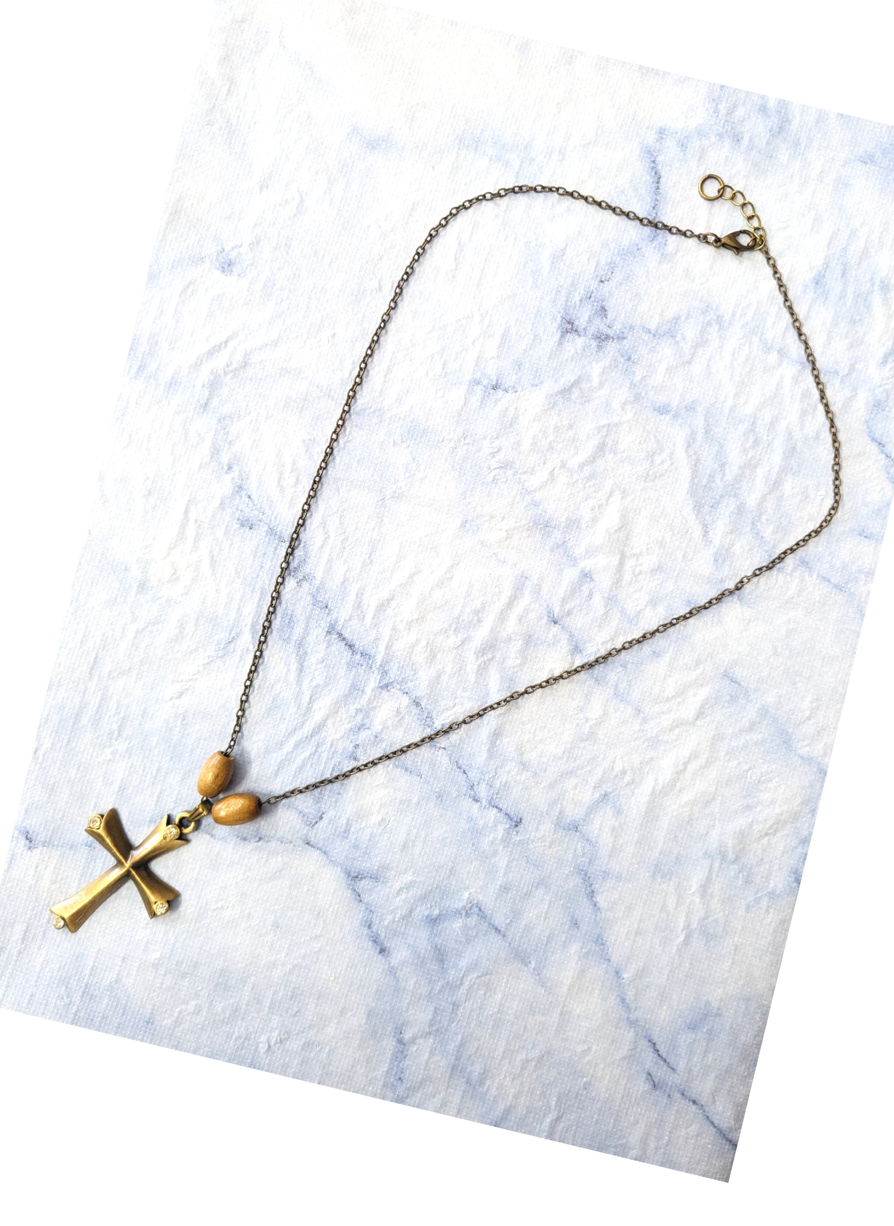 メンズネックレス クラシックゴールドカラークロス &クリアCZ Y-614