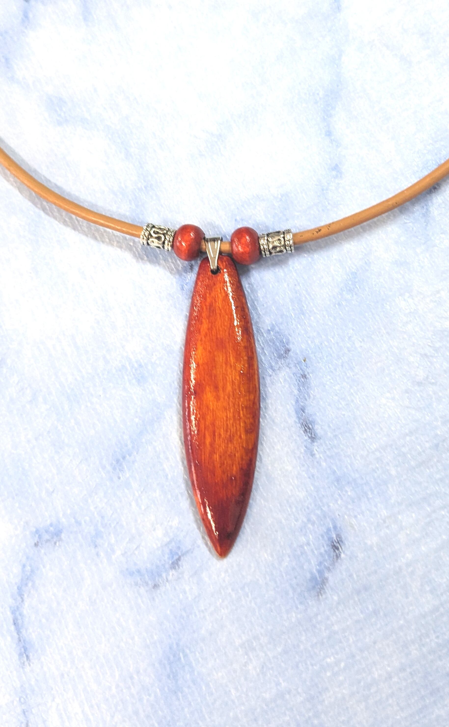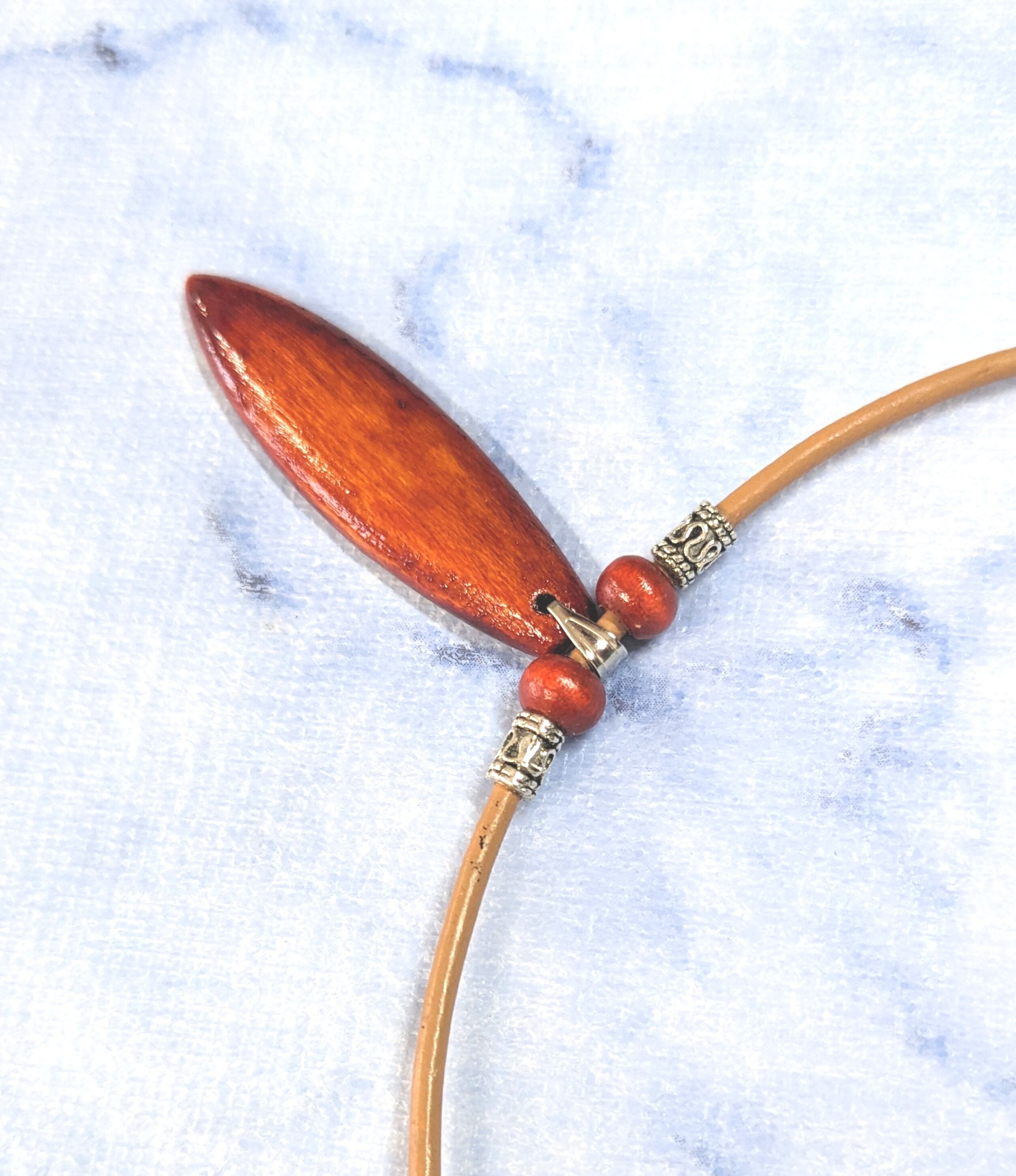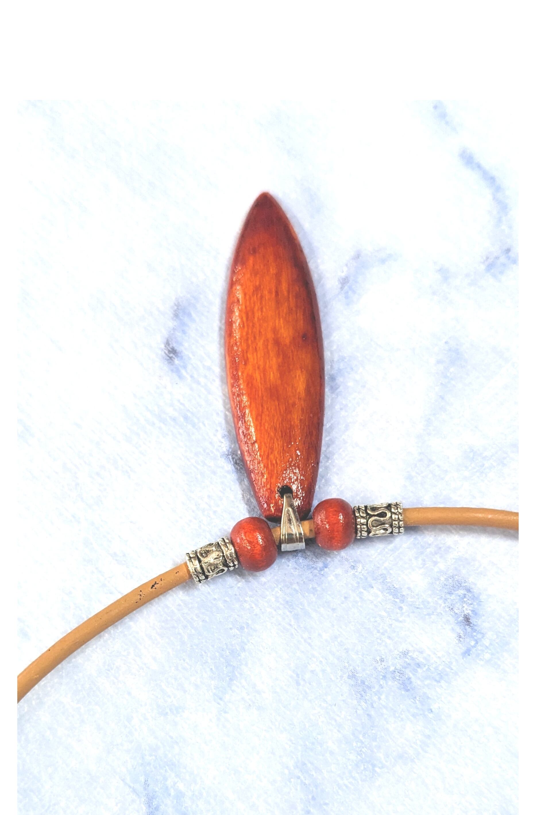 ハワイアンネックレス ブラウンカラー天然ウッド サーフボード 本革紐 B-358
