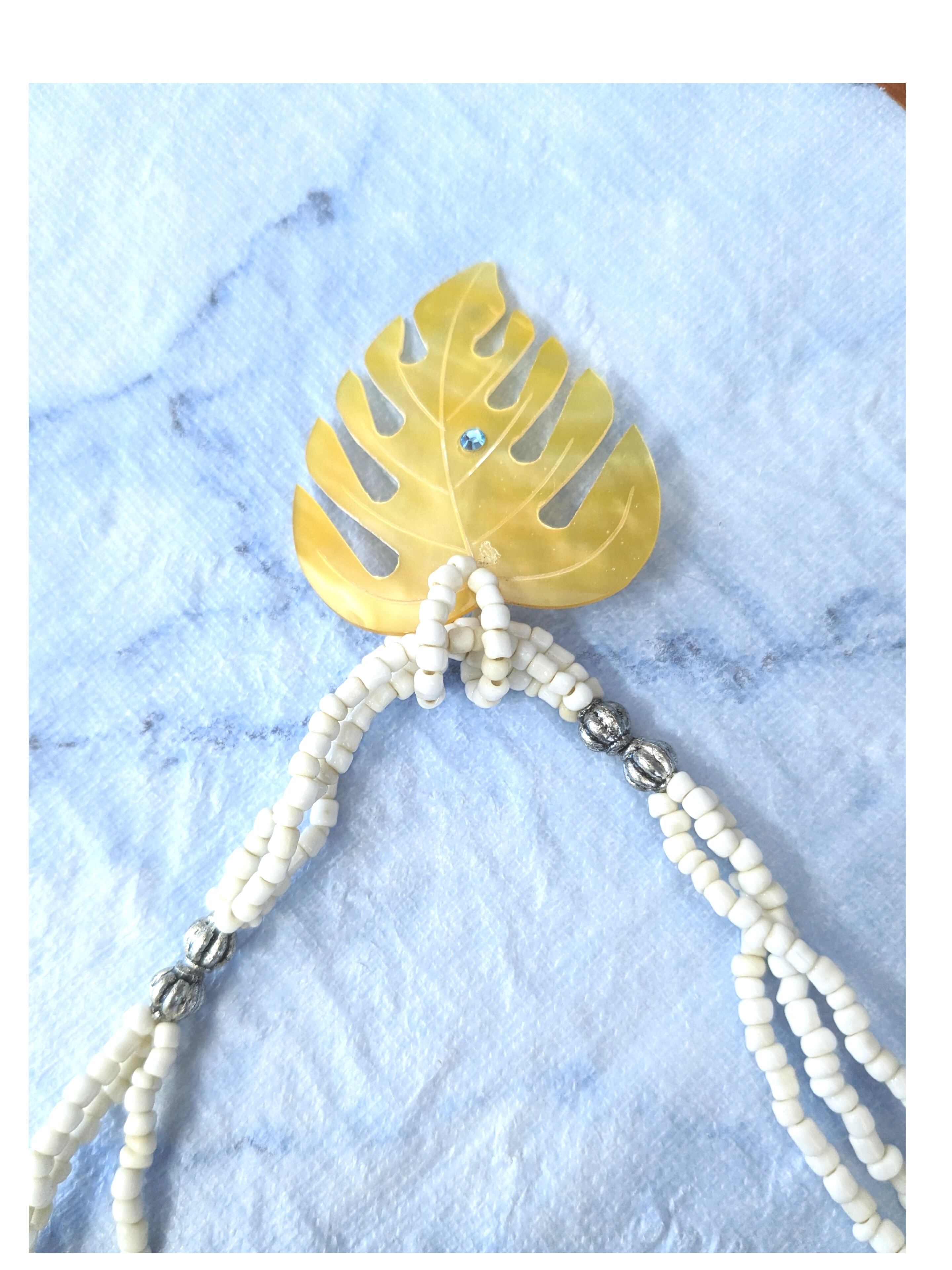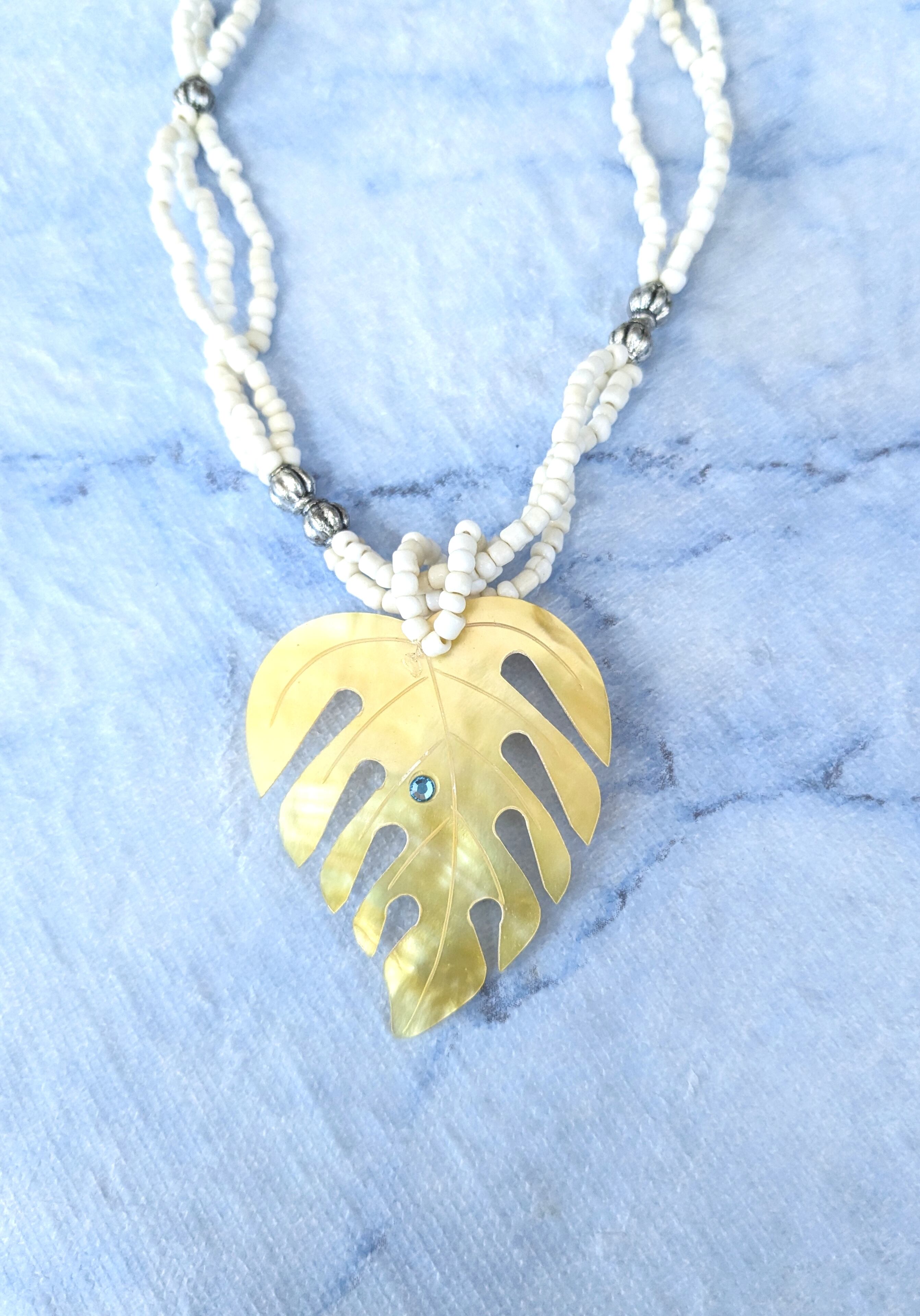 ハワイアンネックレス 天然シェルモンステラ& ホワイトビーズ M-531