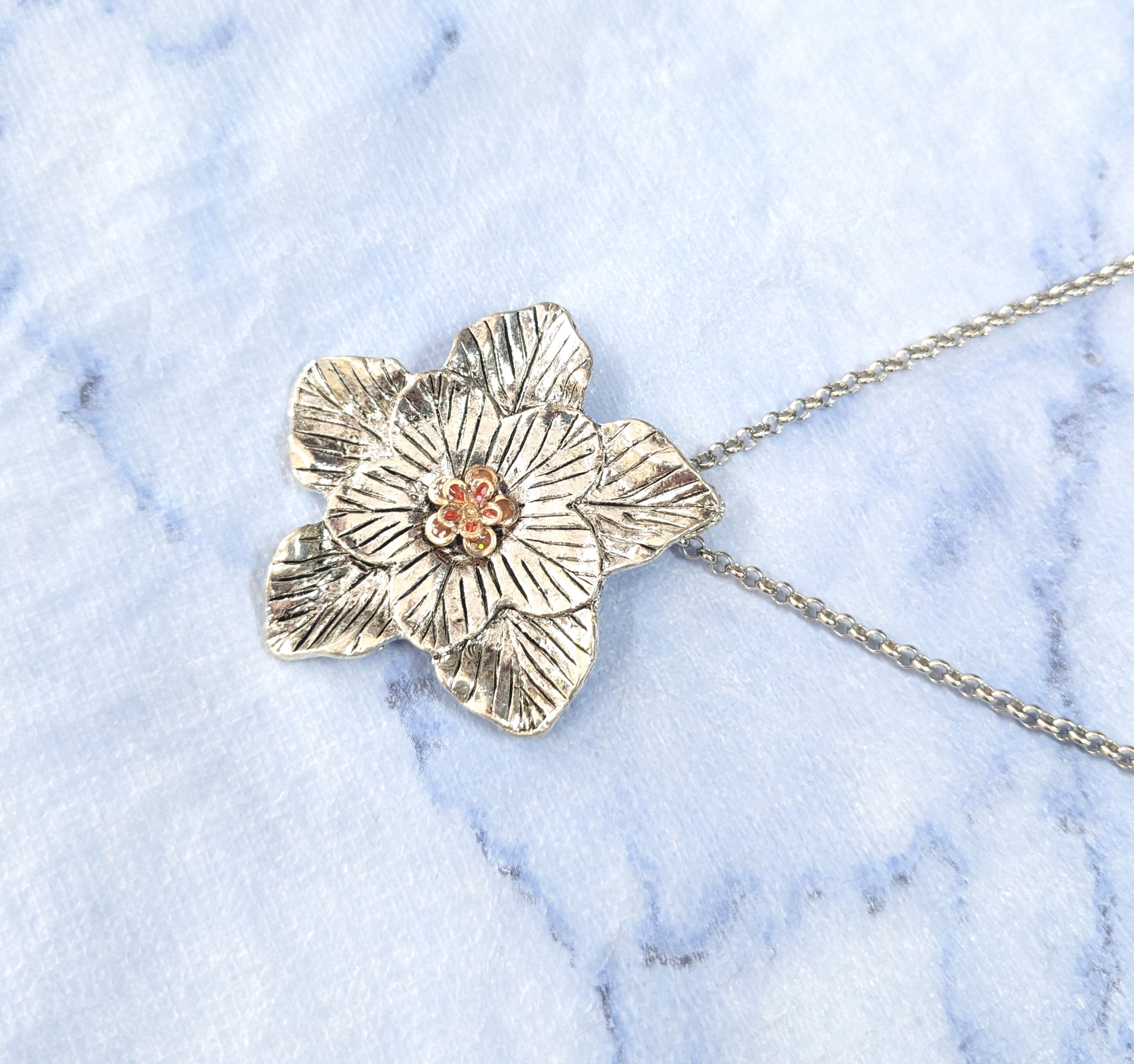 レディースネックレス シルバーカラープルメリア フラワーデザイン L-854