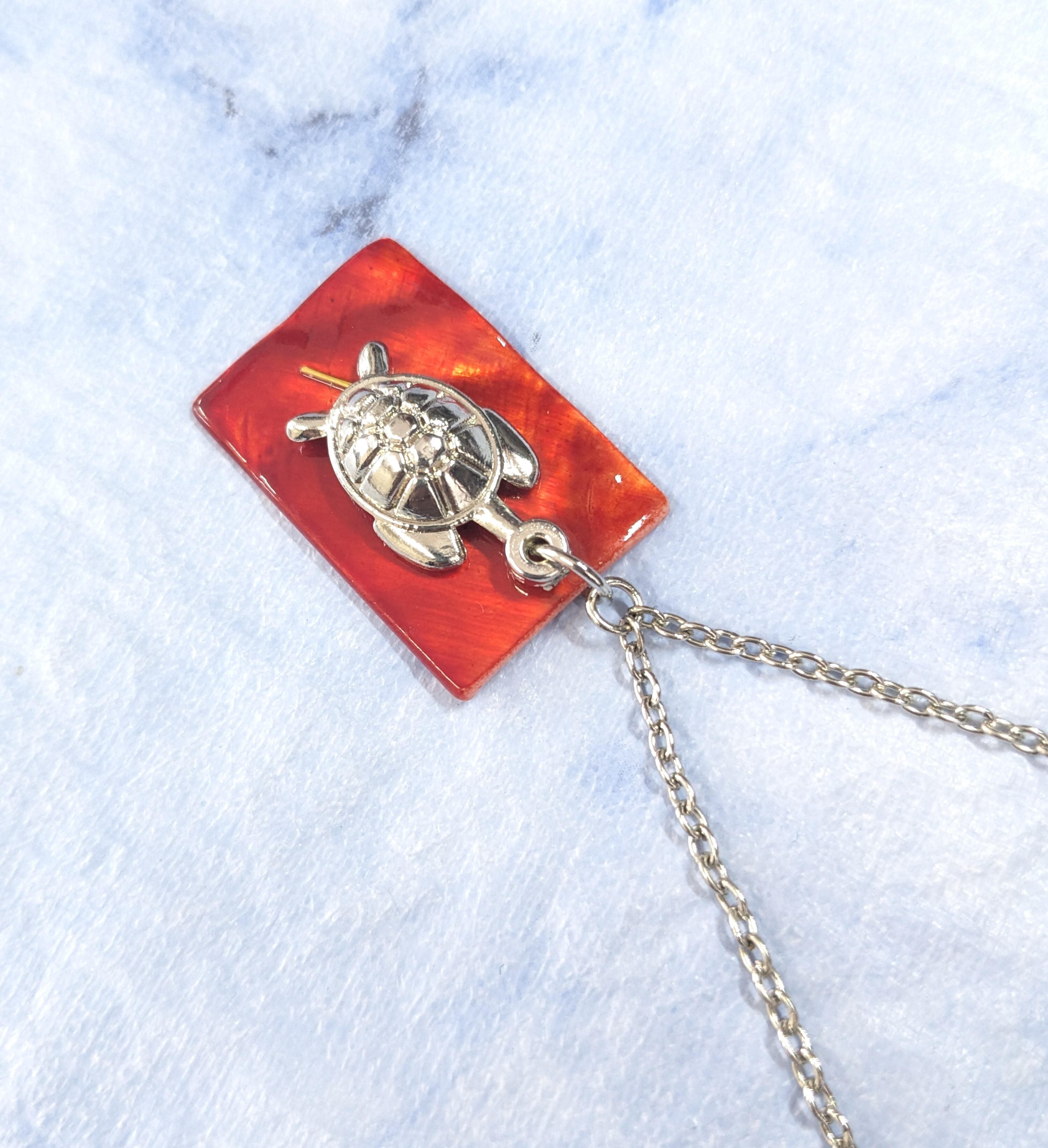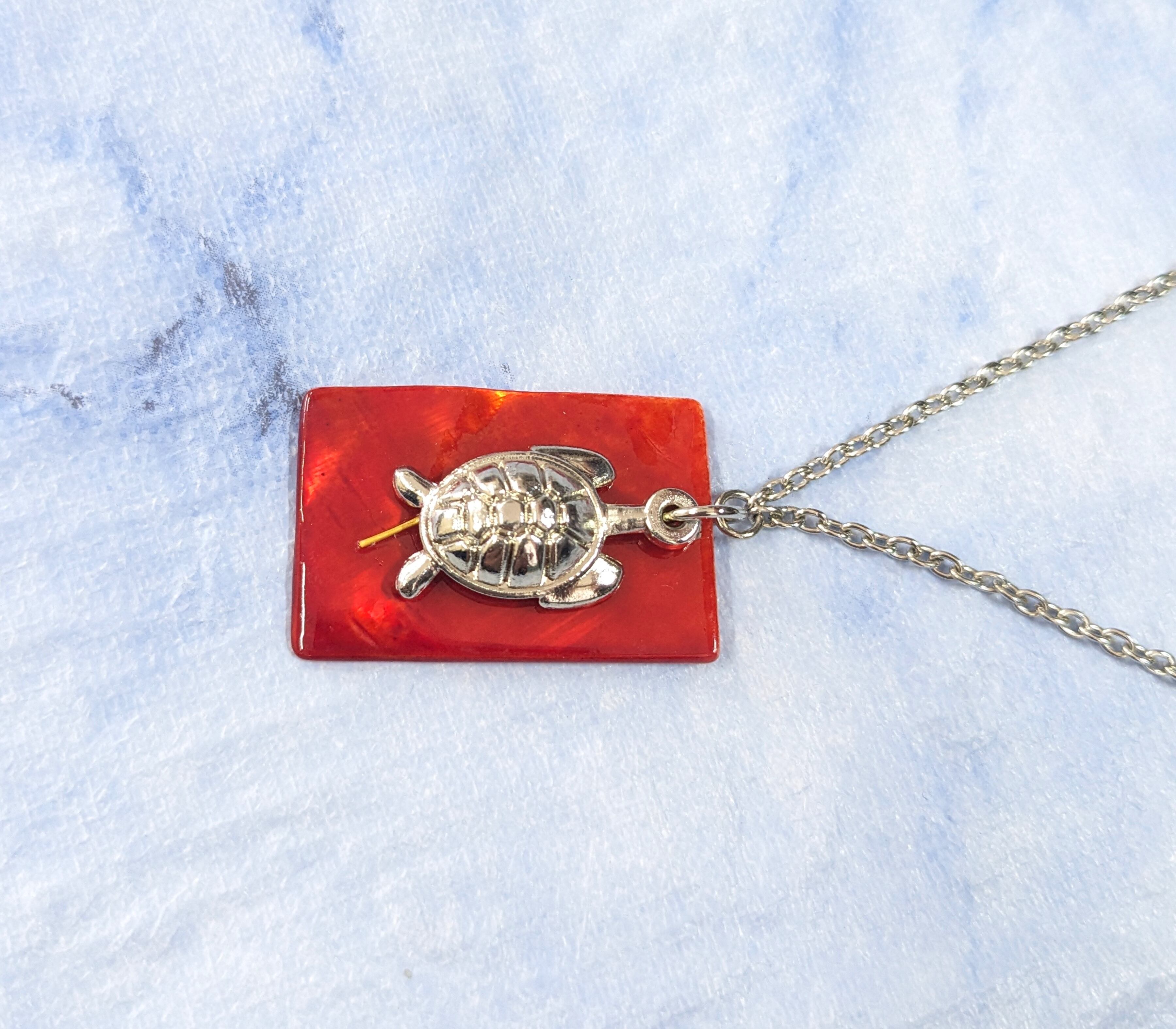 ハワイアンネックレス シルバーカラーホヌ& ワインカラーシェル H-187