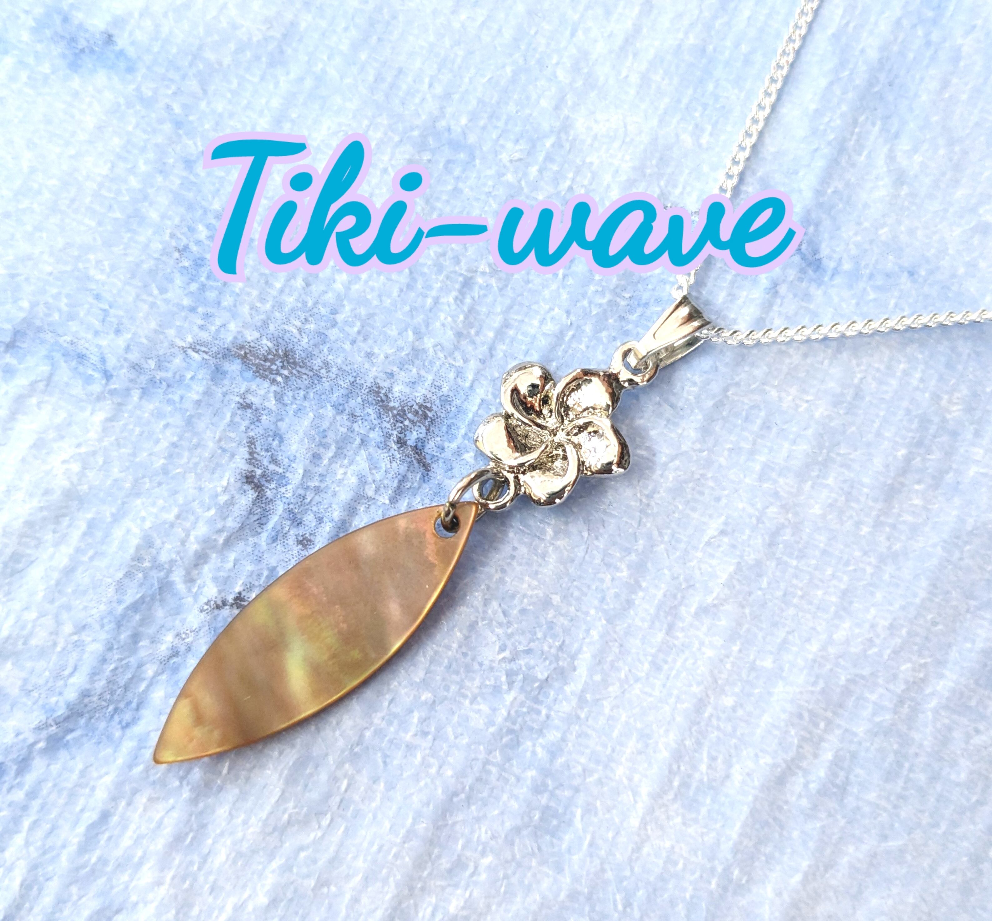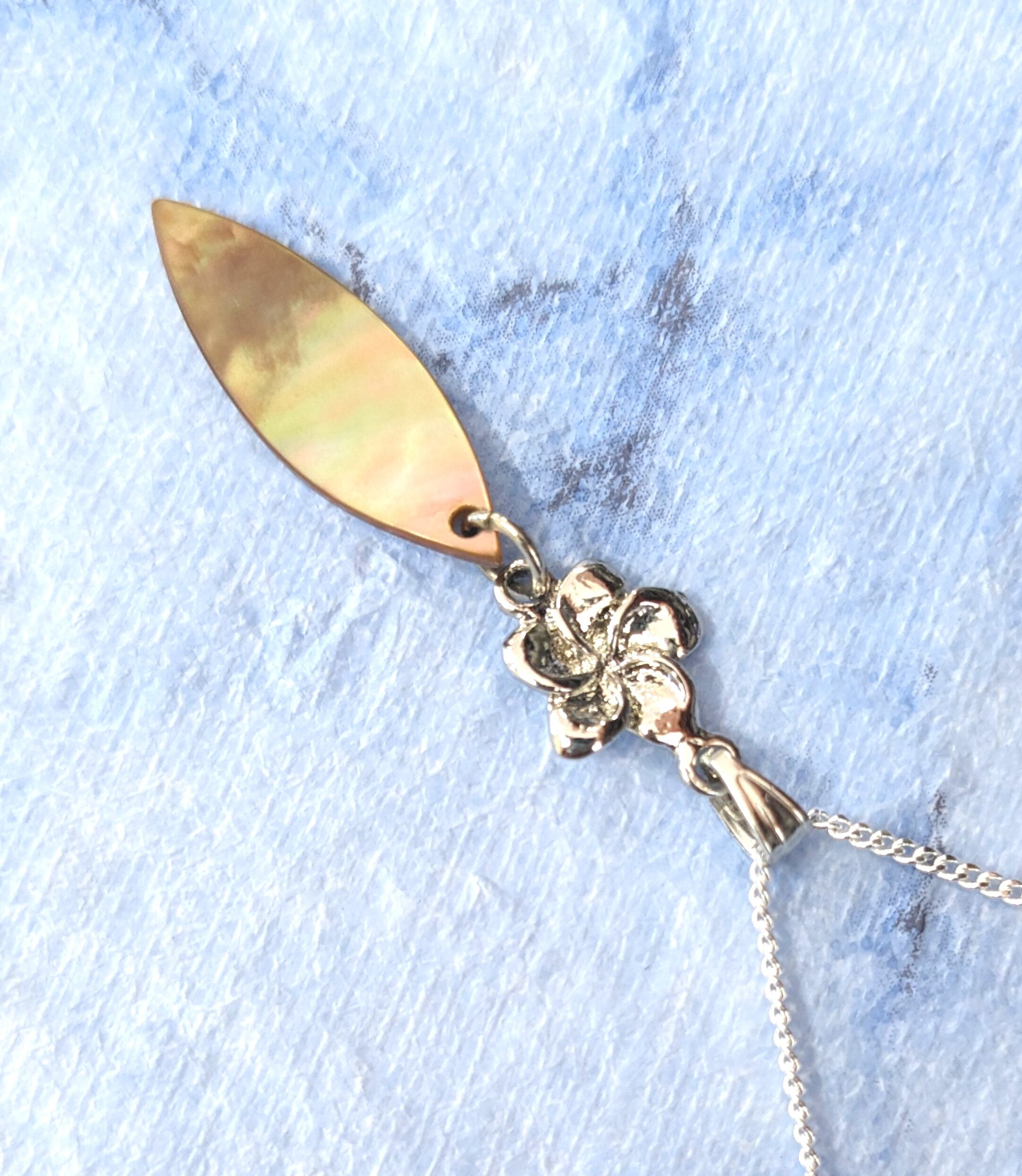 ハワイアンネックレス 天然シェル サーフボード &シルバープルメリア B-363