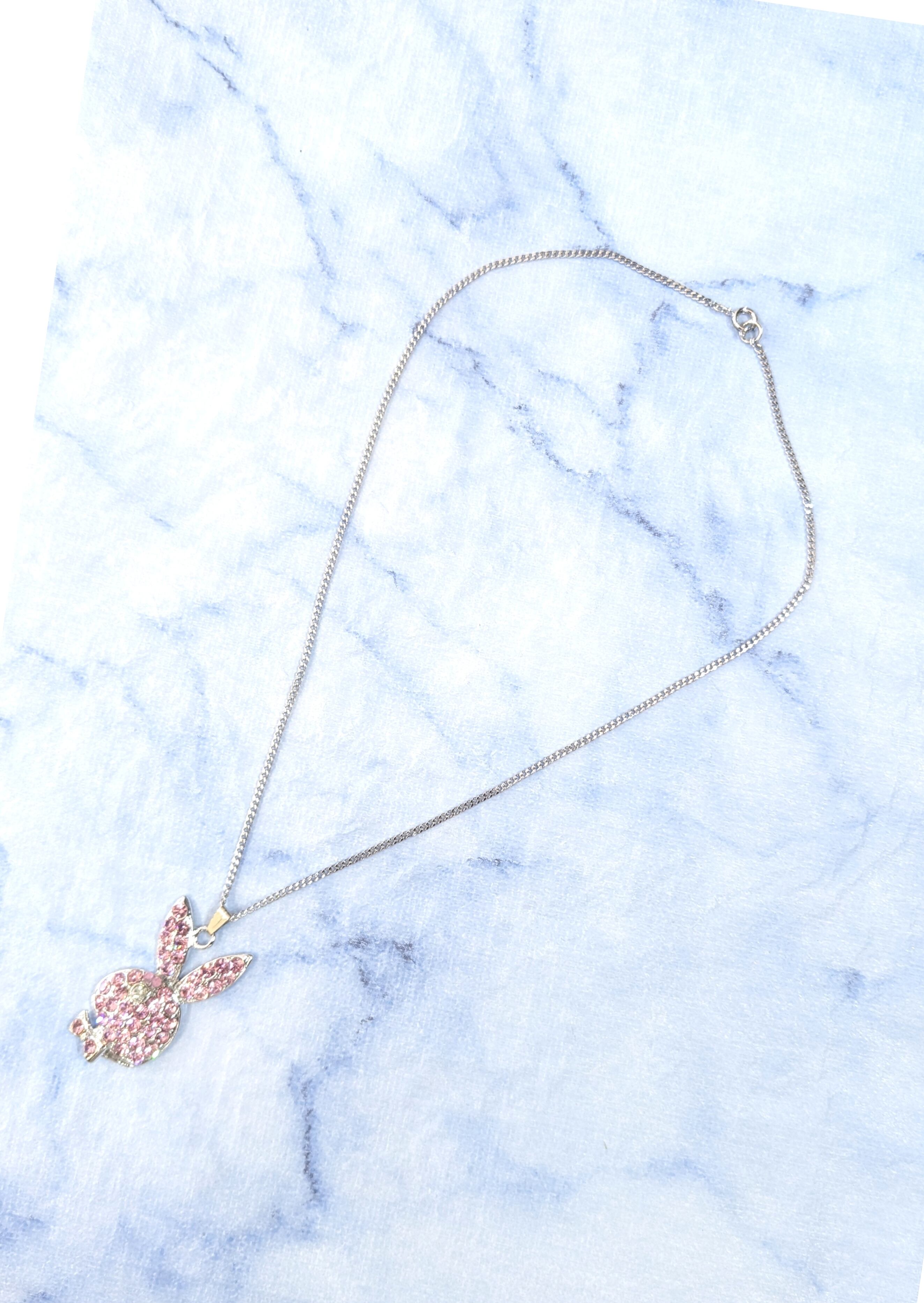 レディースネックレス シルバーカラープレイボーイ & ピンクジルコニア L-857