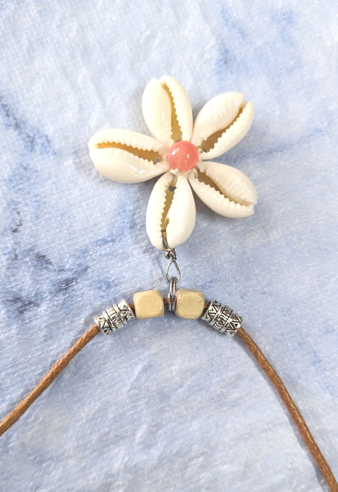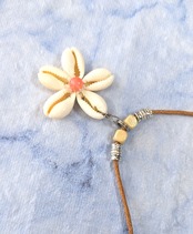 ハワイアンネックレス ホワイトカラー 5連タカラ貝 フラワーデザイン S-380
