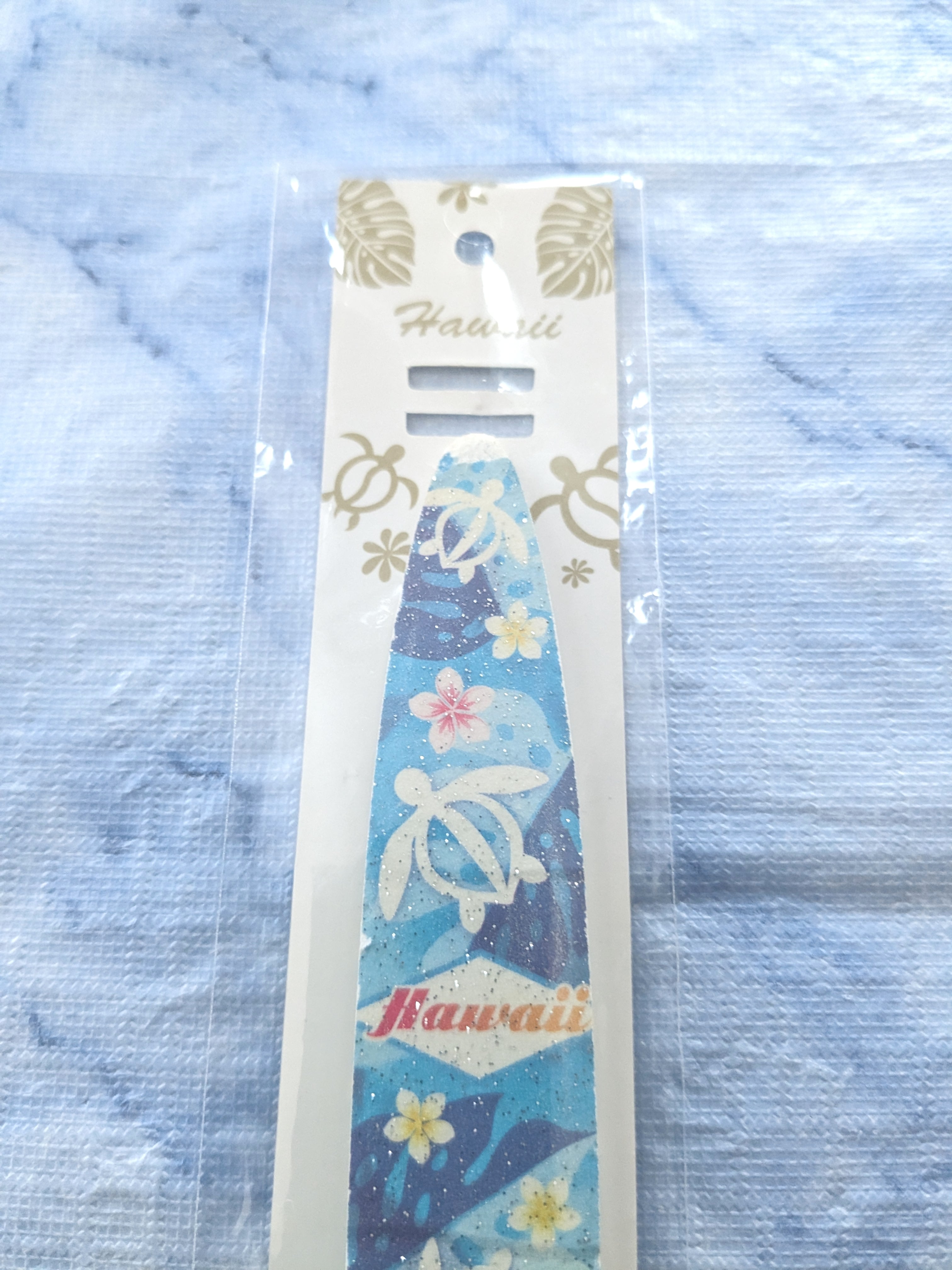 ハワイアン雑貨 ライトブルーサーフボード型 ホヌデザイン爪ヤスリ S-228