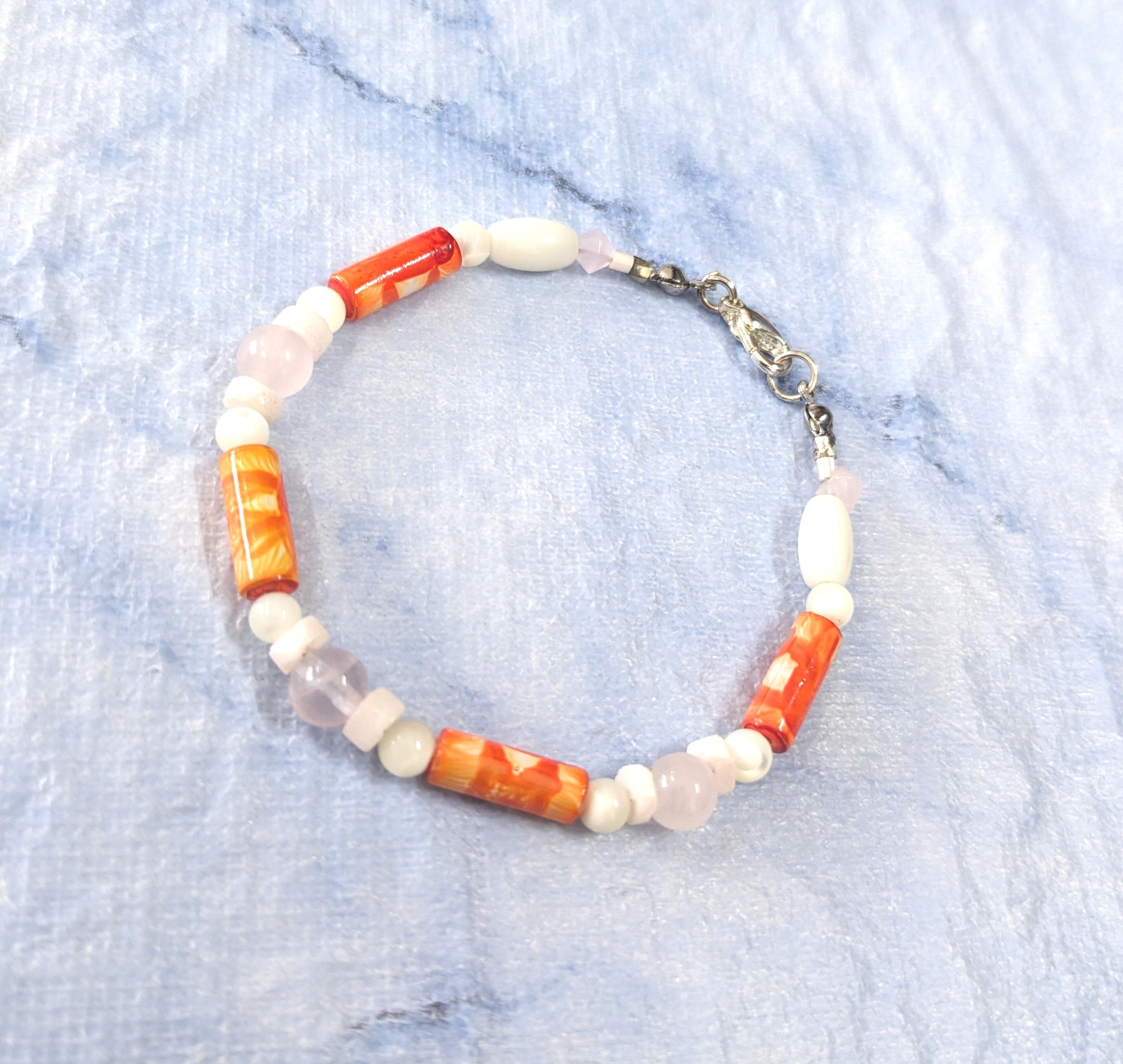 ハワイアンブレス 天然シェル&ローズクォーツ オレンジウッド R-421
