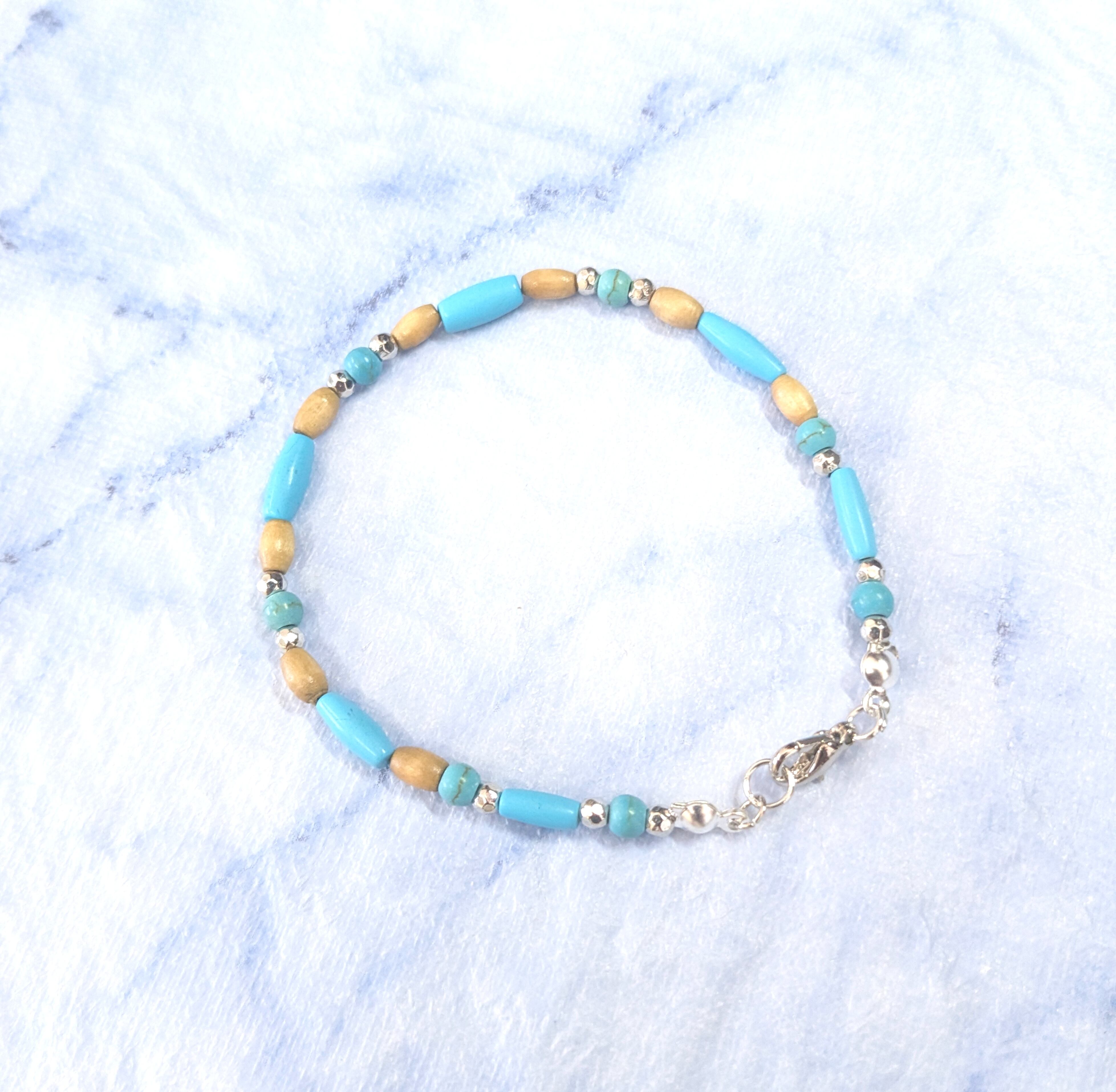 ファッションブレス ハウライトブルーターコイズ& 天然ウッド D-601