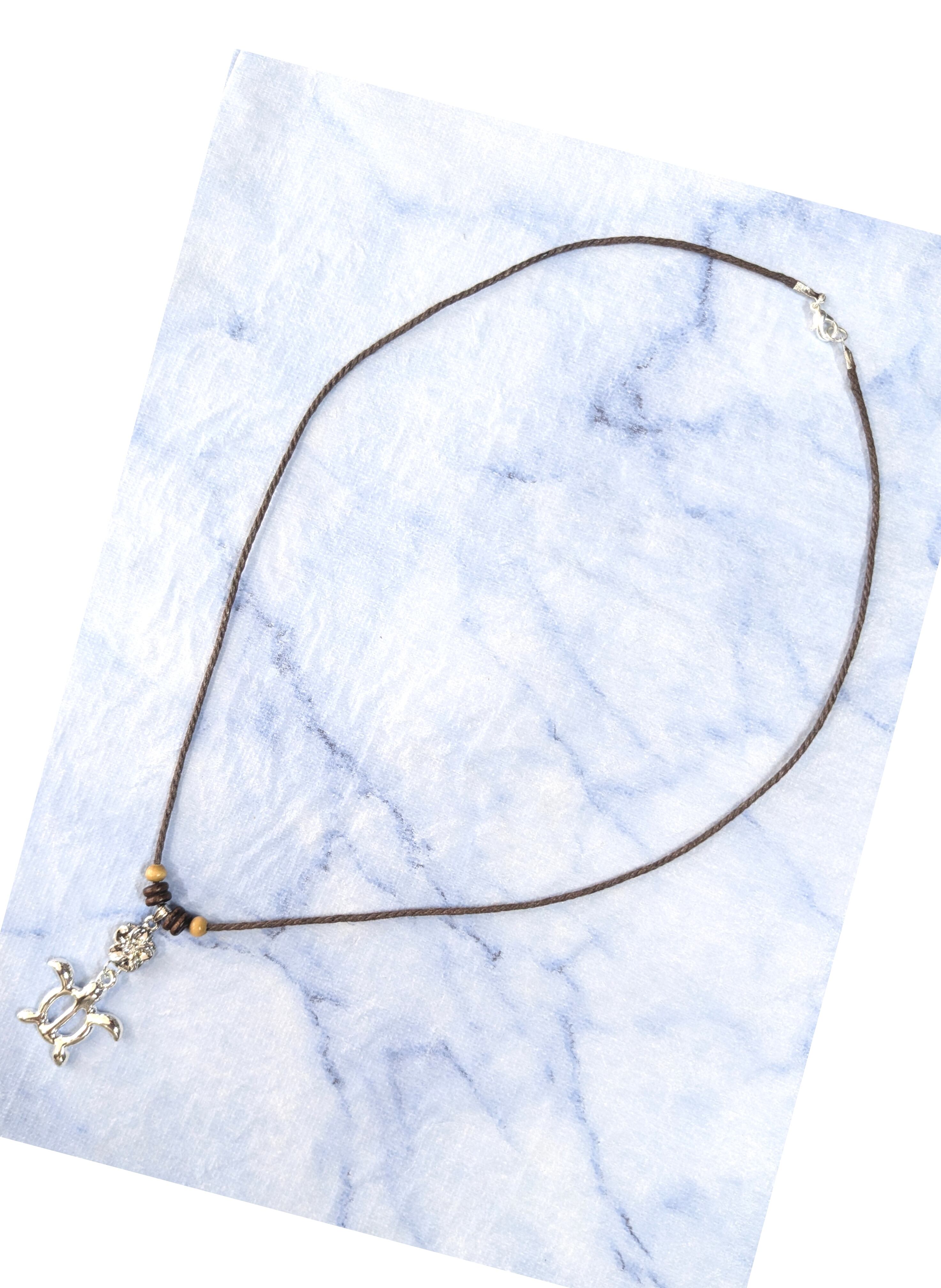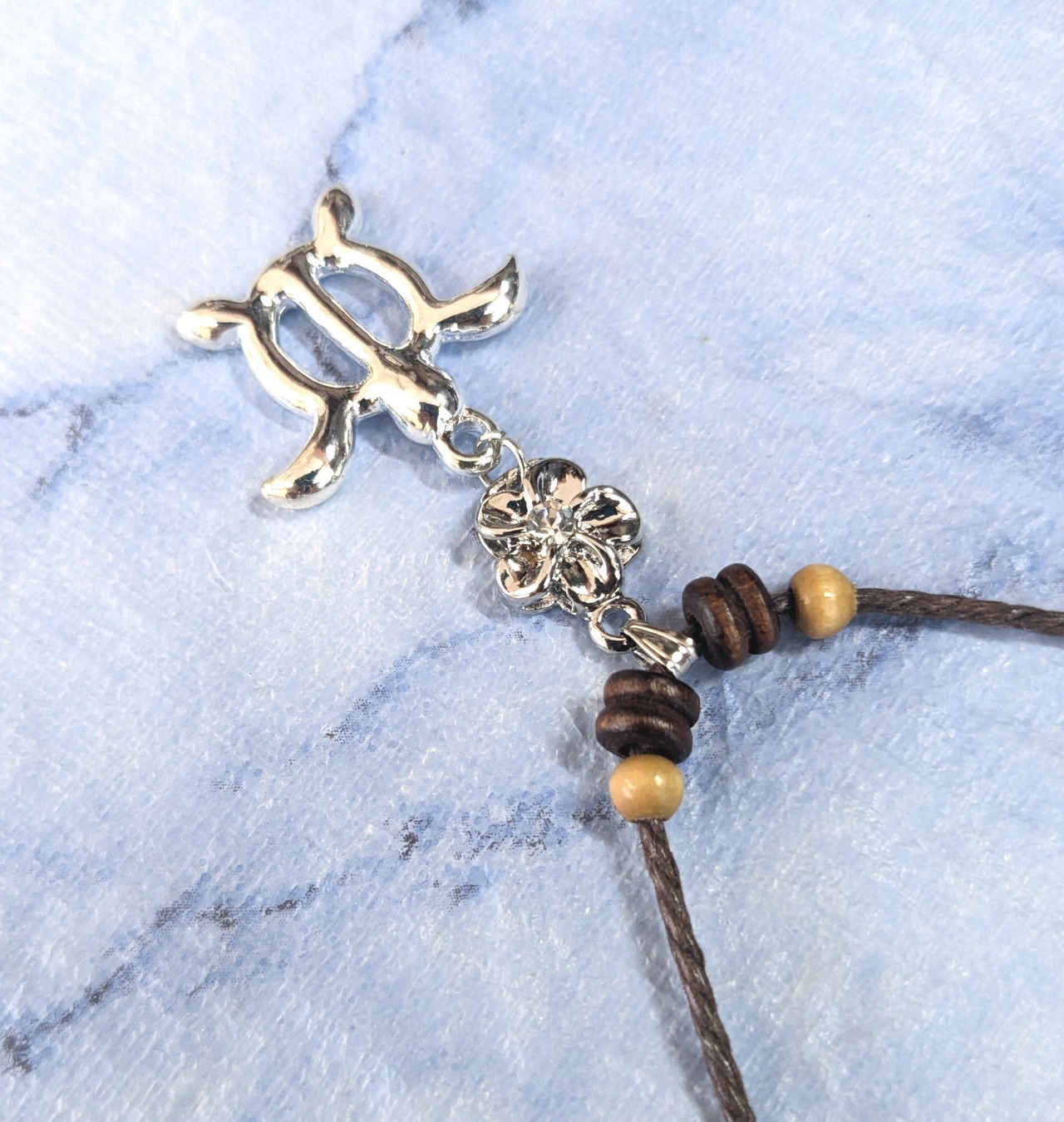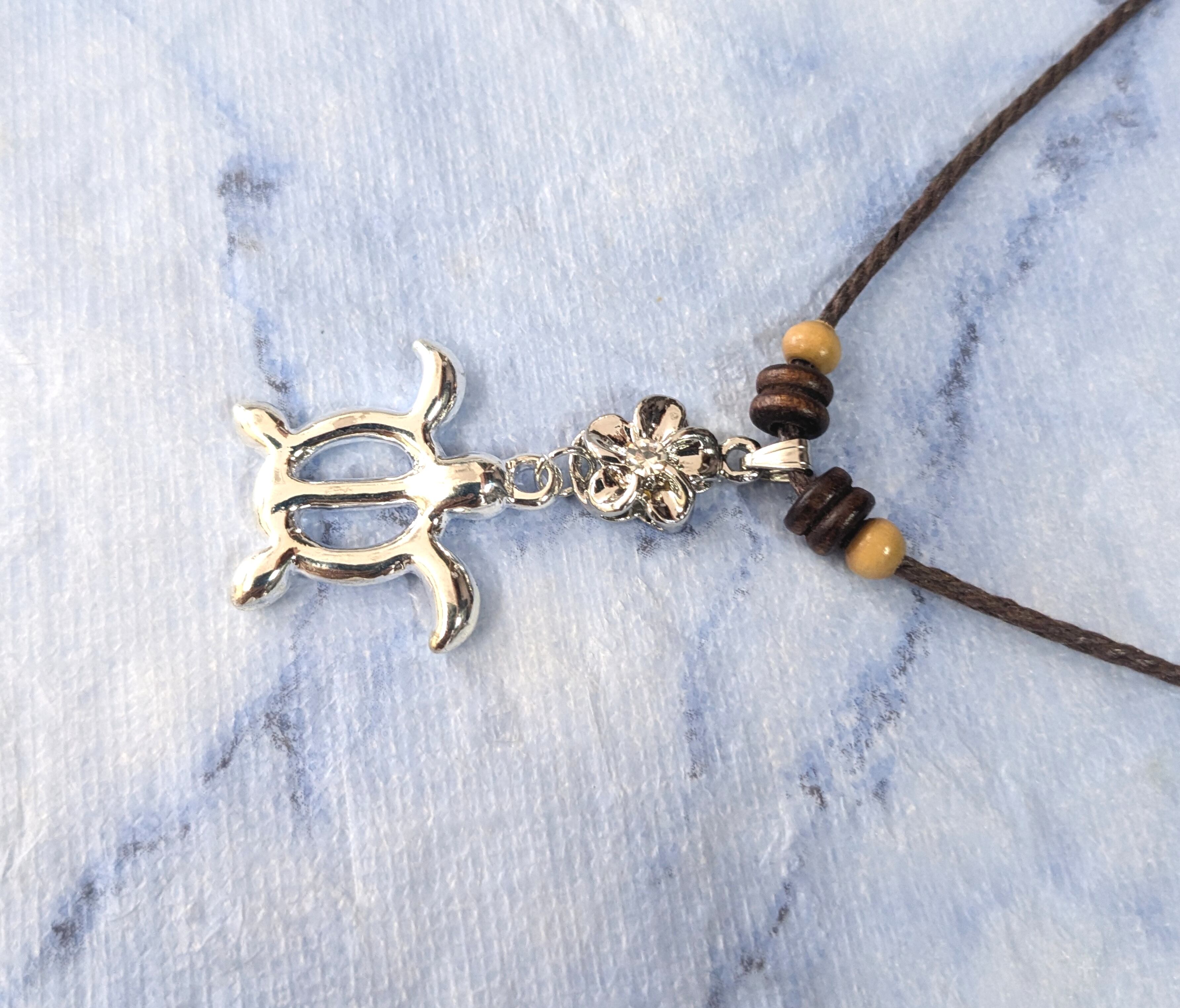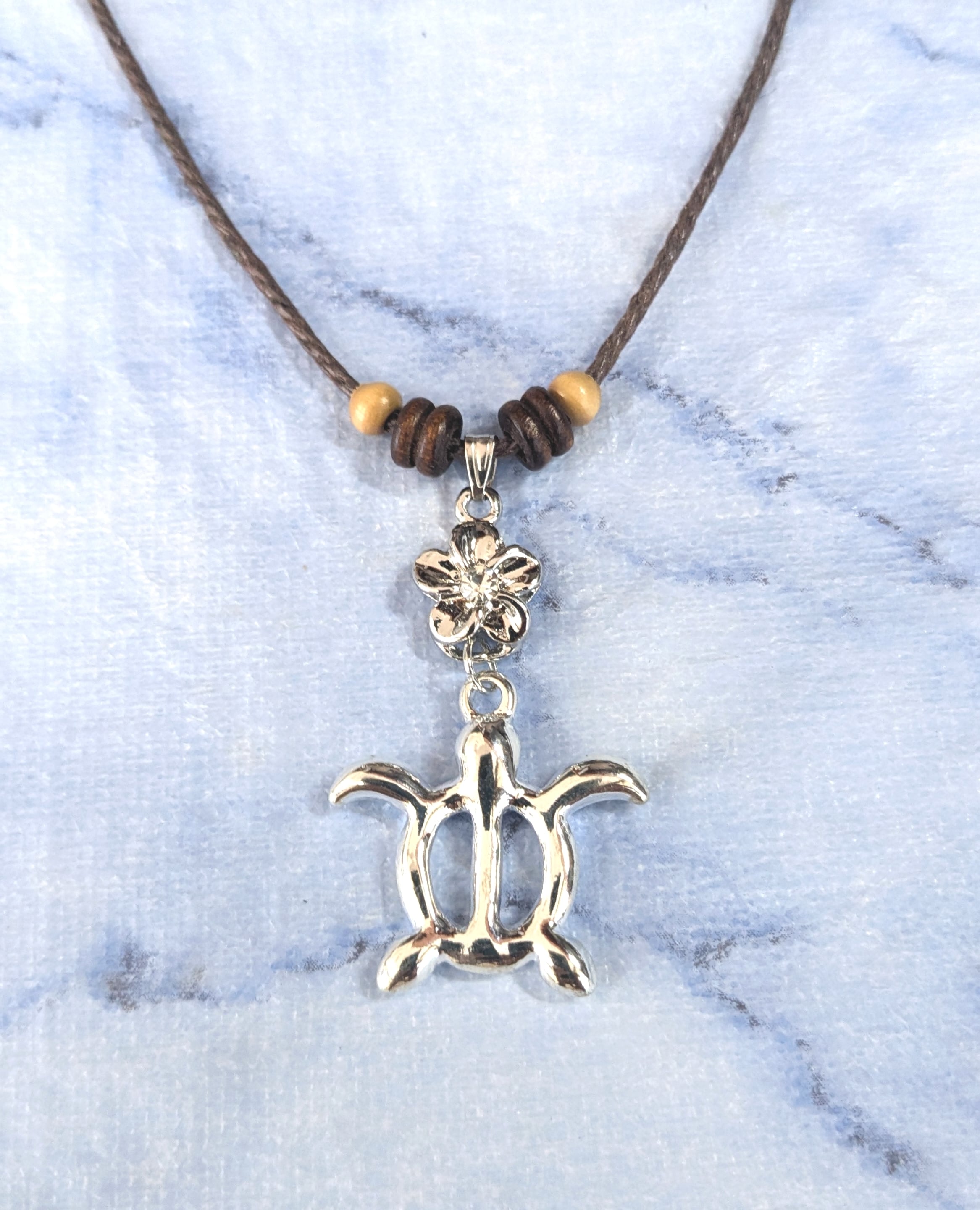 ハワイアンネックレス シルバーカラー ホヌ& プルメリア CZ付き H-194