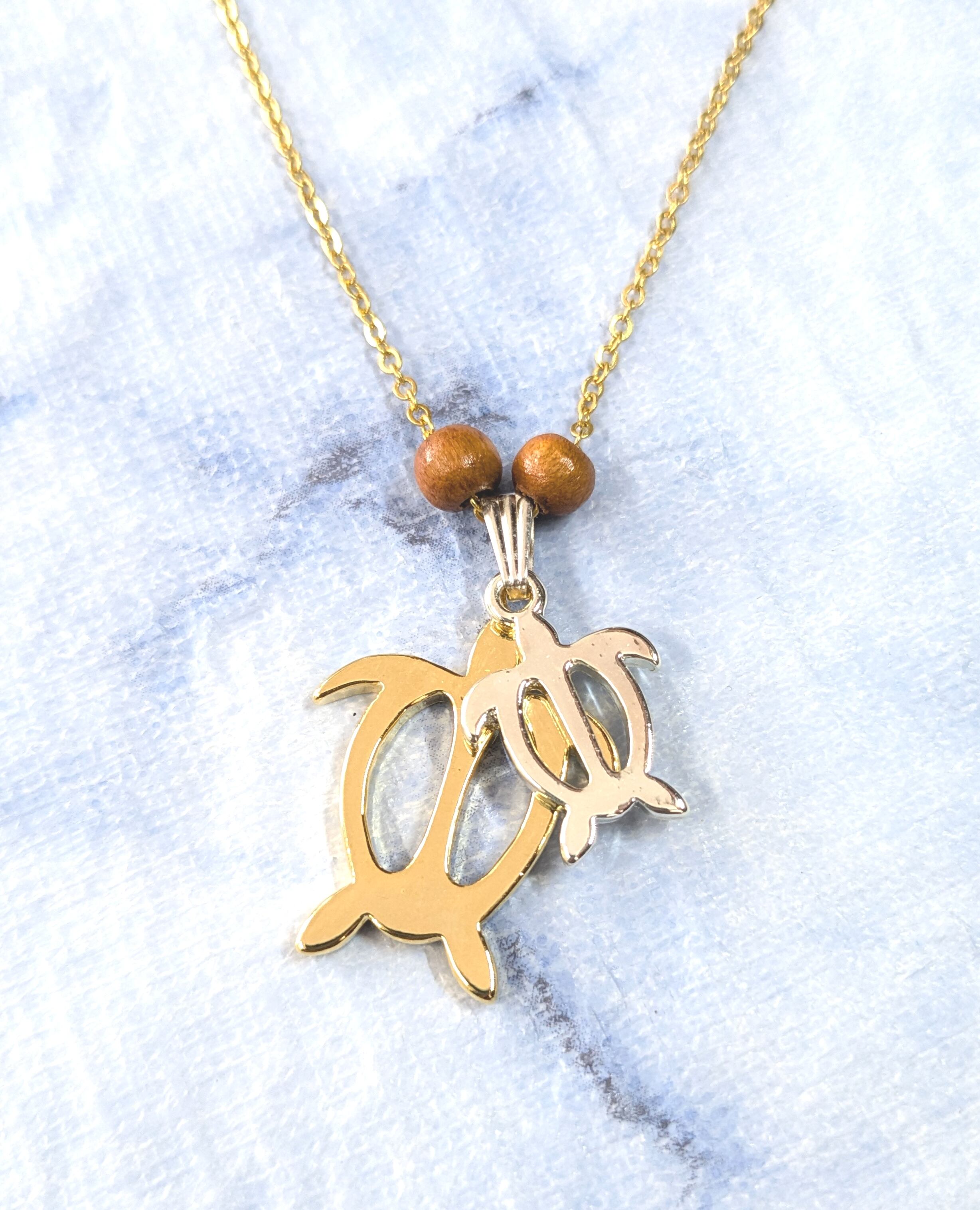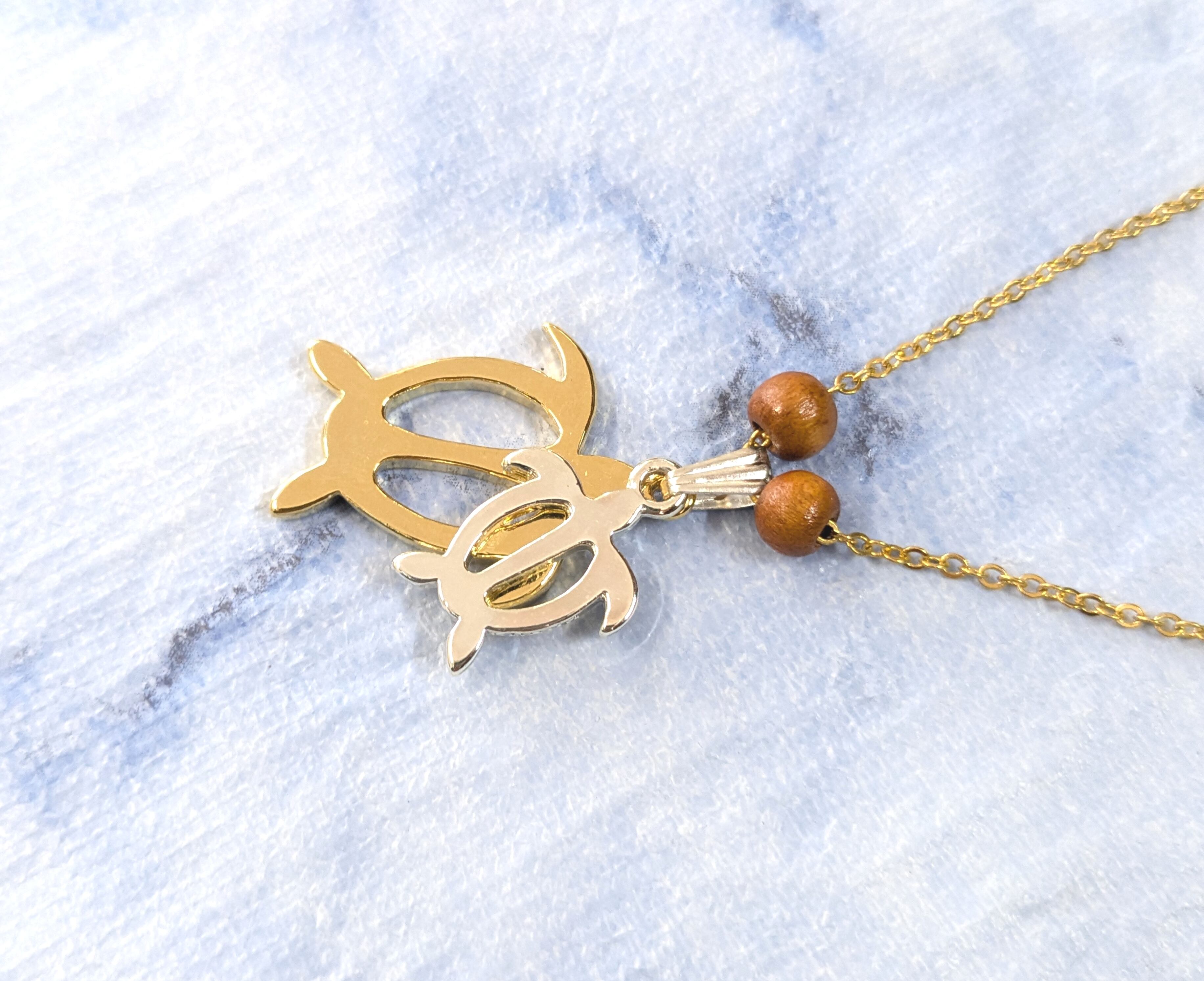 ハワイアンネックレス 2連ホヌチャーム シルバー& ゴールド H-195