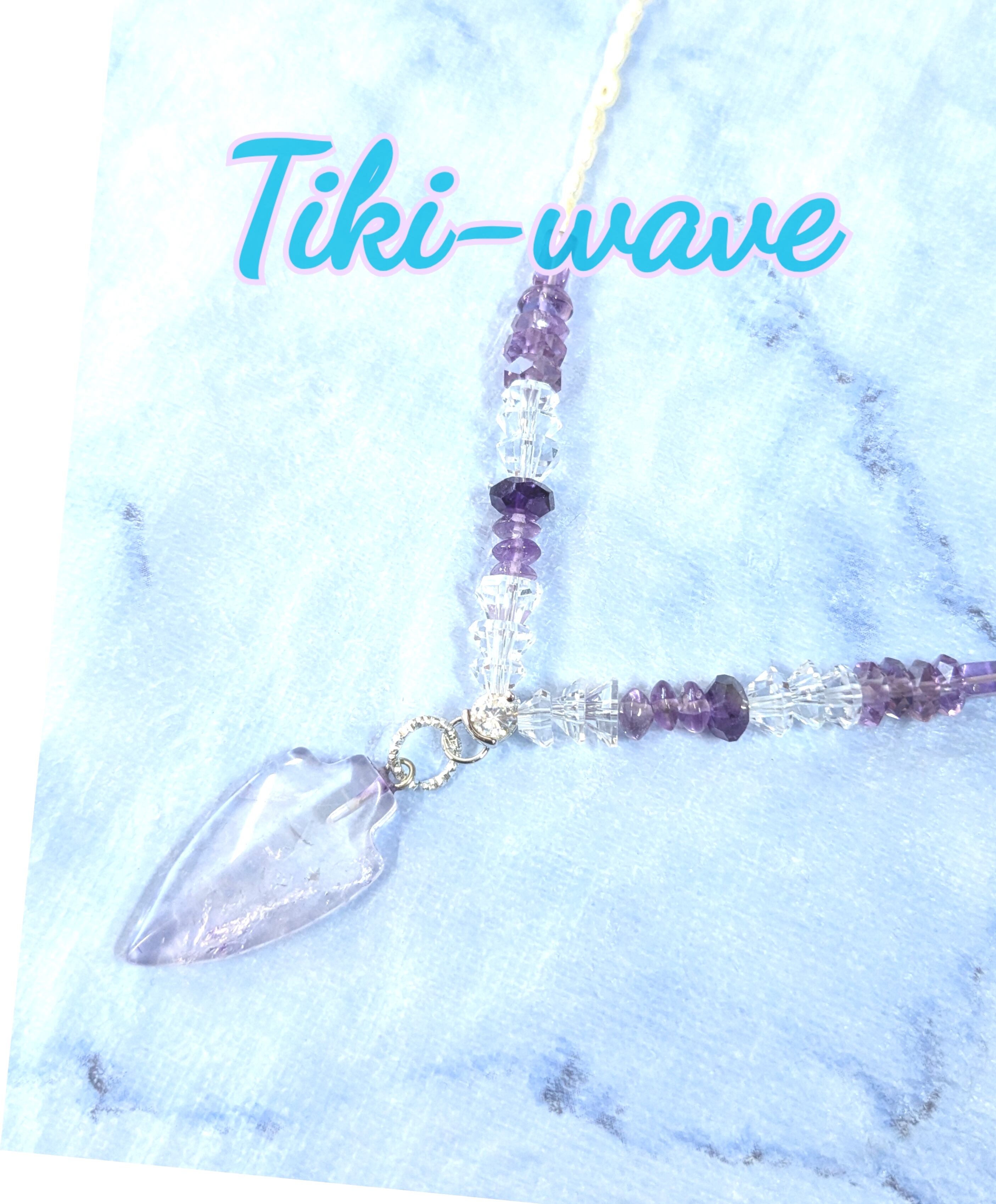 天然石ネックレス アメジスト アロー&クリスタル 淡水パールライン T-728