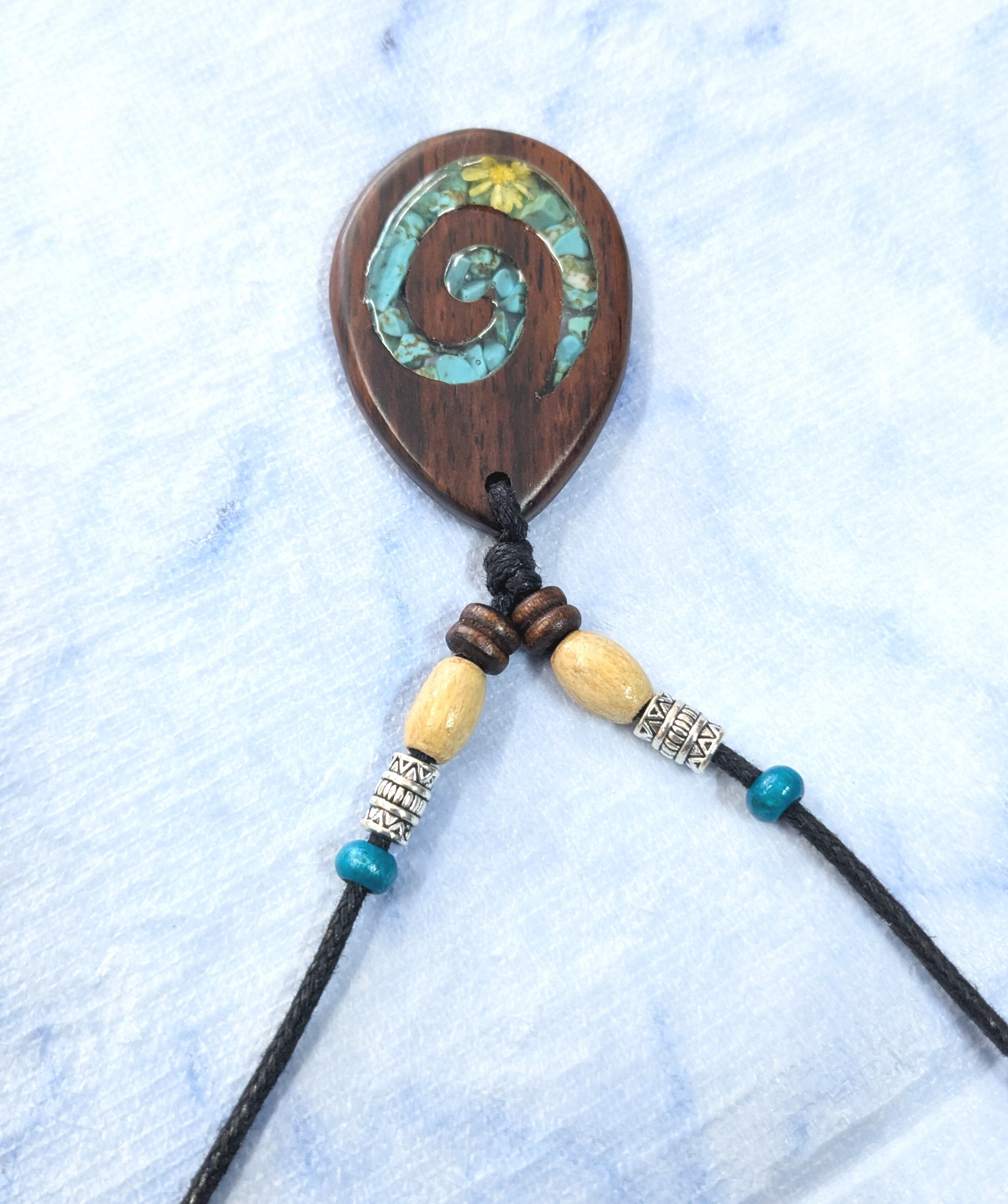 ハワイアンネックレス コアウッドフィッシュフック& さざれターコイズ Y-810