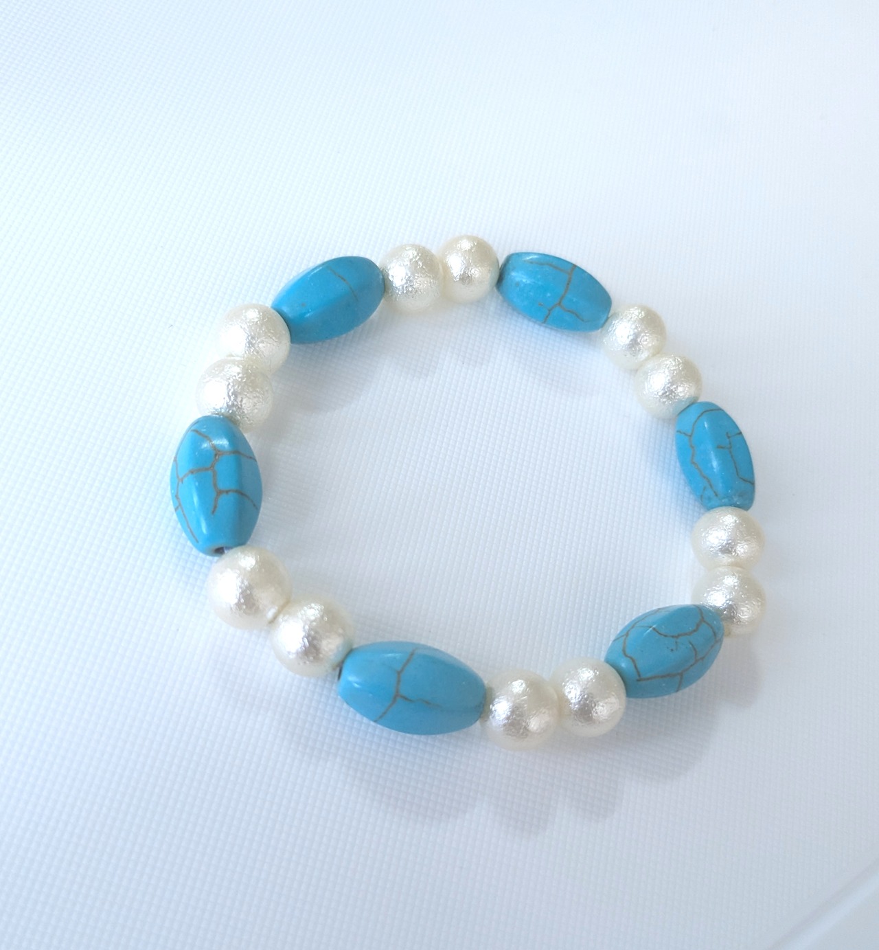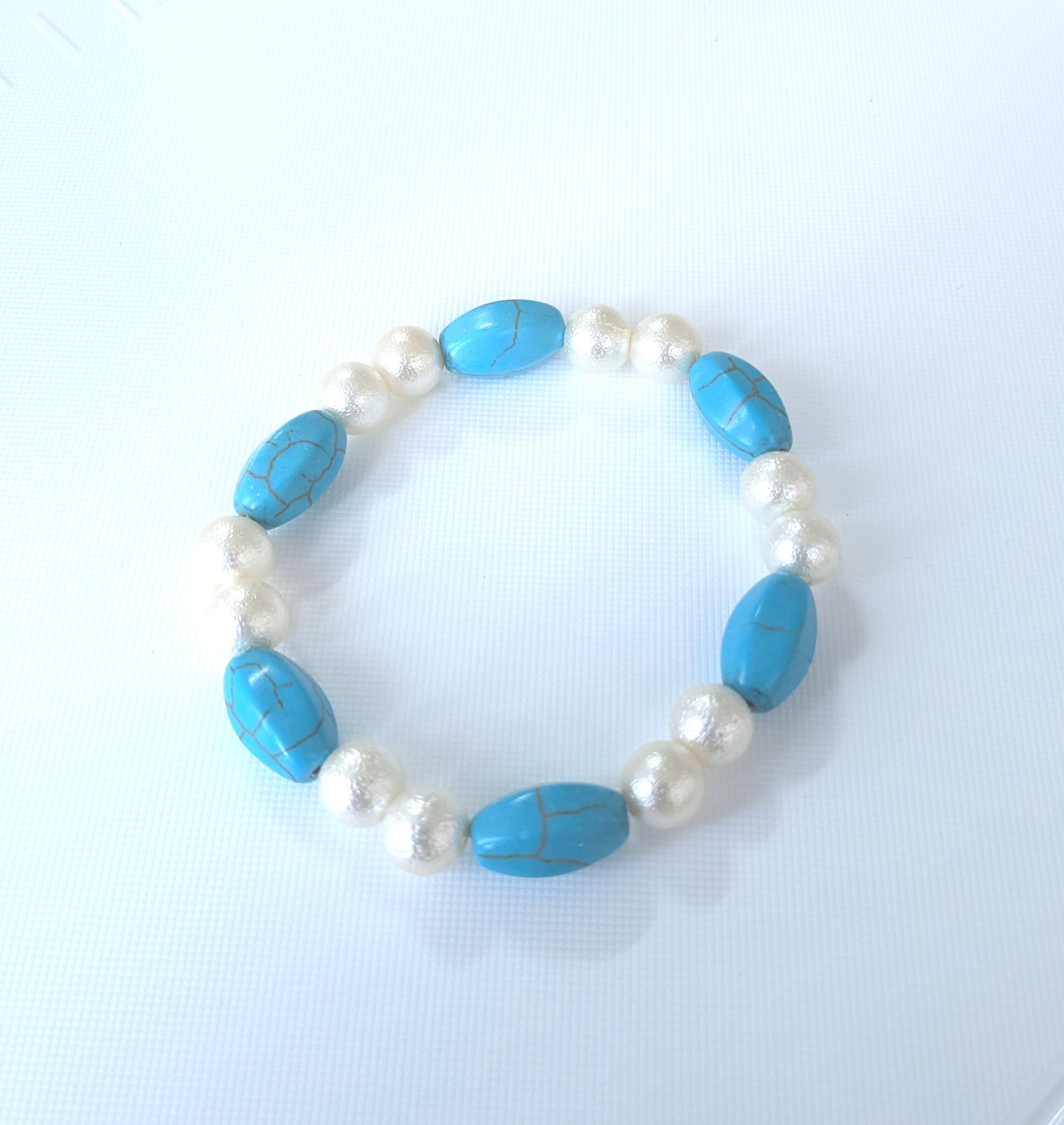 レディースブレス ブルーターコイズ& ホワイトスノーパール M-524