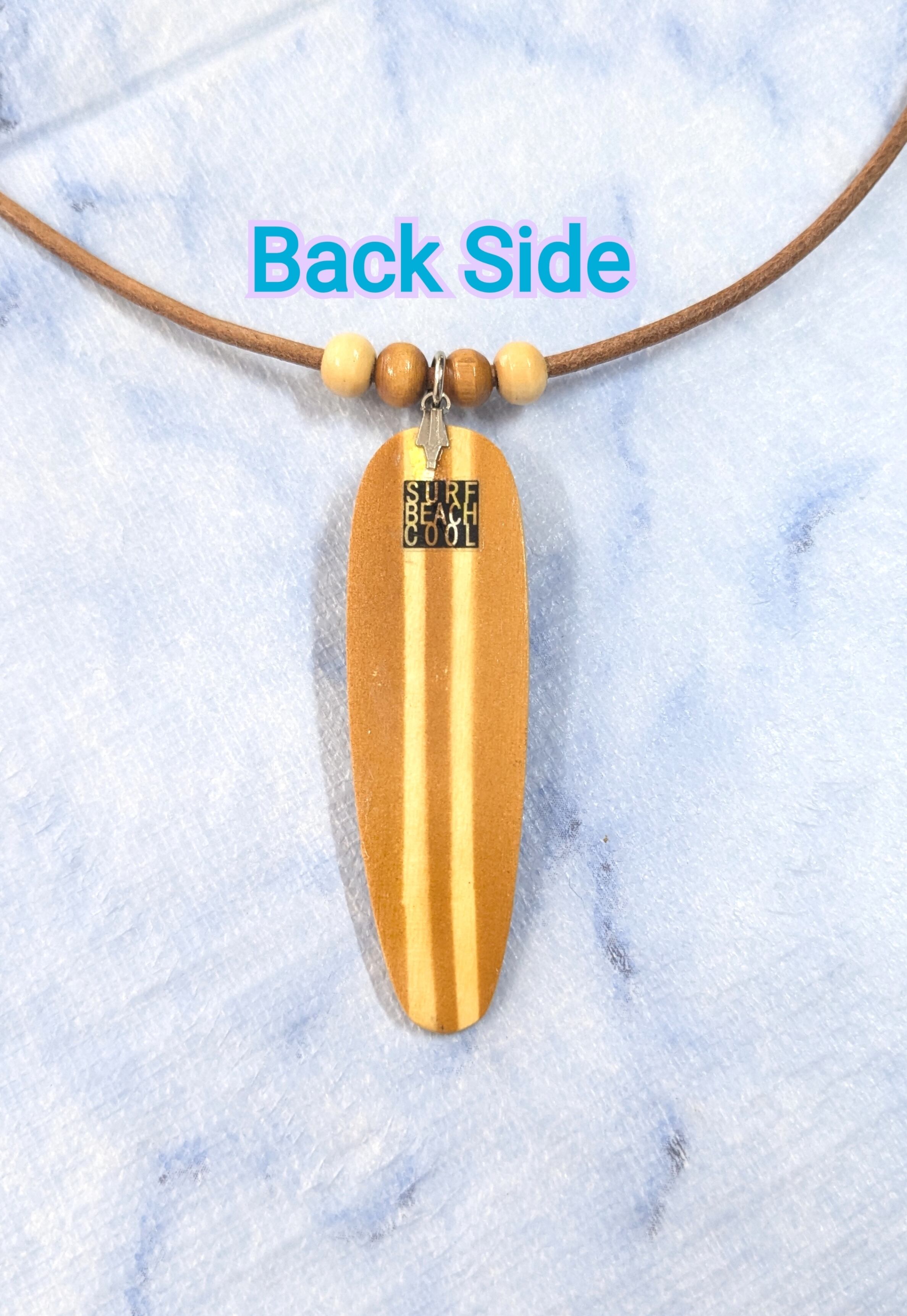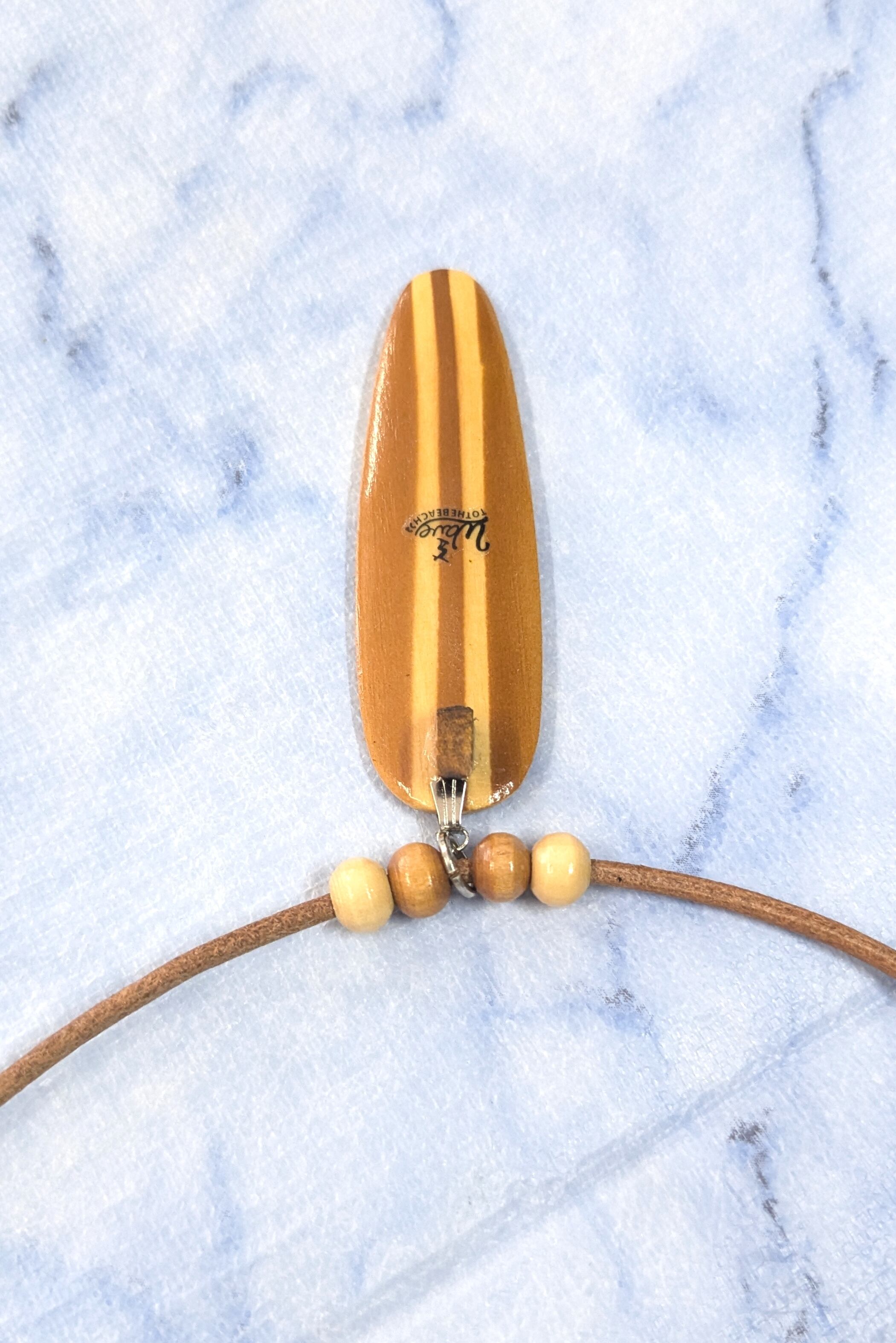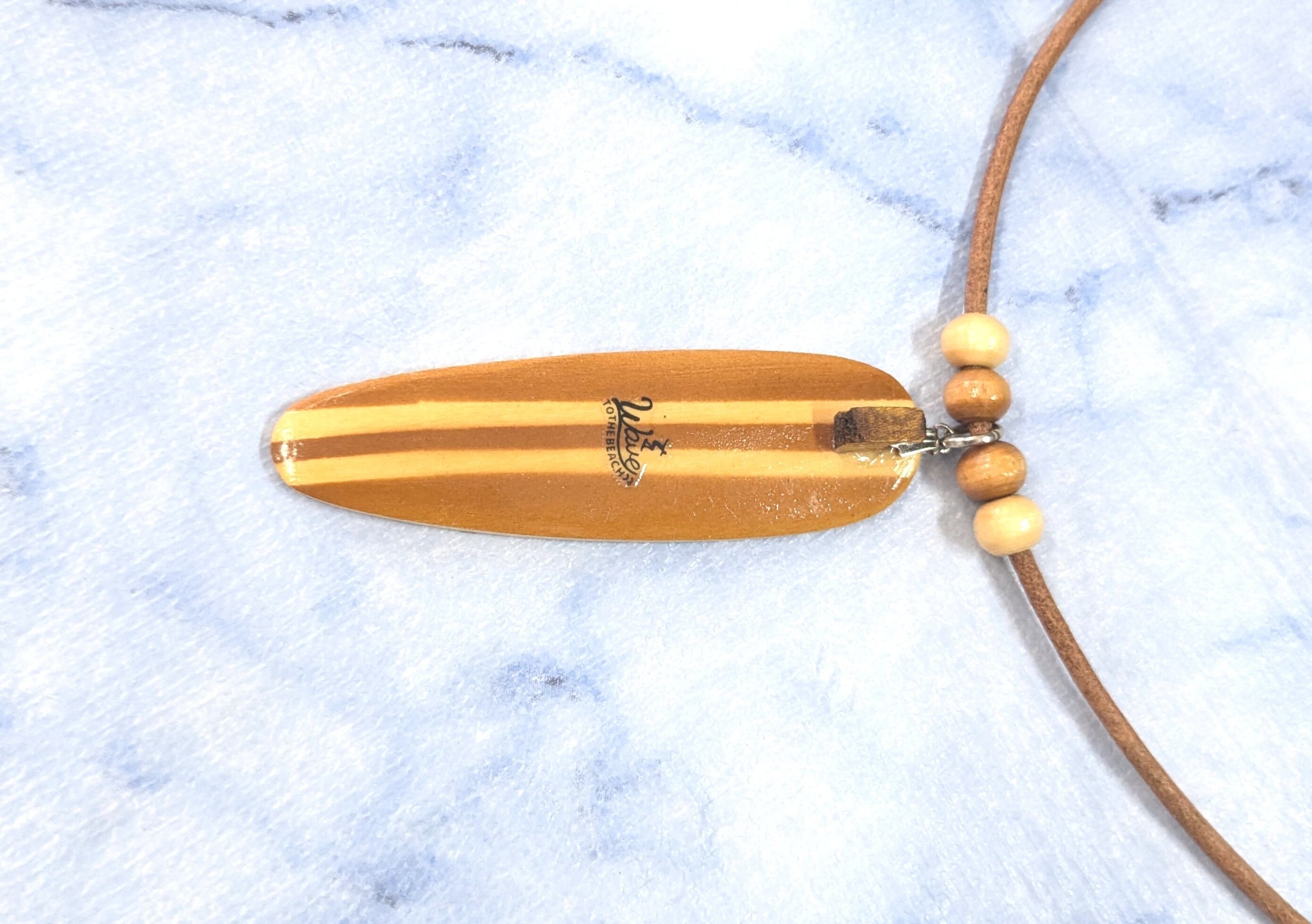 ハワイアンネックレス 天然ハワイウッド ブラウンストライプカラー サーフボード B-367