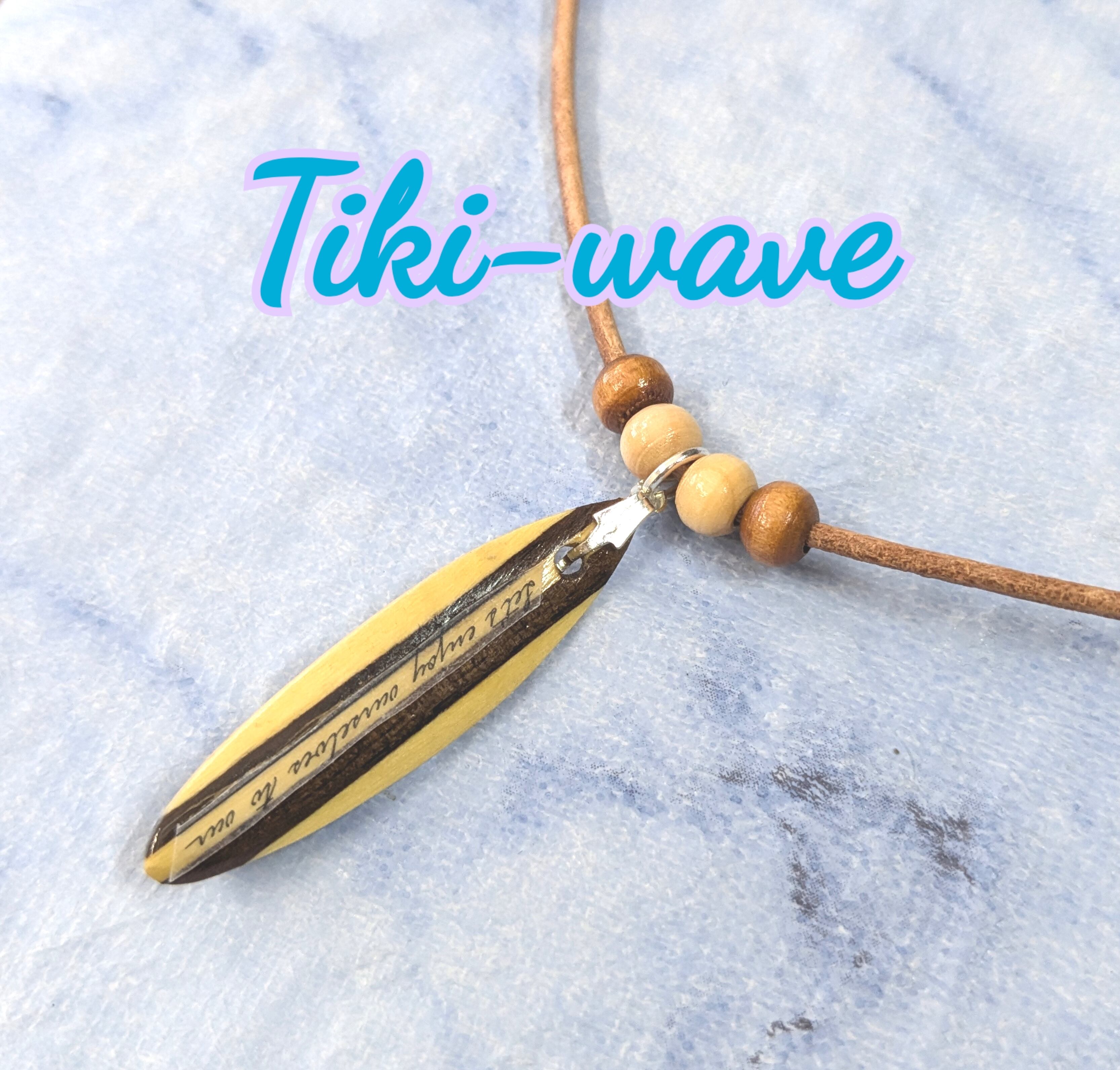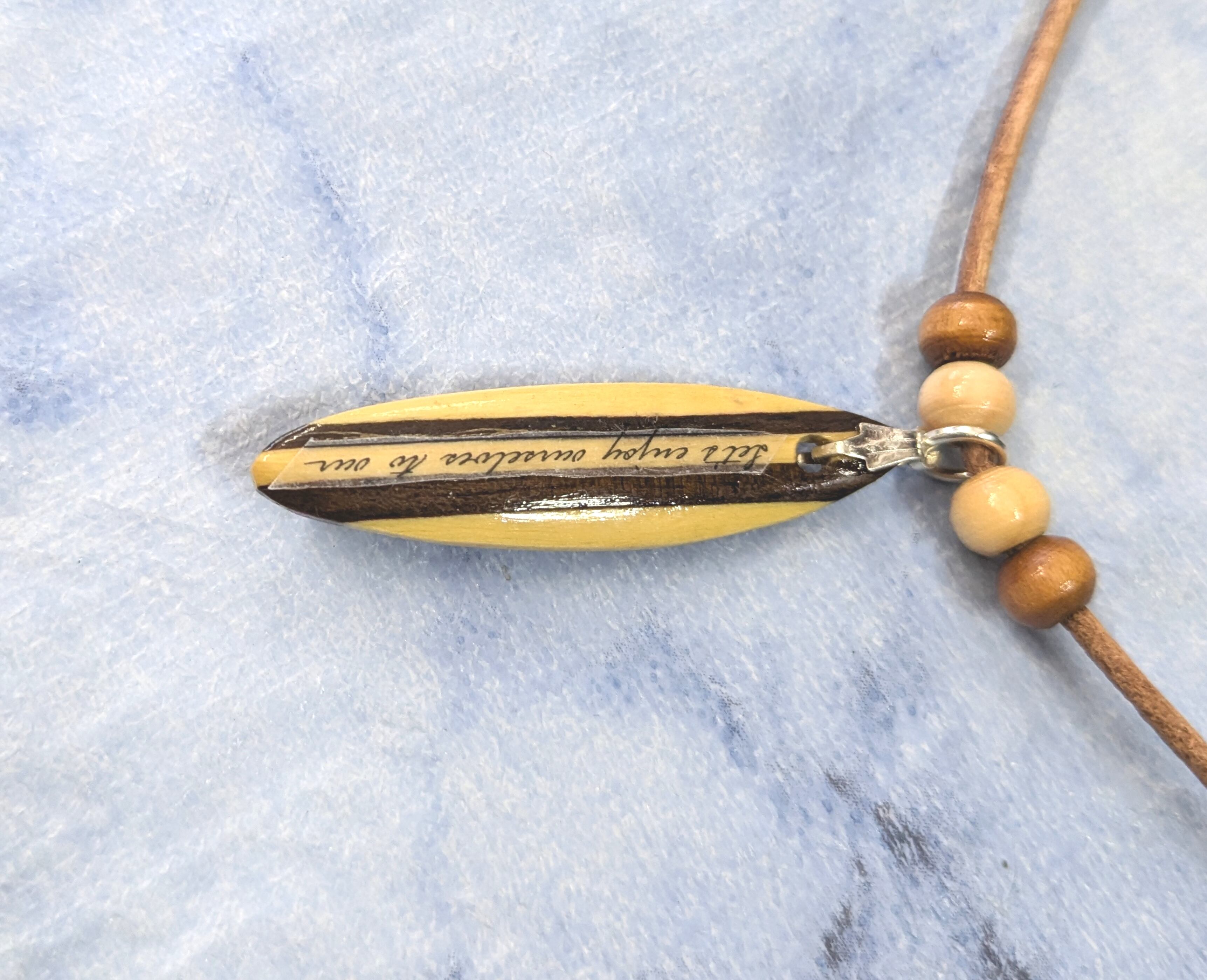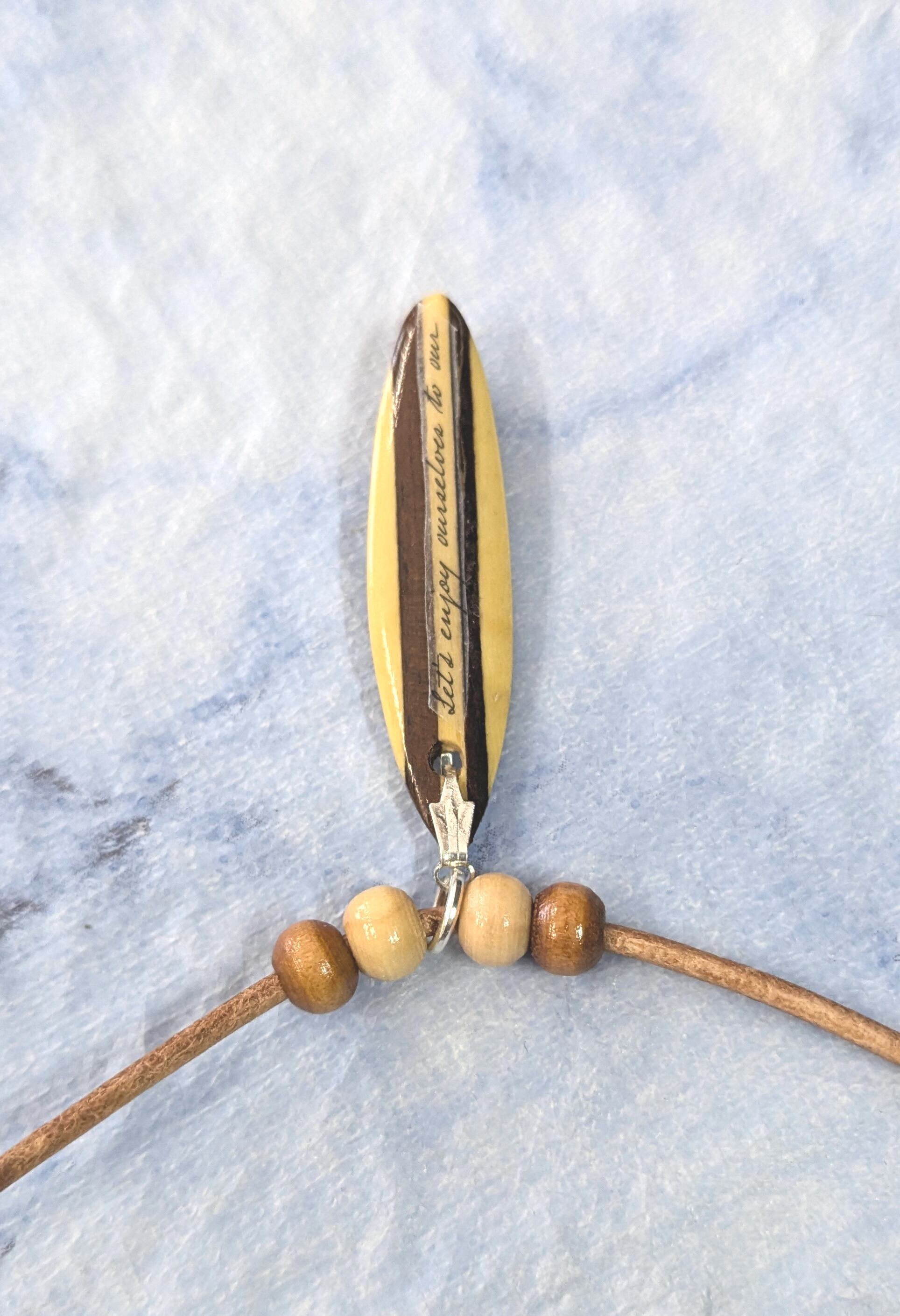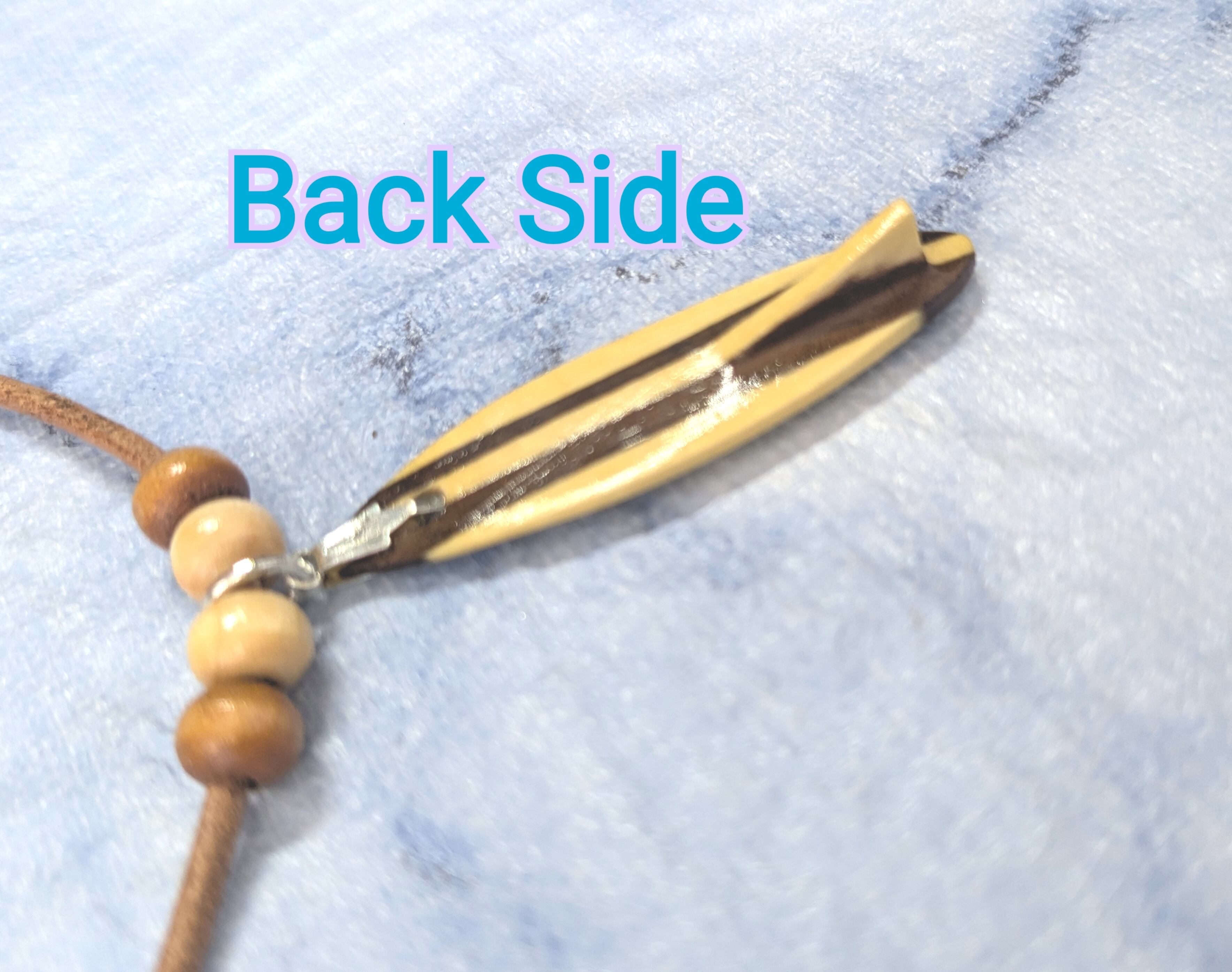 ハワイアンネックレス 天然ハワイウッド ブラウン 革紐サーフボード B-368