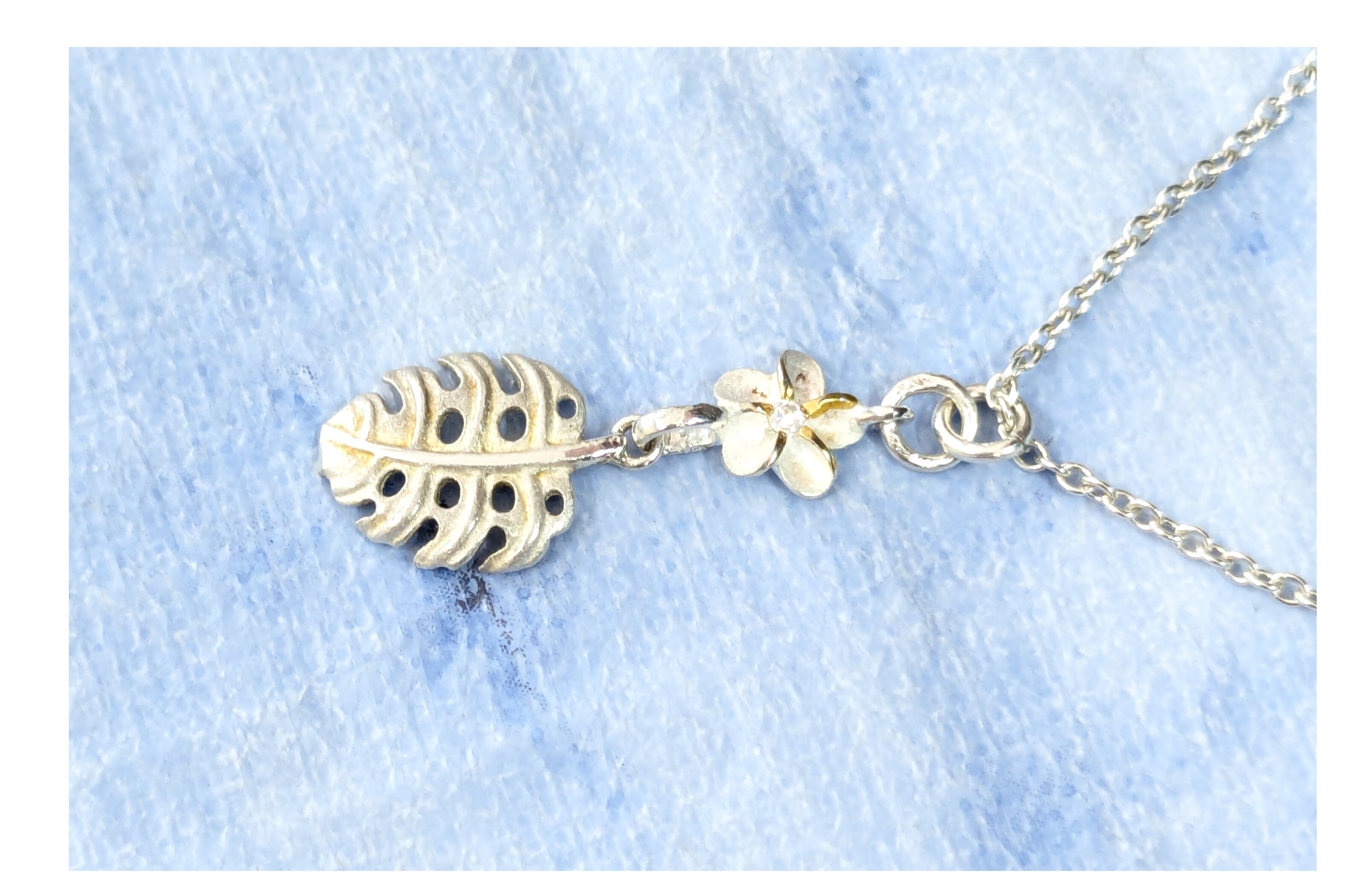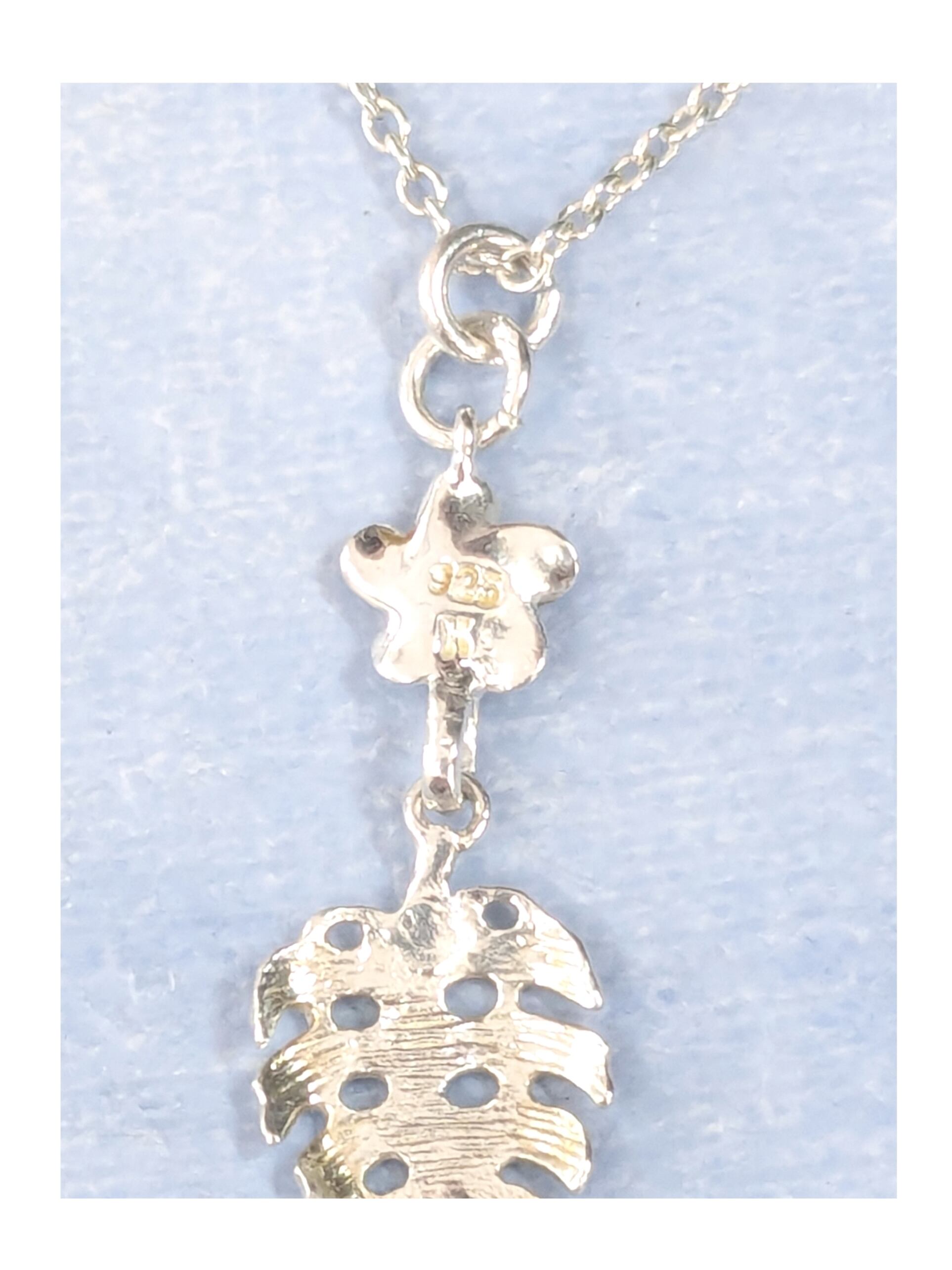 ハワイアンネックレス シルバー925 モンステラ& プルメリア M-535