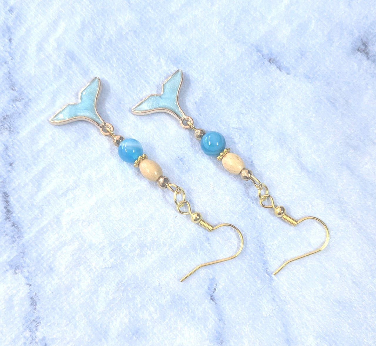 ハワイアンピアス アクアブルーカラー&ゴールド ホエールテール A-211