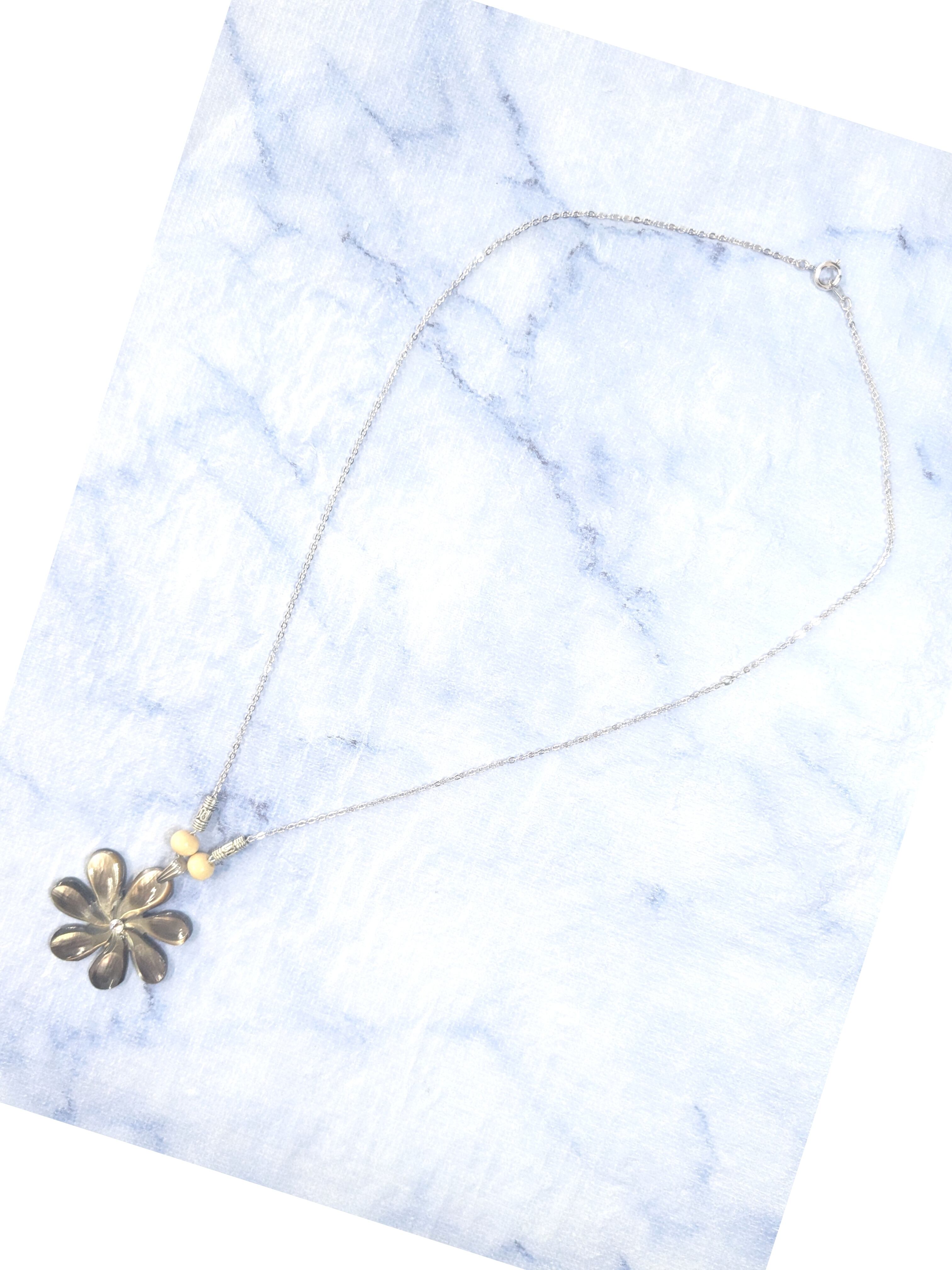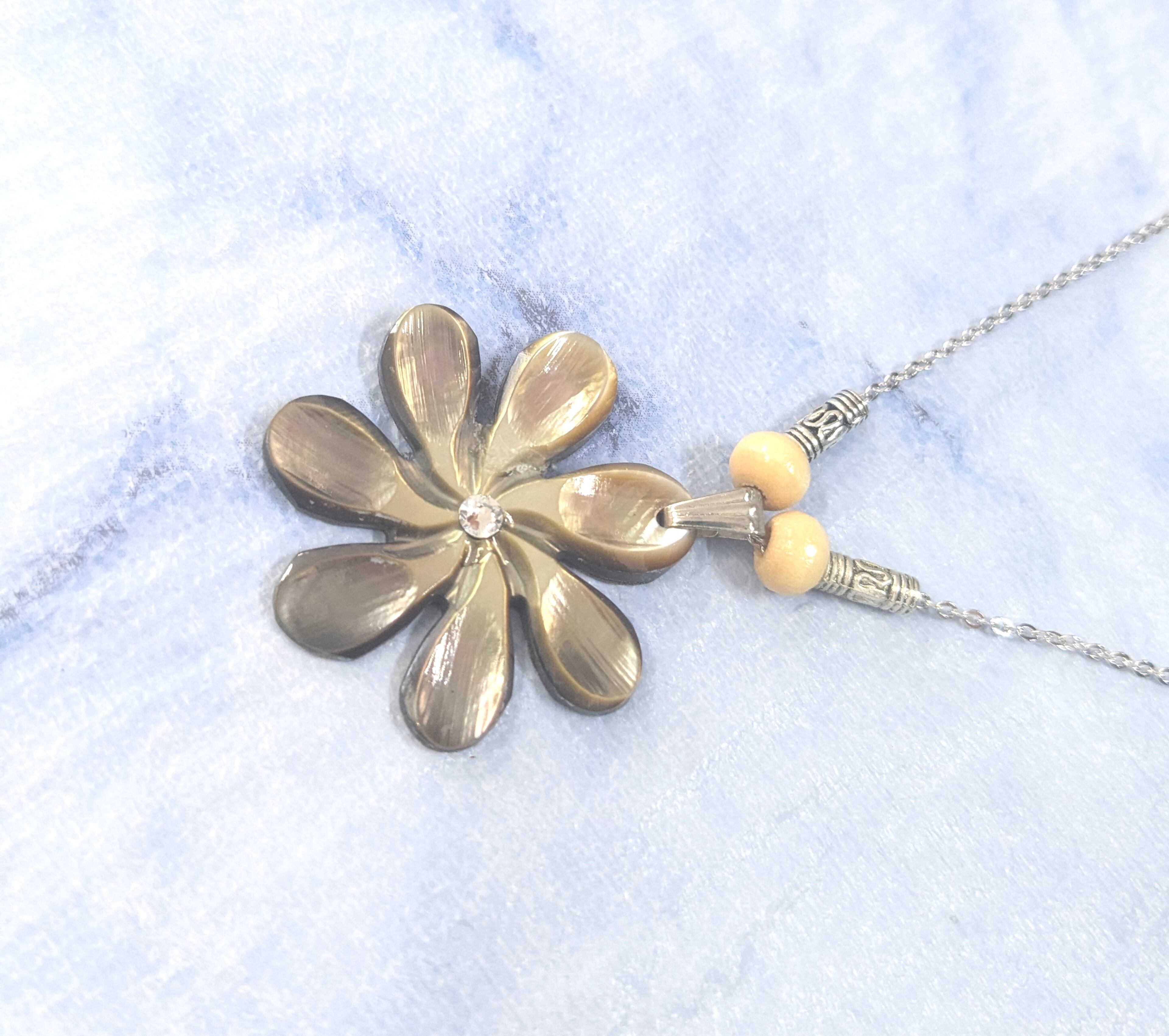 ハワイアンネックレス 黒蝶貝 天然シェル ティアレ& クリアスワロ粒 T-215