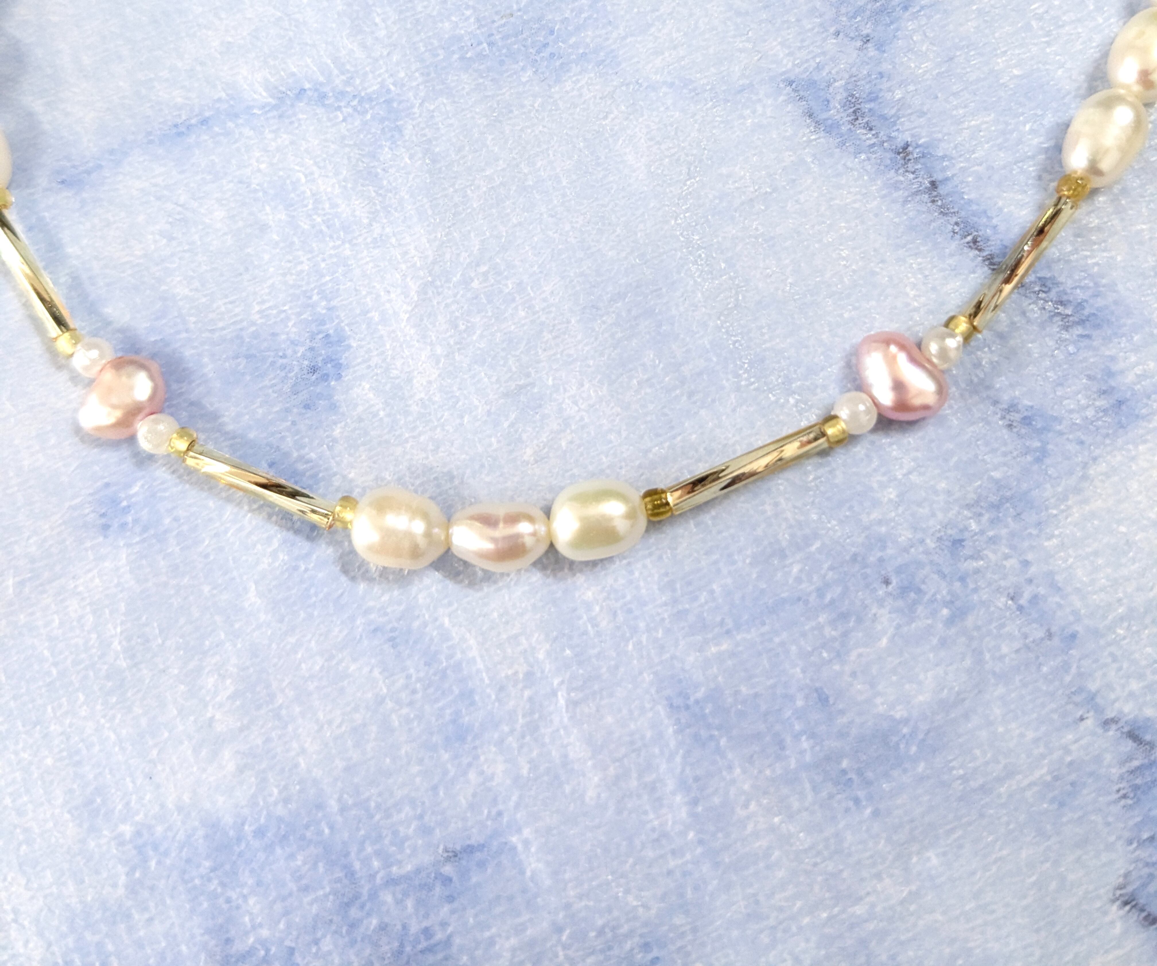 ハワイアンネックレス ホワイトハートシェル&淡水パール ホワイト&ピンク S-385