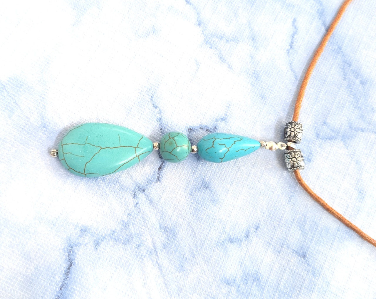 メンズネックレス ブルーターコイズ 3連 ドロップ&アロー T-930