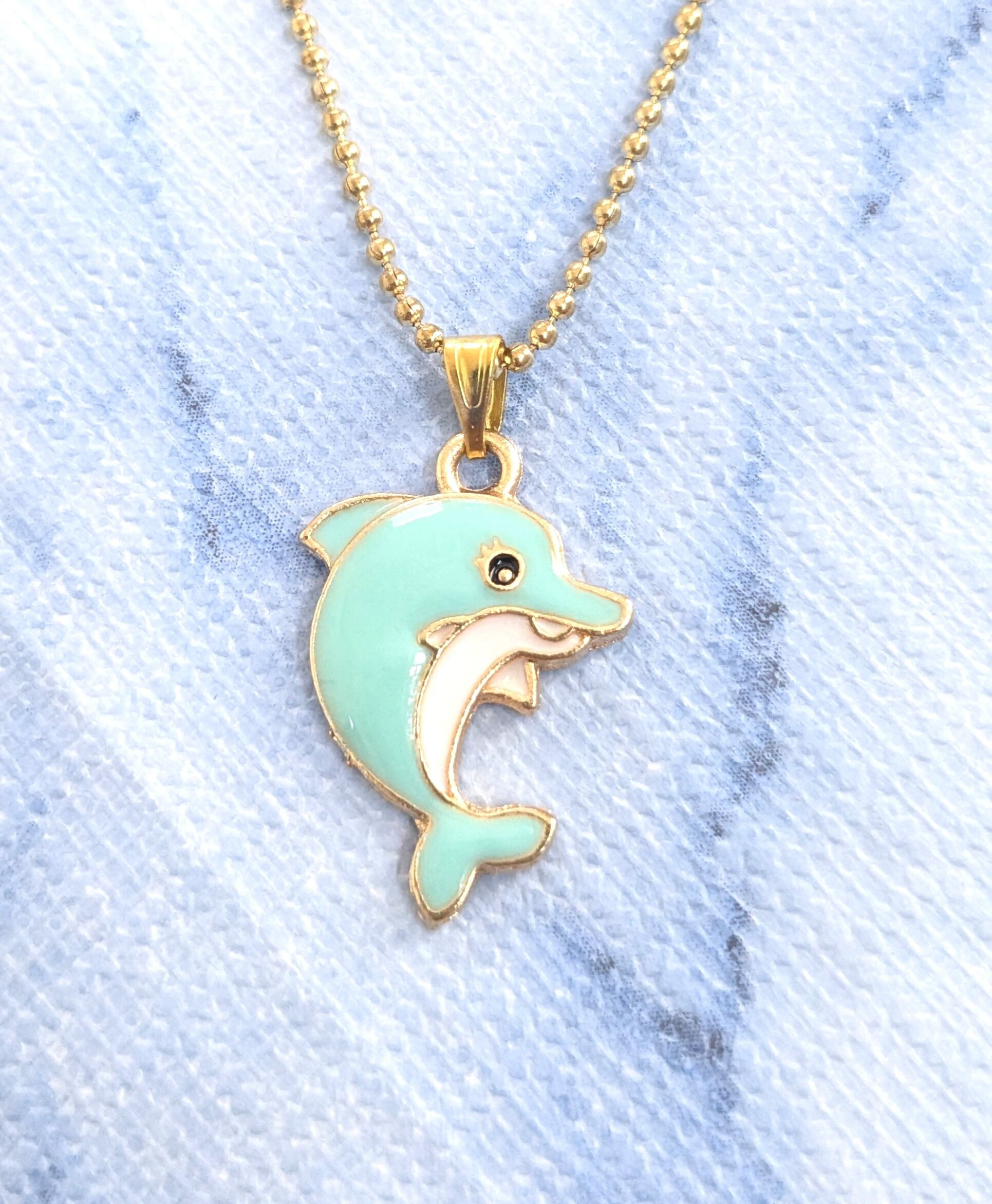 ハワイアンネックレス ミントカラー & ゴールド ドルフィン D-246