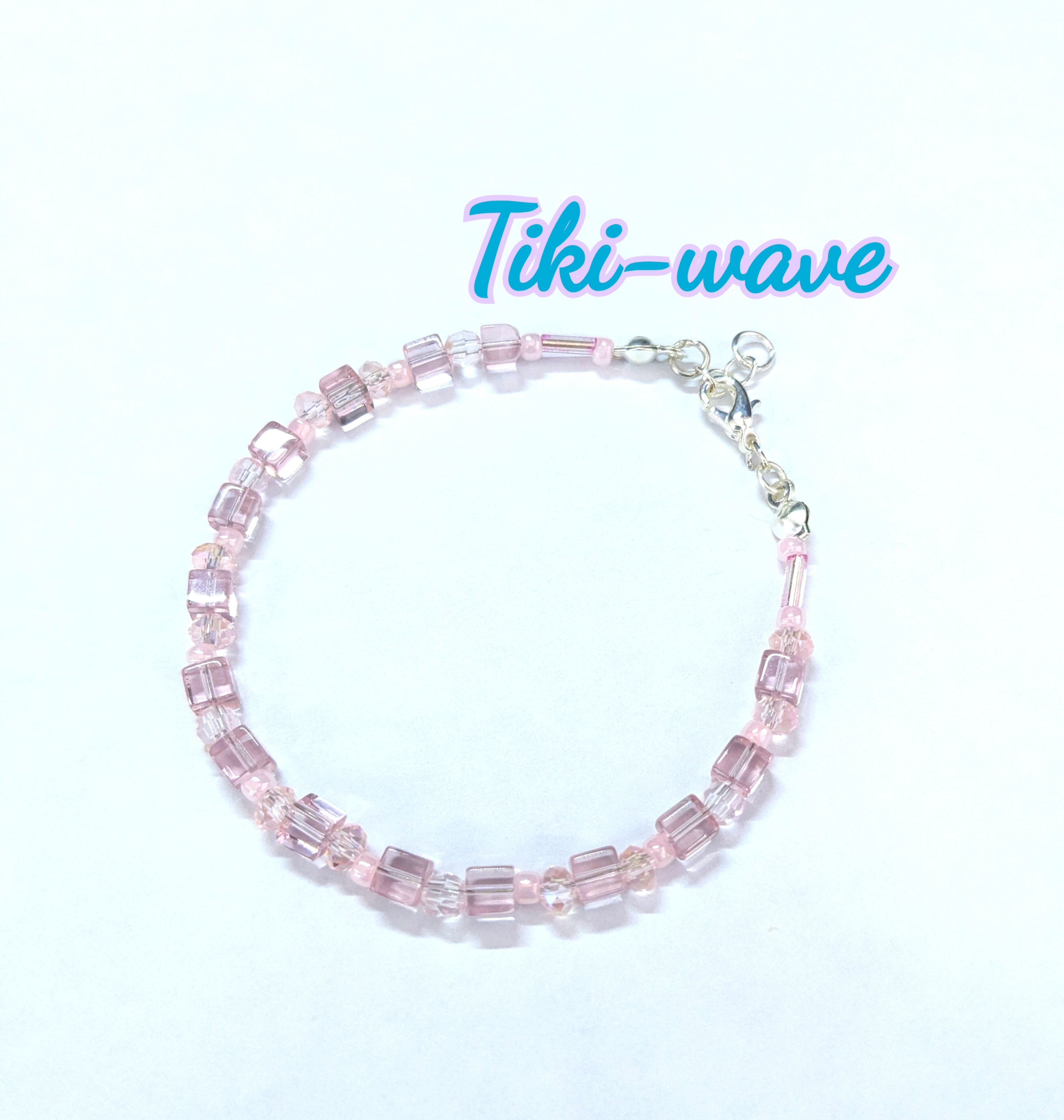 レディースブレス ライトピンクカラー キューブ クリスタル&クォーツ M-526