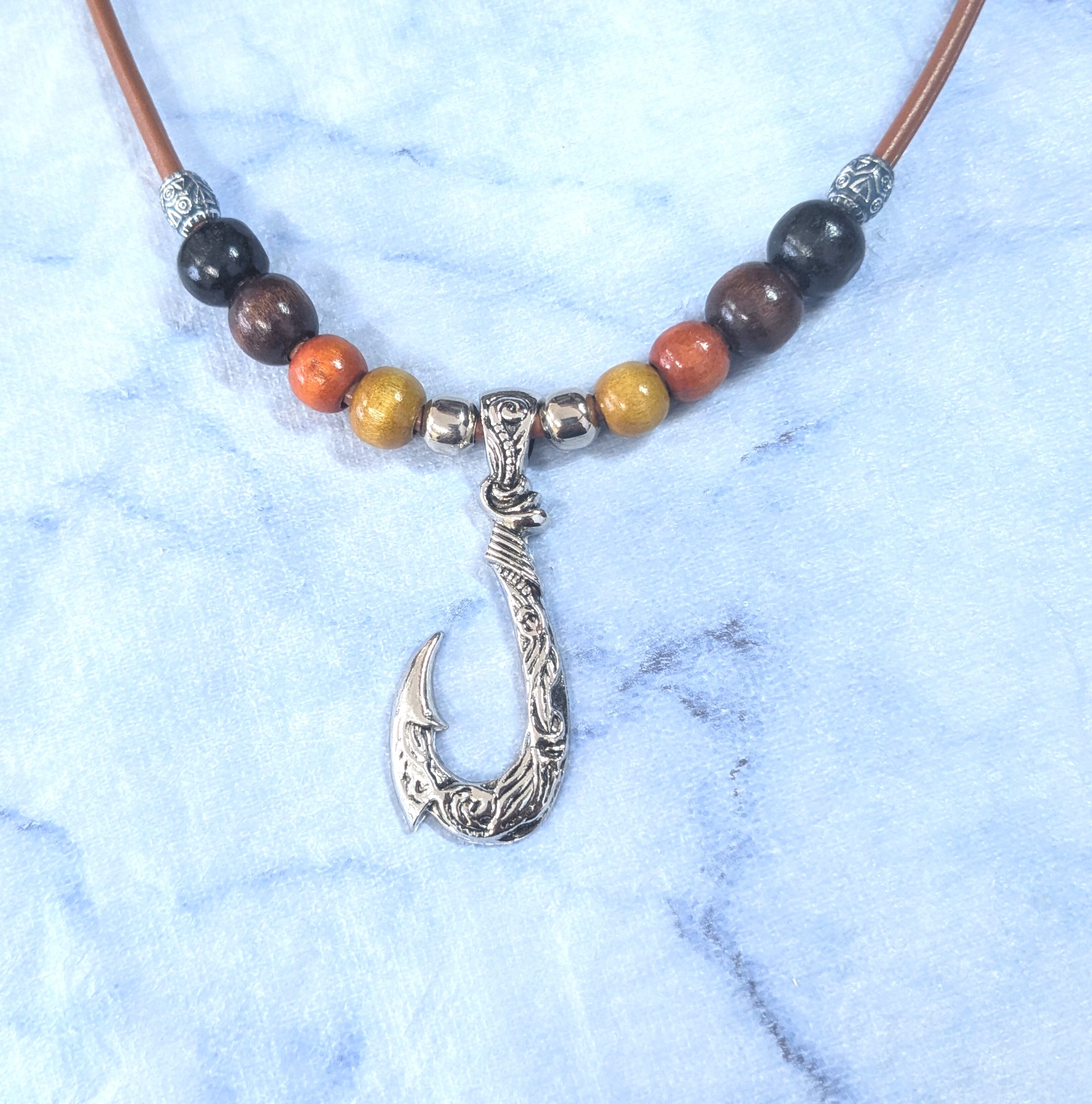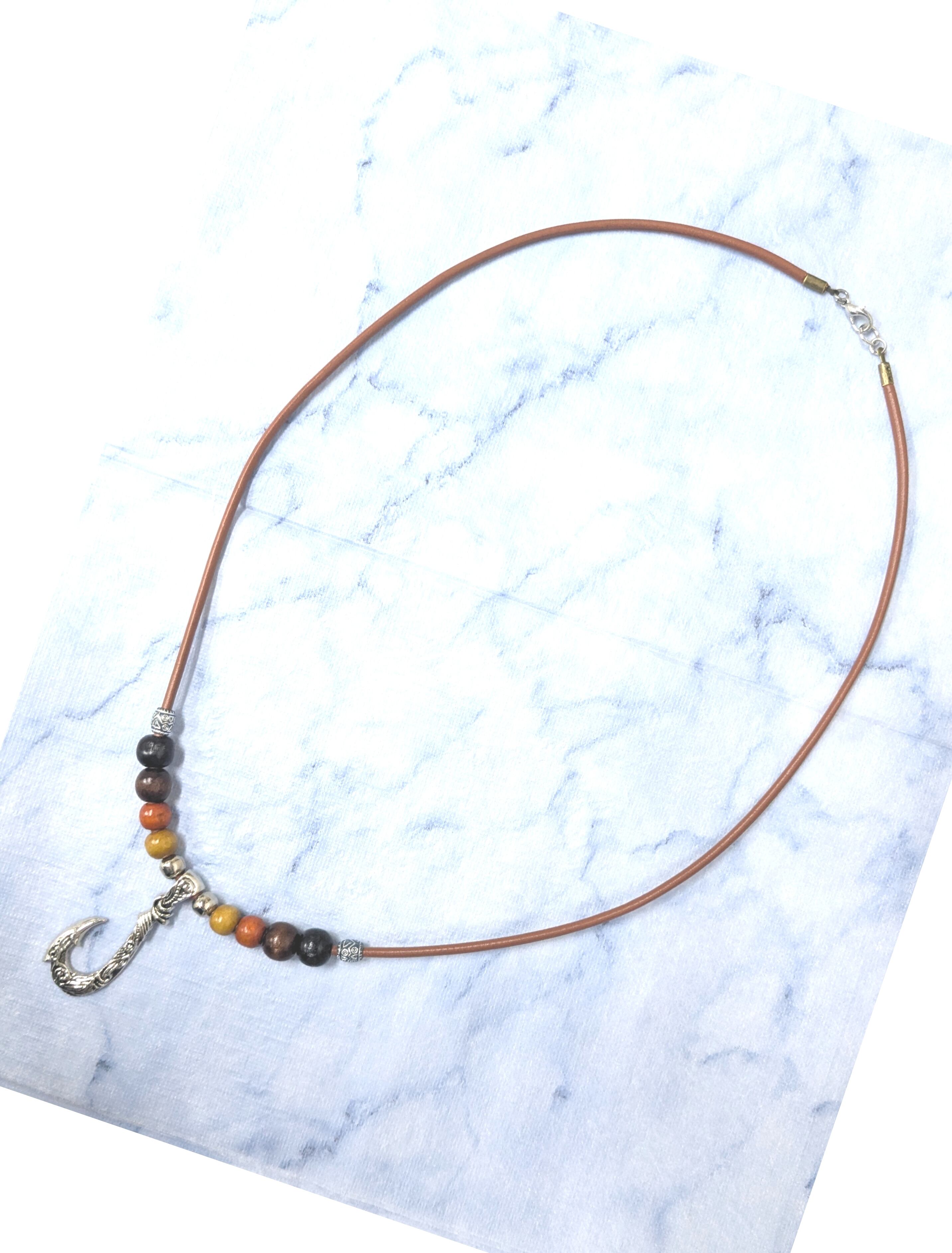 ハワイアンネックレス シルバーカービングデザイン フィッシュフック&ウッドパーツ付き F-118