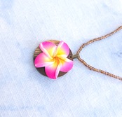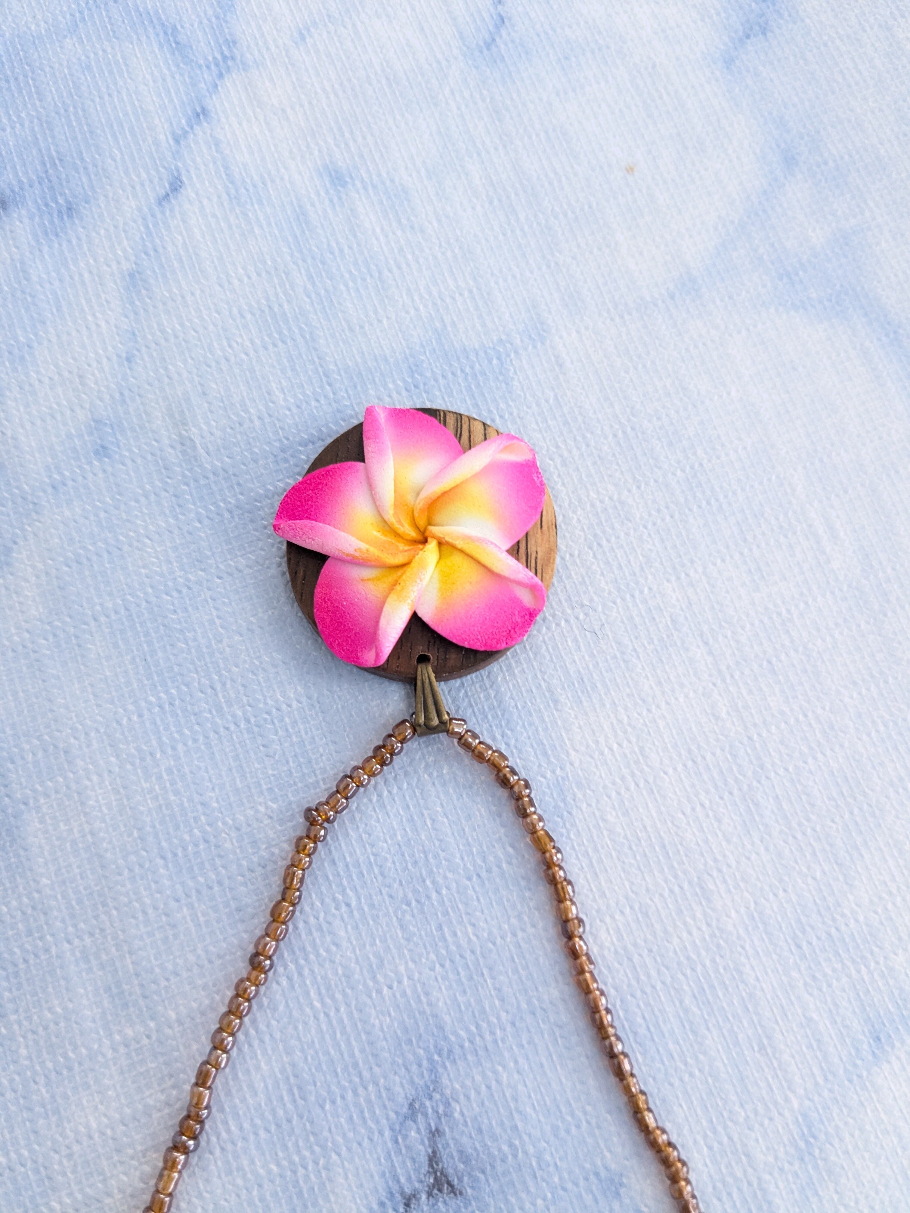 ハワイアンネックレス ピンクカラープルメリア& ナチュラルウッド P-670