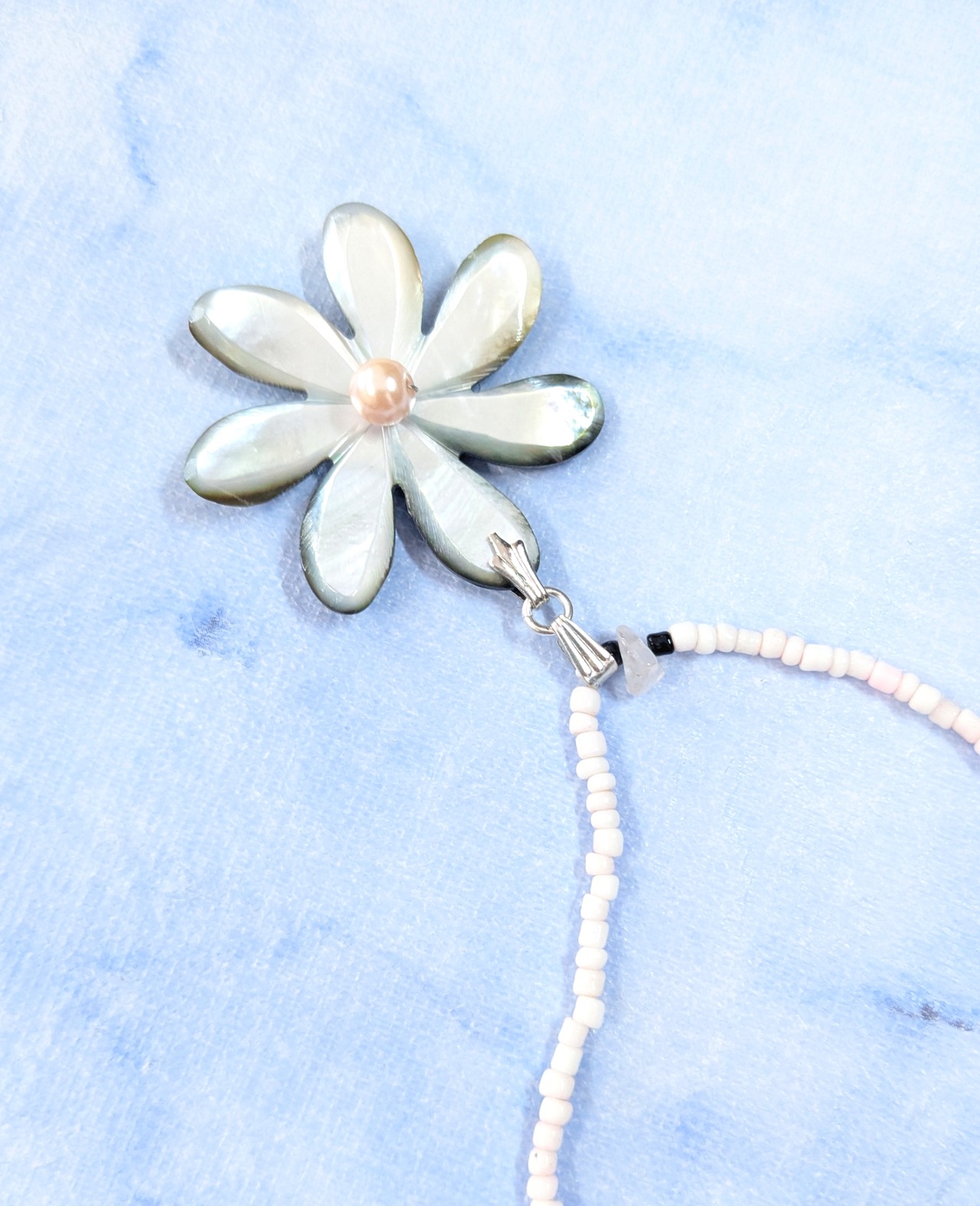 ハワイアンネックレス 黒蝶貝 天然シェル ティアレ& ピンクパール T-216