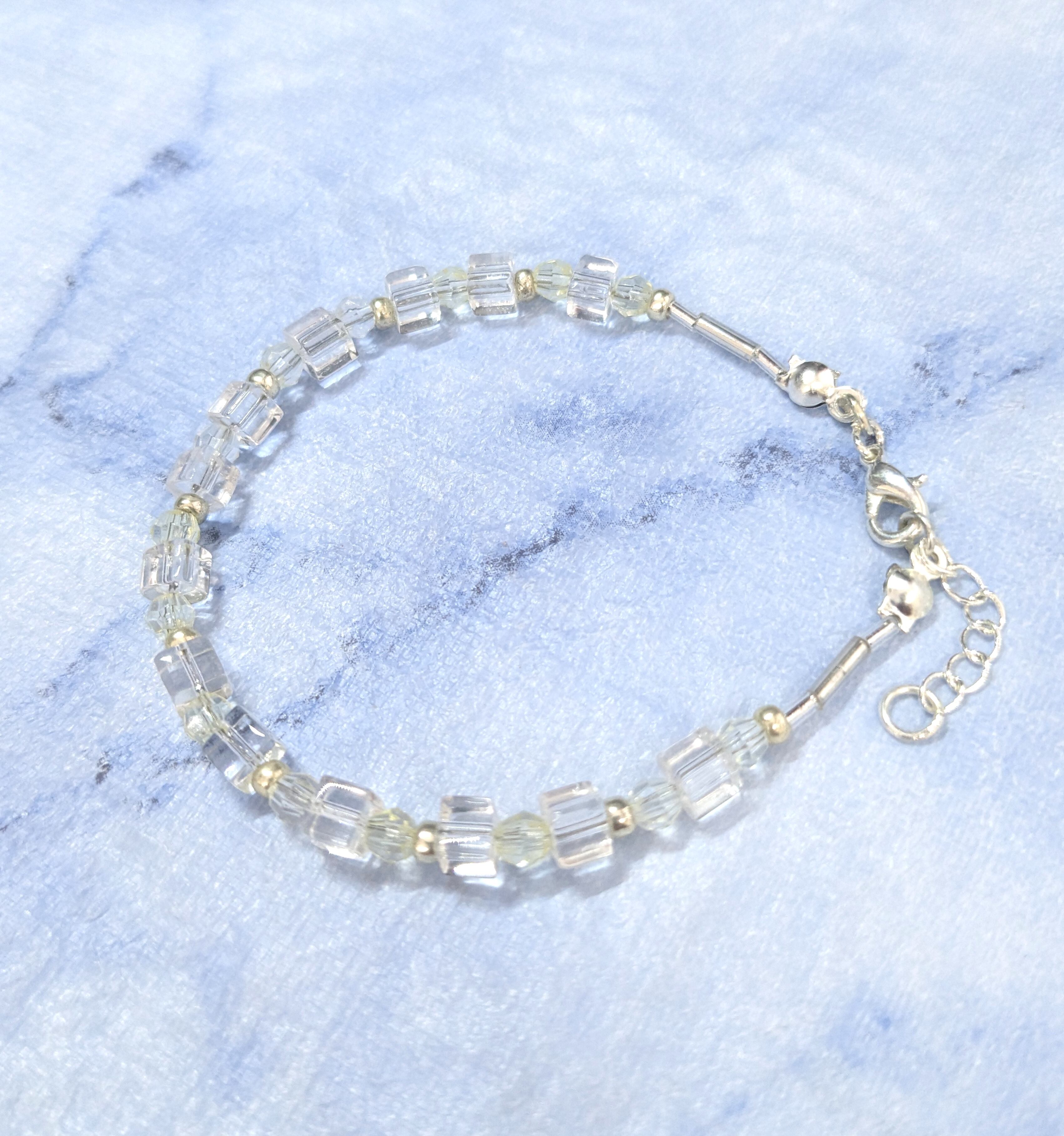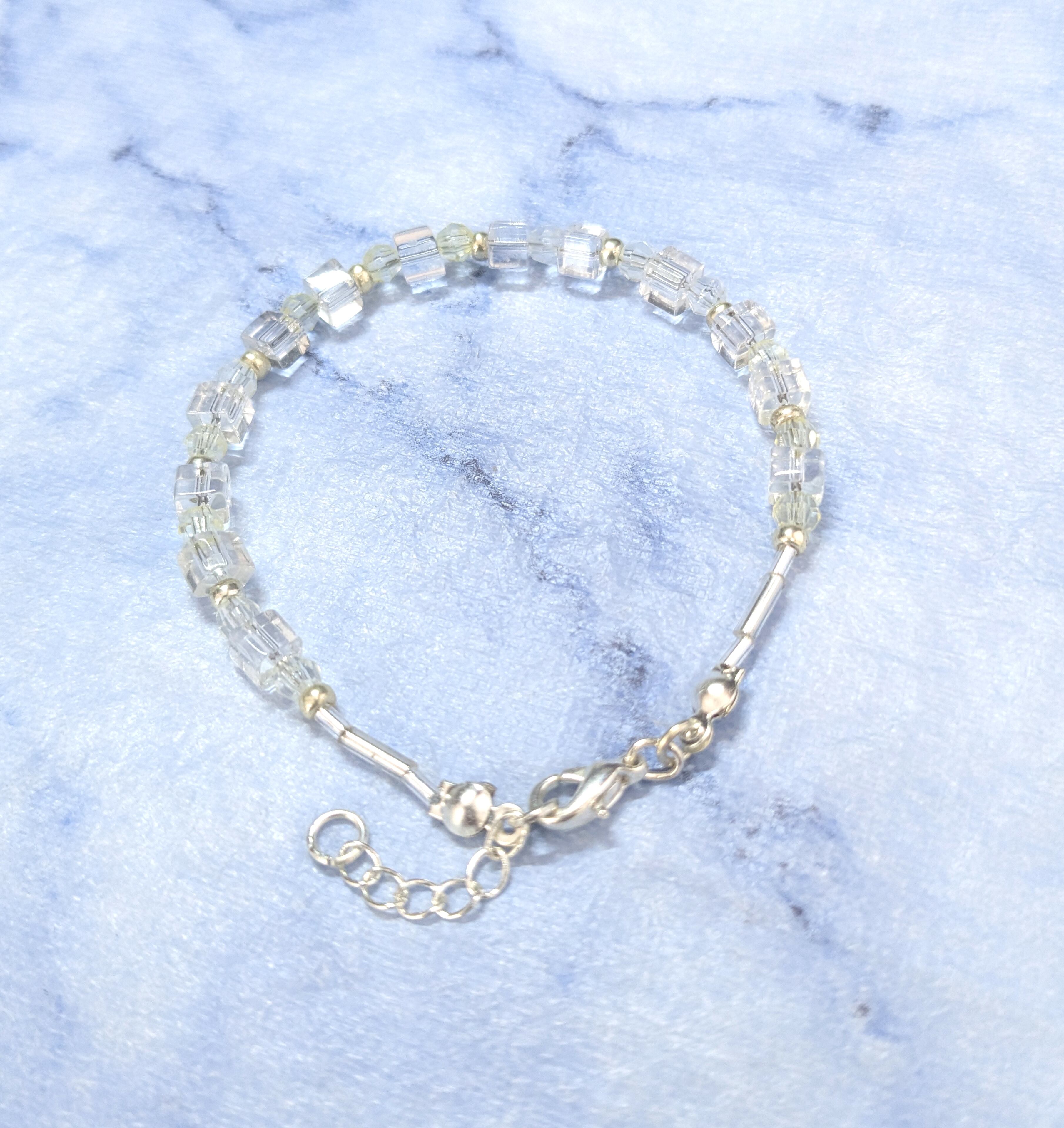 レディースブレス クリアカラー キューブ&ボール クリスタルクォーツ M-527