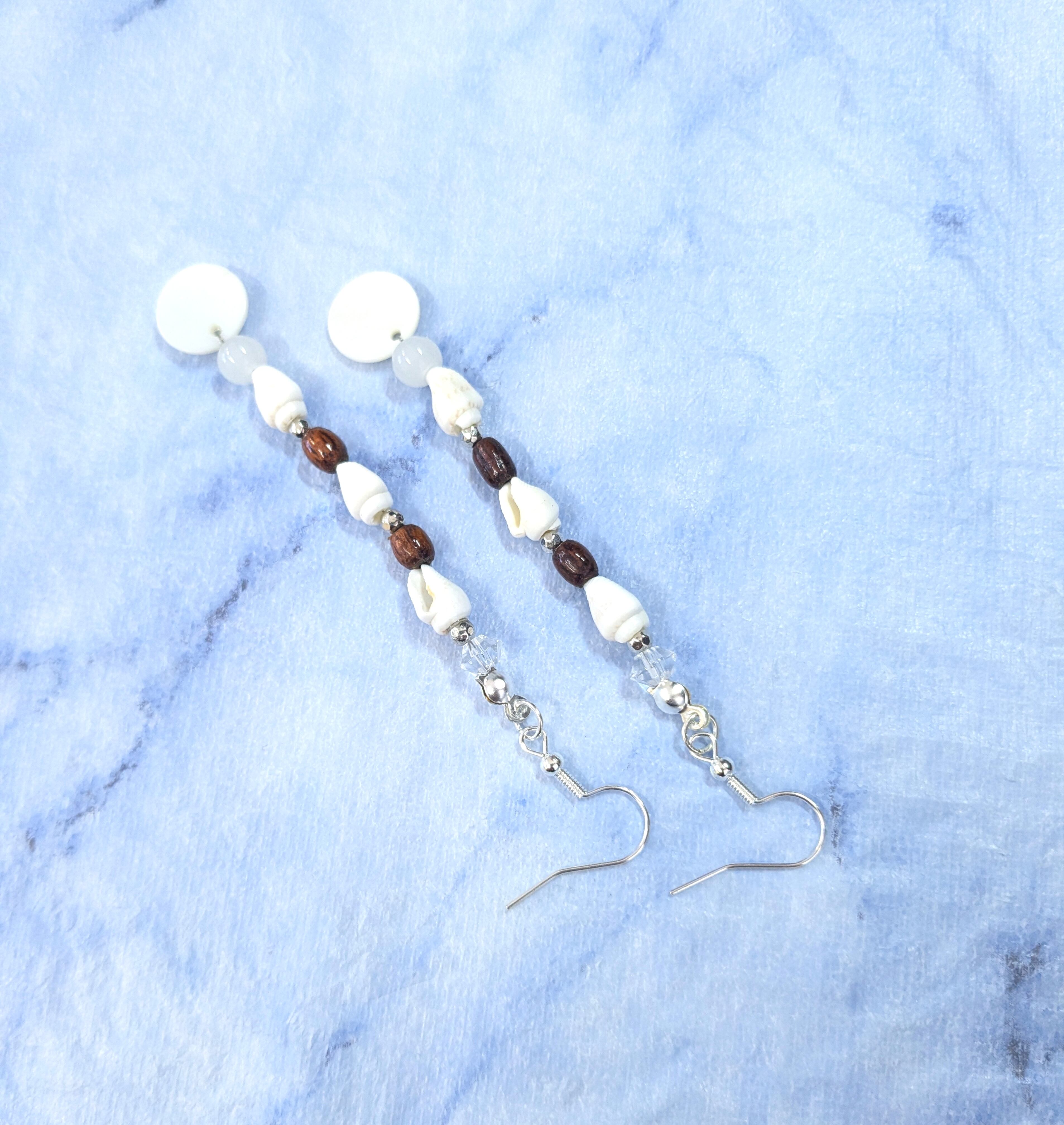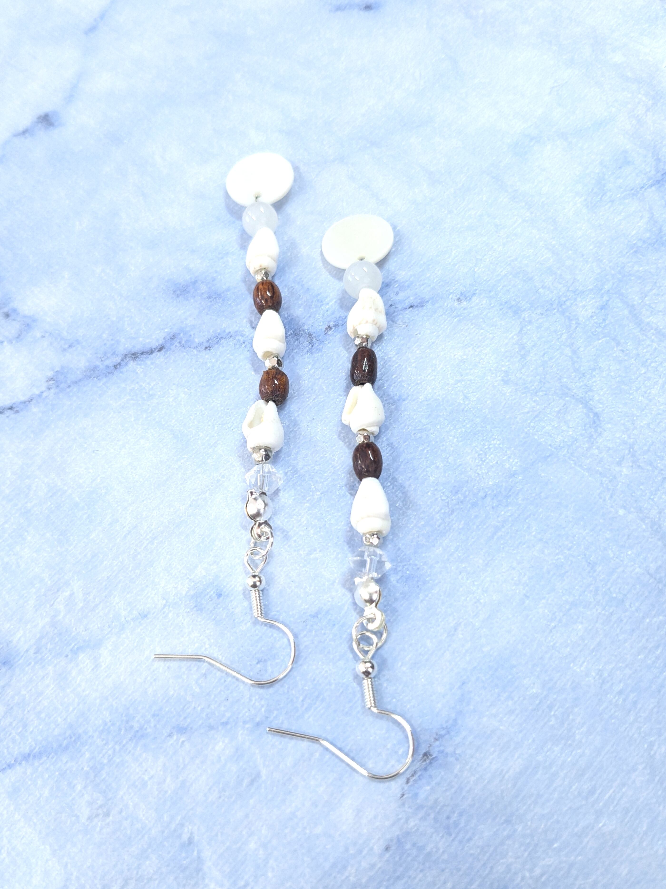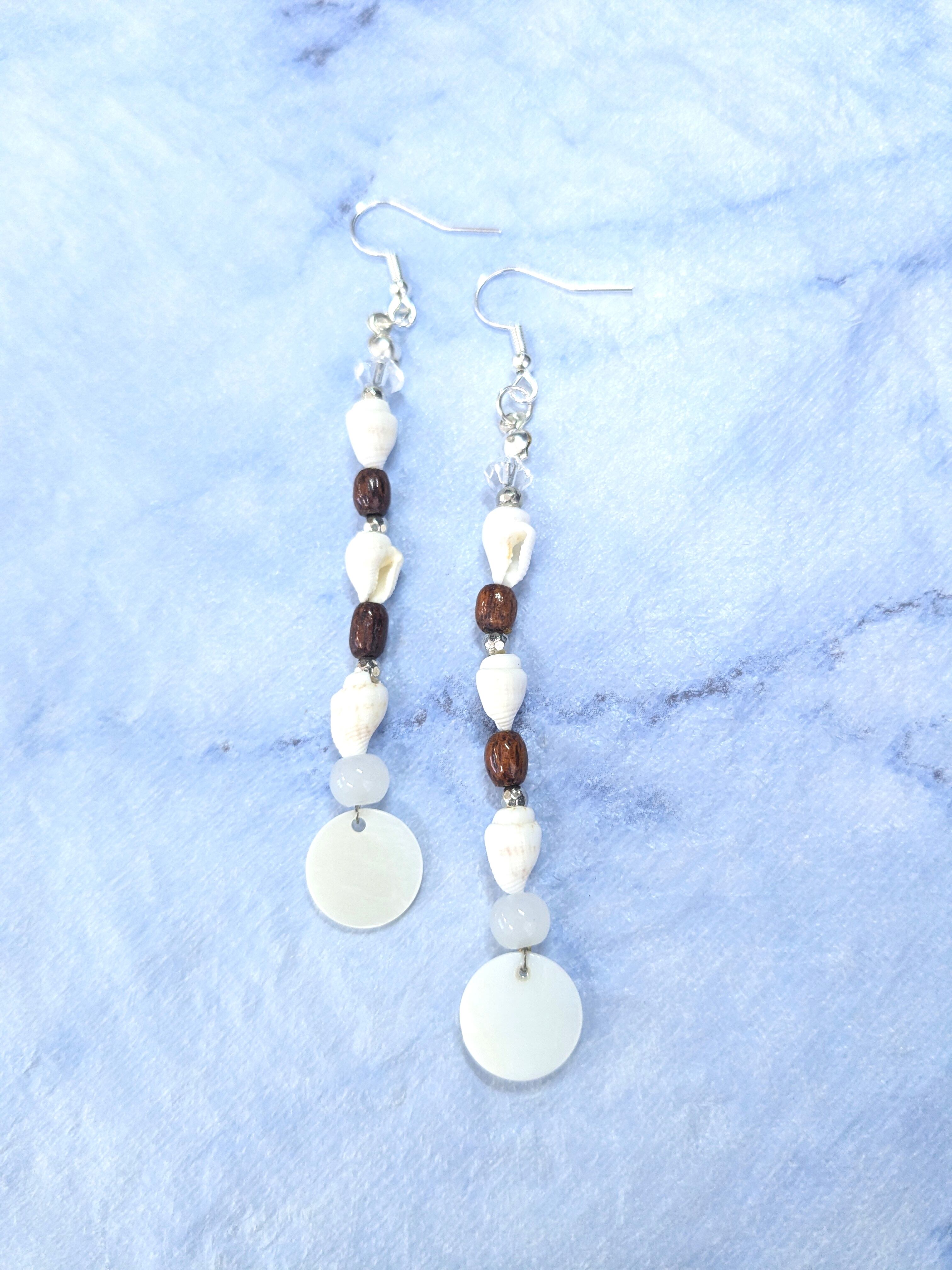 ハワイアンピアス ホワイトシェル 巻き貝& サークルプレート A-213