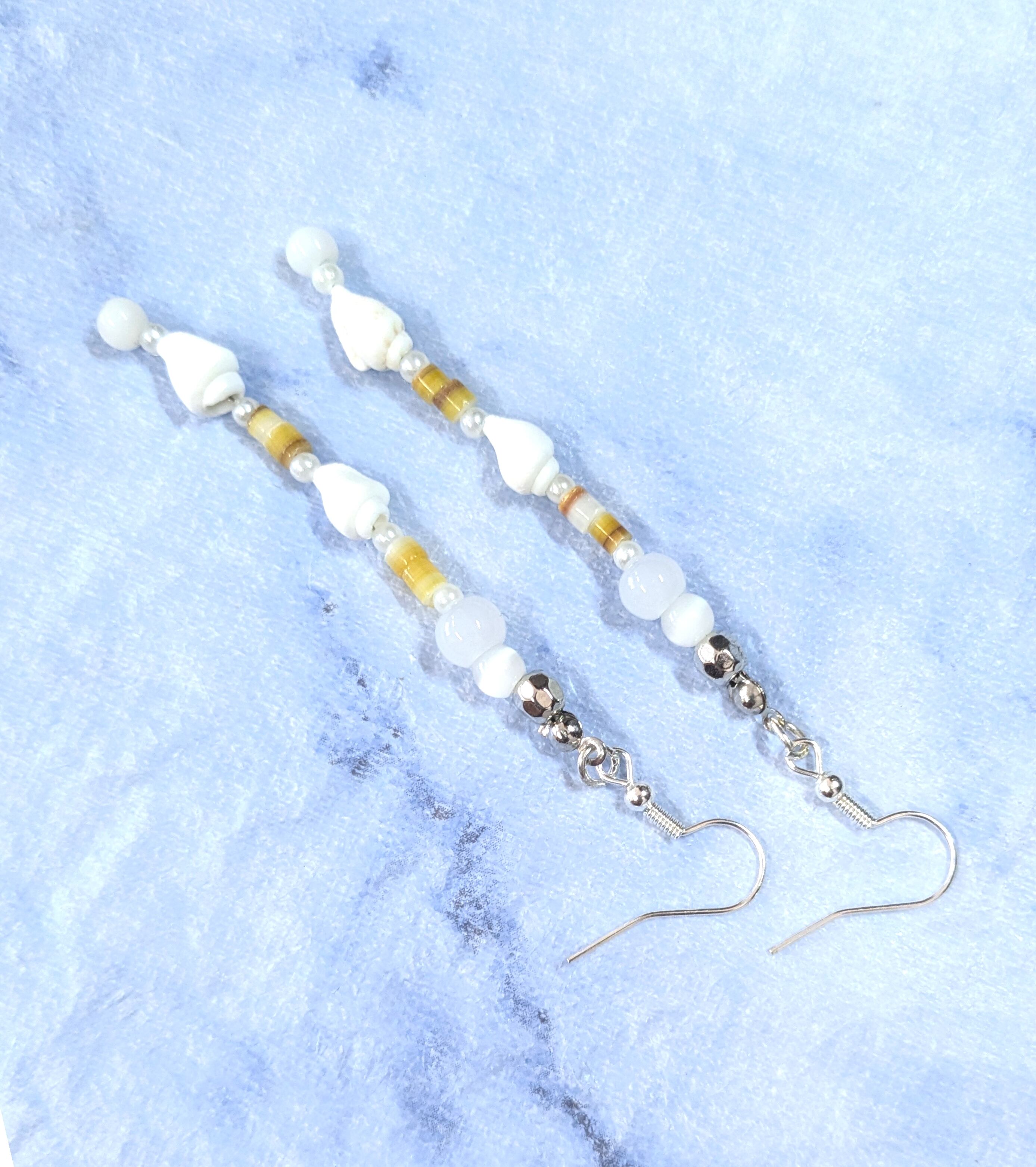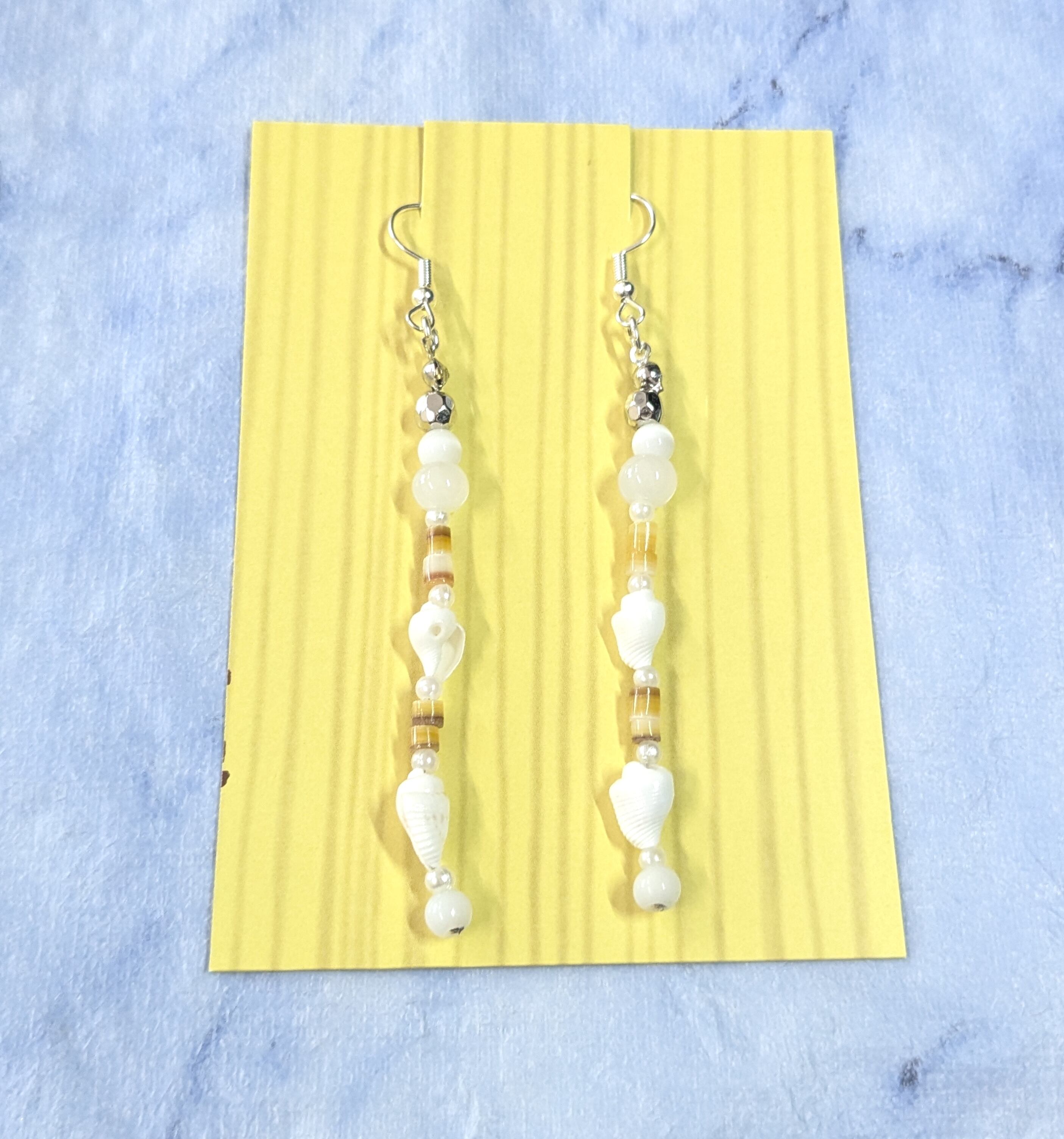 ハワイアンピアス ホワイトシェル 巻き貝& シェルビーズ A-214