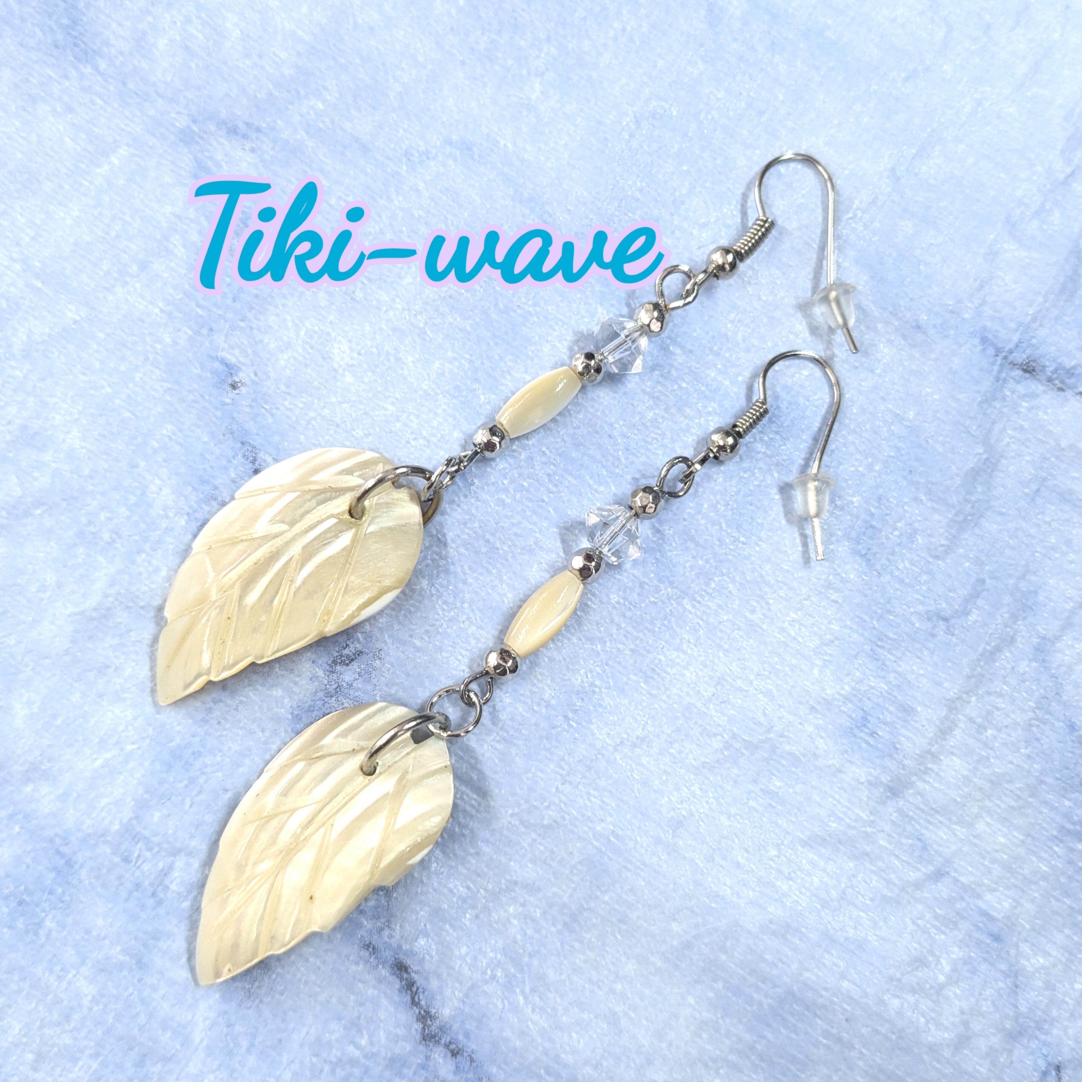 ハワイアンピアス ホワイトシェル 白蝶貝& シェルリーフ A-215