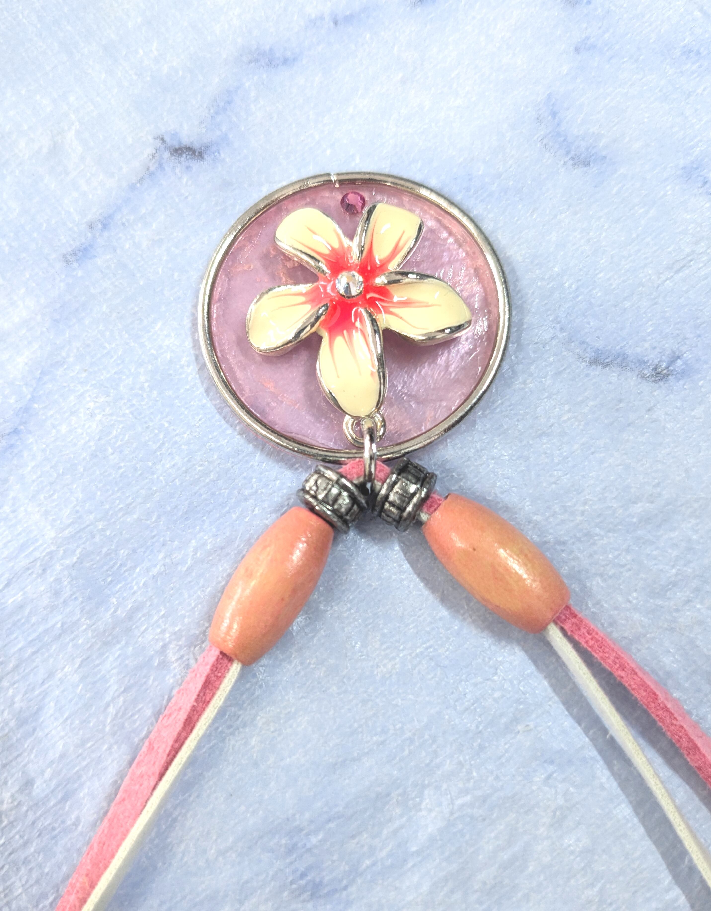 ハワイアンネックレス ピンクカラープルメリア& ナチュラルシェル P-671