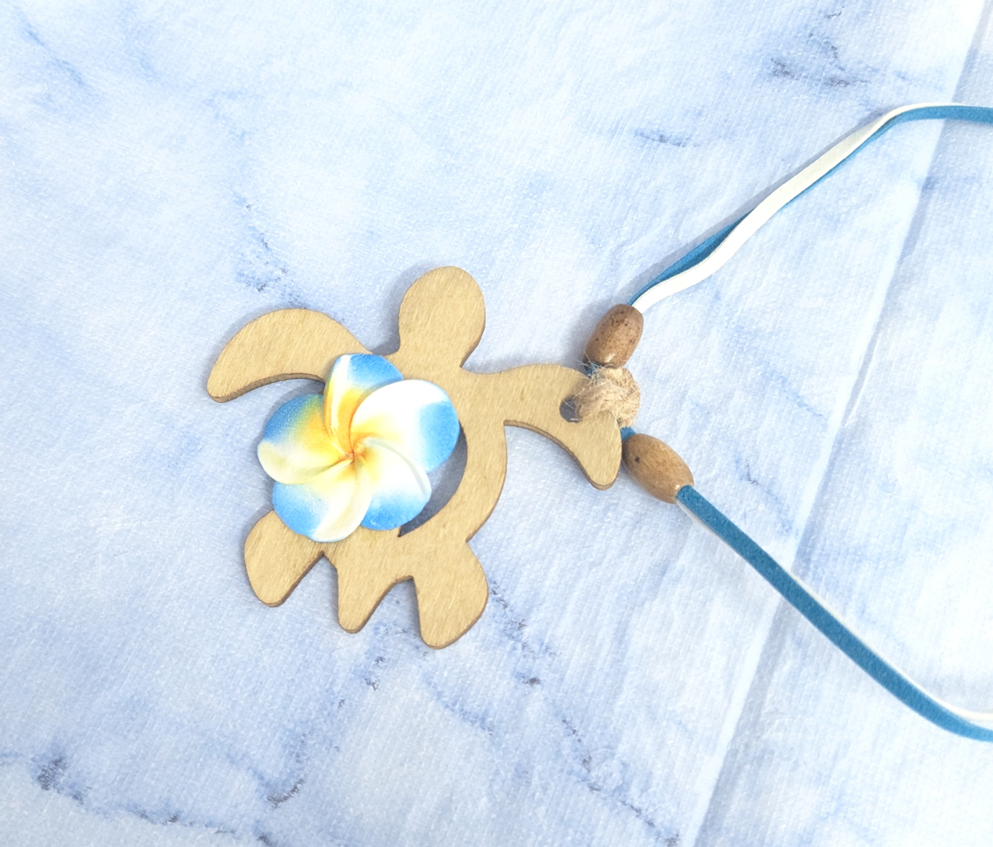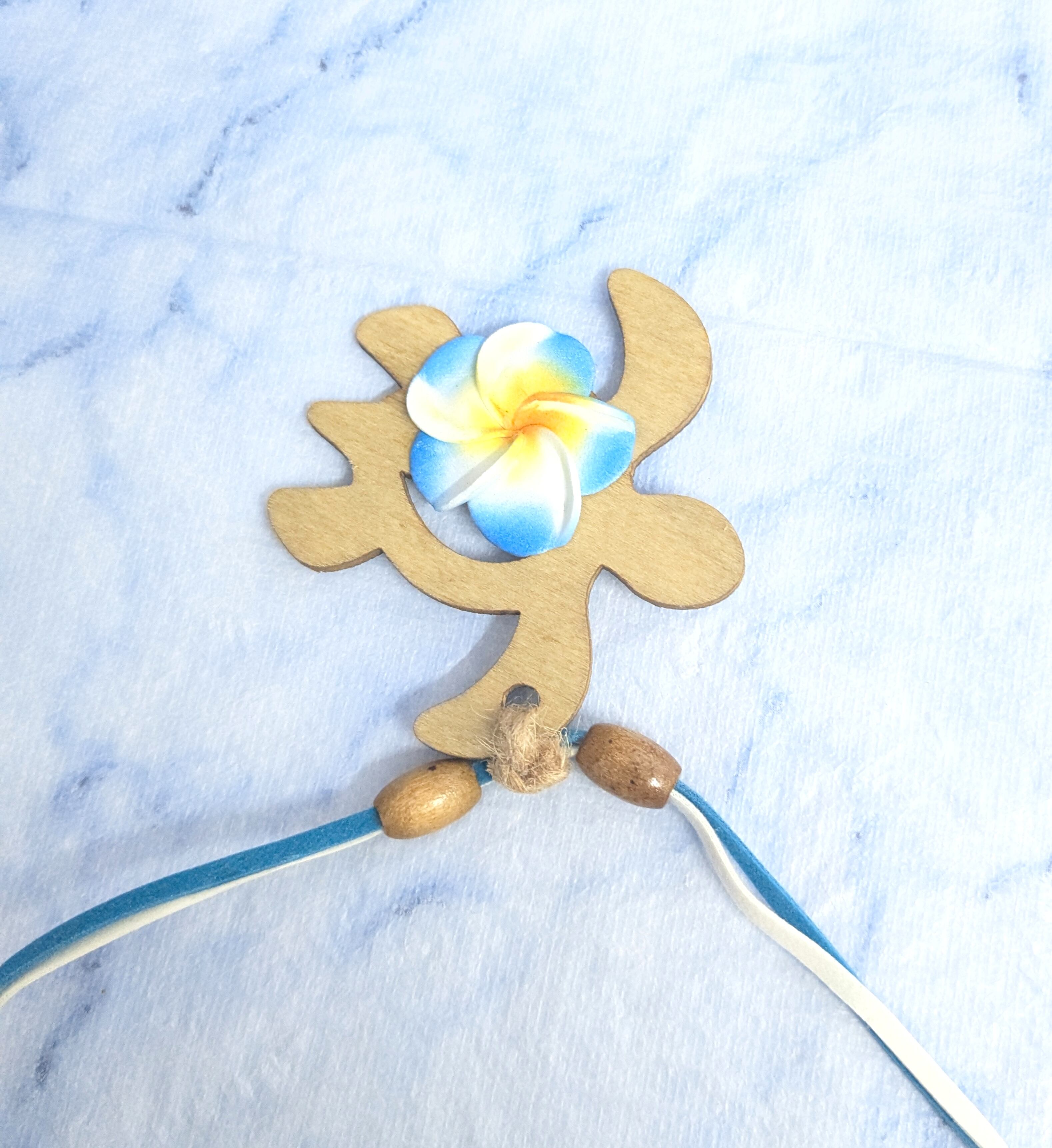ハワイアンネックレス 天然ウッド ホヌ&プルメリア スエード紐 U-208