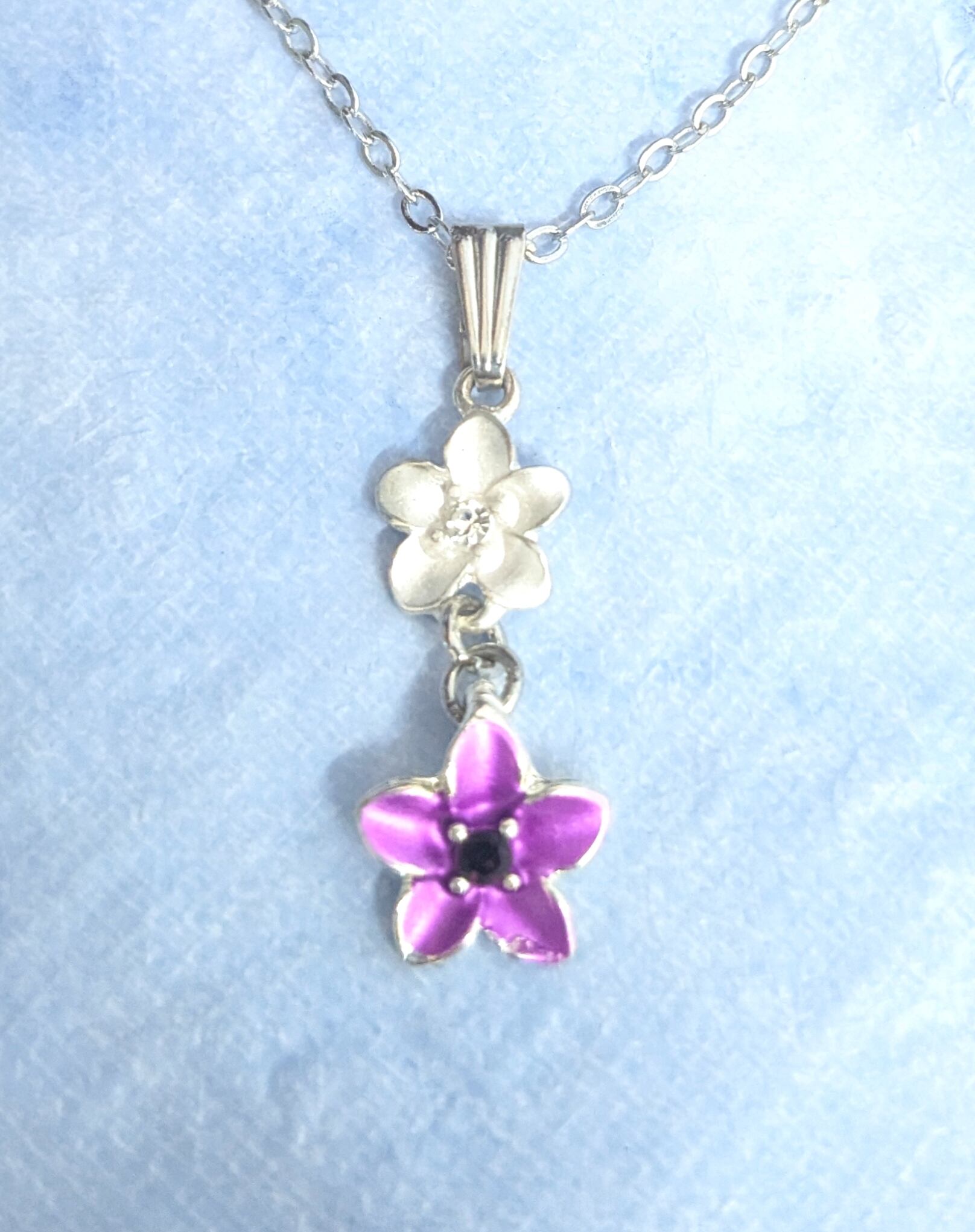 ハワイアンネックレス シルバー&バイオレットカラー 2連プルメリア P-675