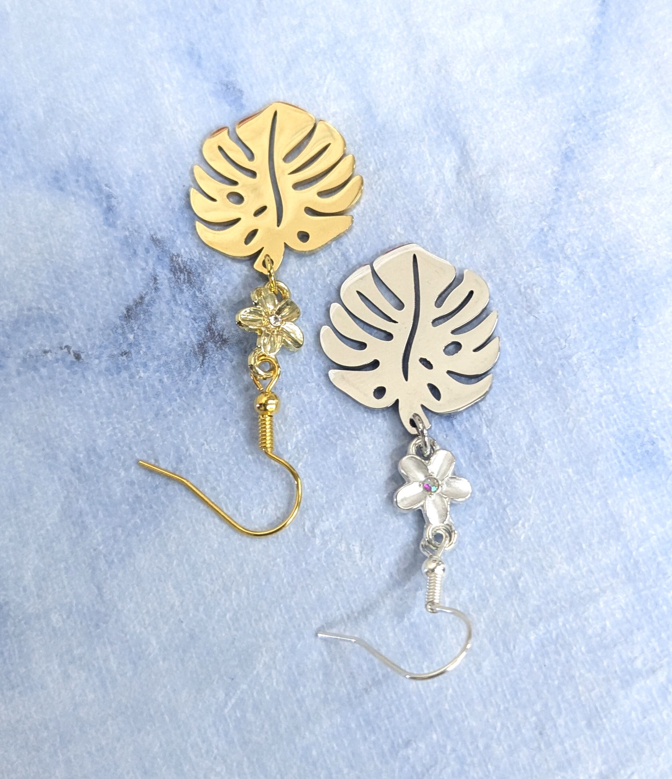 ハワイアンピアス シルバー&ゴールドカラー モンステラ&プルメリア A-216